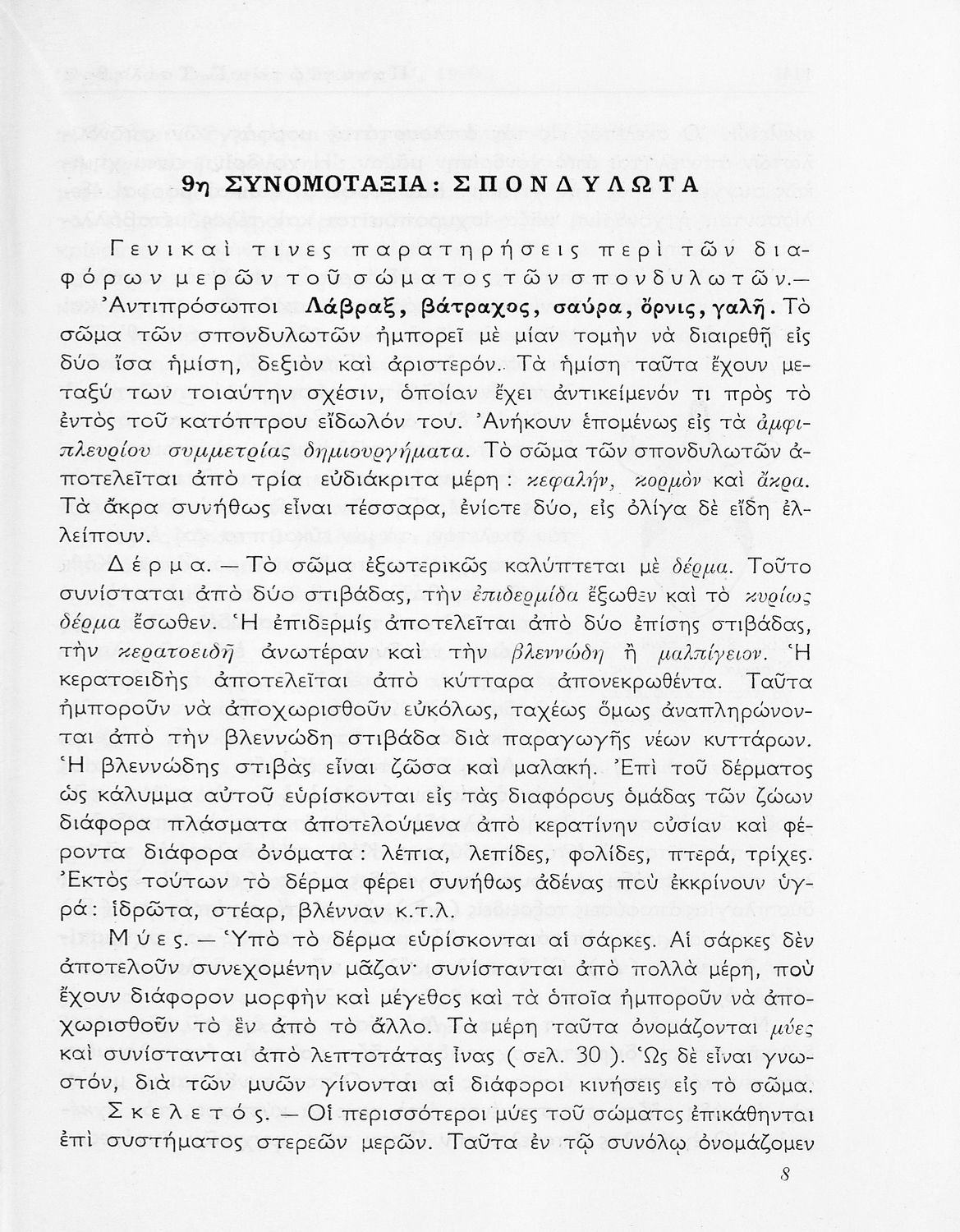 Σχολικό εγχειρίδιο Ζωολογίας για την Γ΄ τάξη των Εξαταξίων Γυμνασίων που παρουσιάζει τα διάφορα ζώα ανάλογα με την συνομοταξία στην οποία ανήκουν.