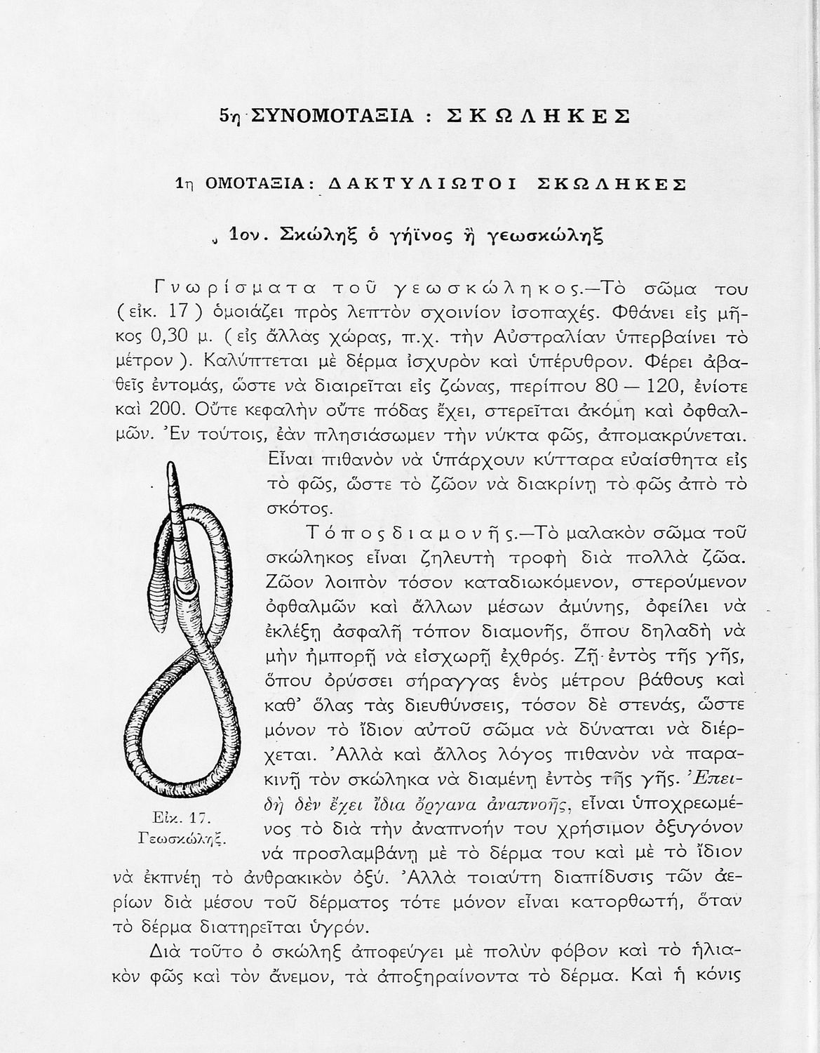 Βαθμίδα εκπαίδευσης: Δευτεροβάθμια Τάξη: Γ' Γυμνασίου Μάθημα: Ζωολογία Γλώσσα: Απλή καθαρεύουσα Παρουσίαση περιεχομένου: Σχολικό εγχειρίδιο Ζωολογίας Γ΄ Γυμνασίου που εστιάζει στη φυσιολογία και ανατομία και παρουσιάζει τα διάφορα ζώα ανάλογα με την συνομοταξία στην οποία ανήκουν. |