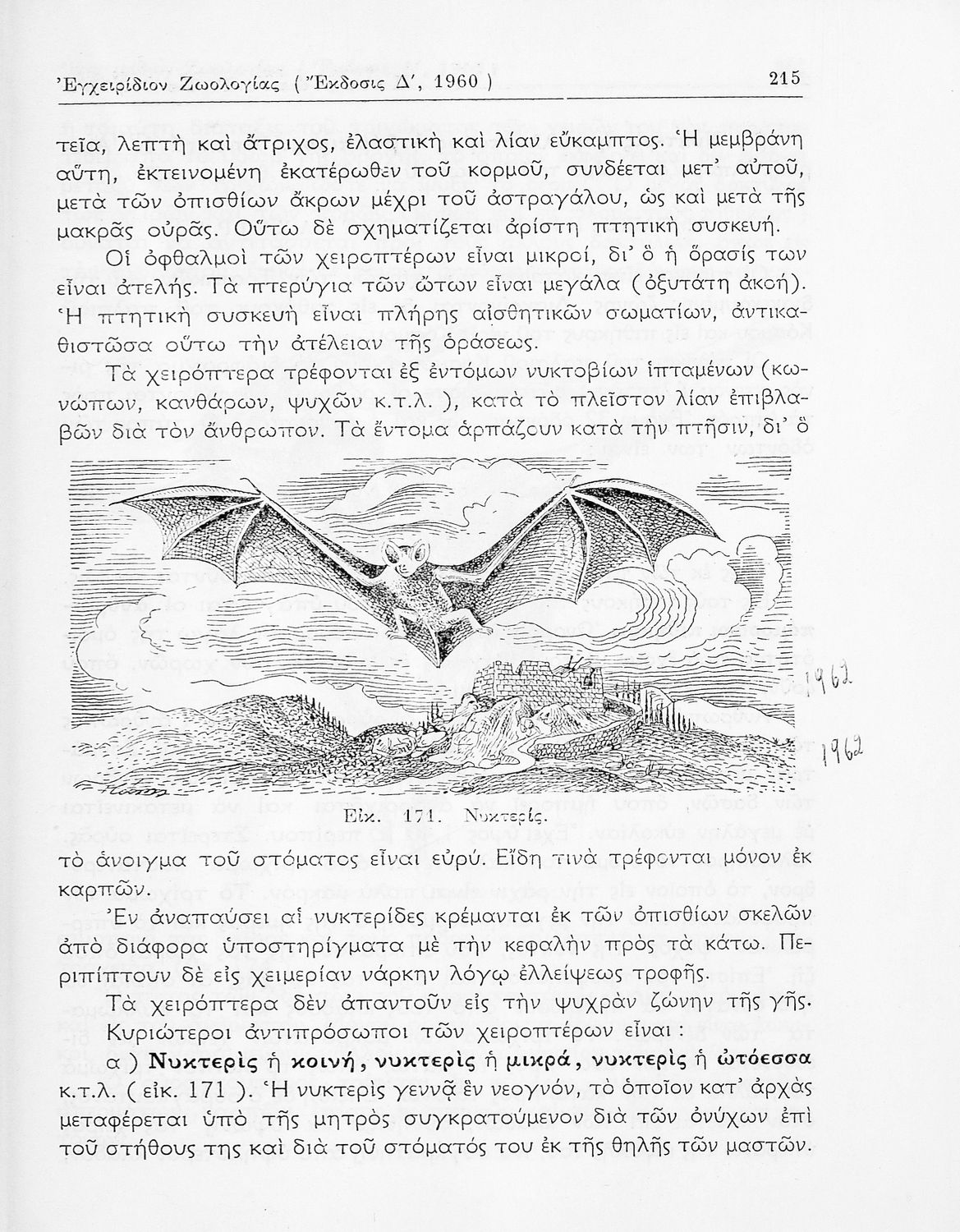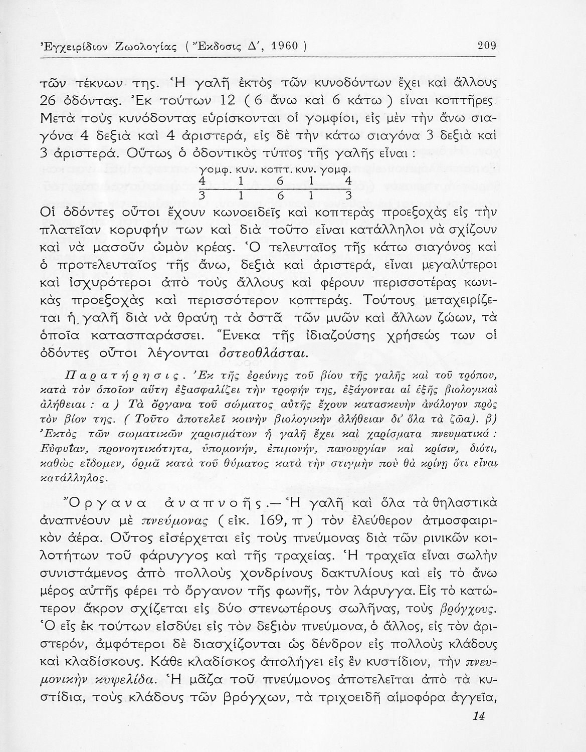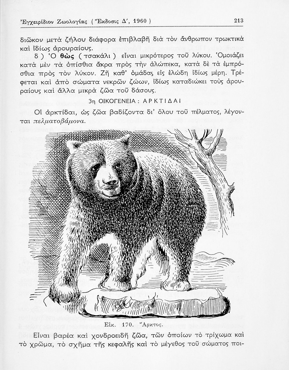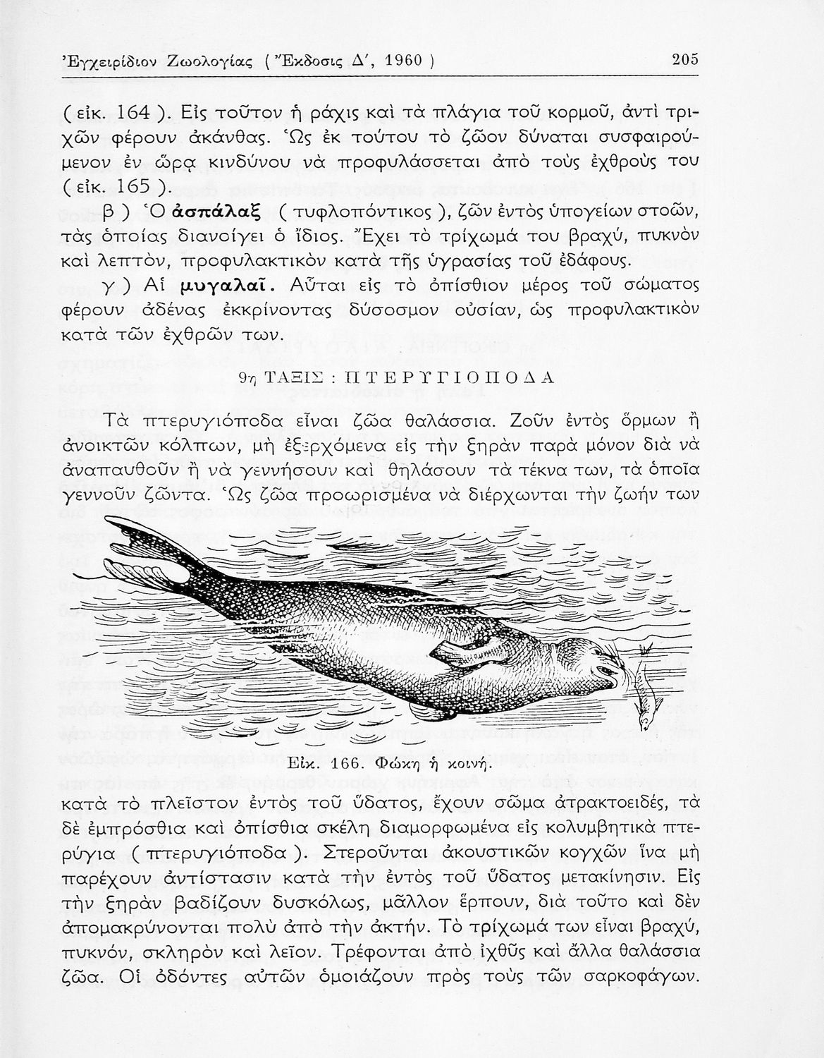 Σχολικό εγχειρίδιο Ζωολογίας για την Γ΄ τάξη των Εξαταξίων Γυμνασίων που παρουσιάζει τα διάφορα ζώα ανάλογα με την συνομοταξία στην οποία ανήκουν.