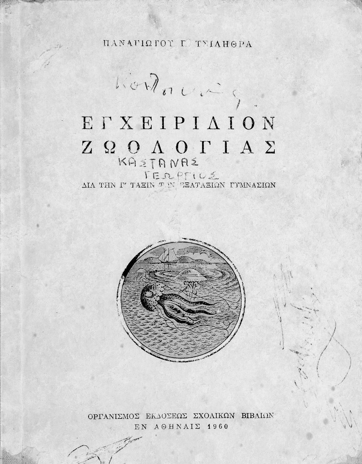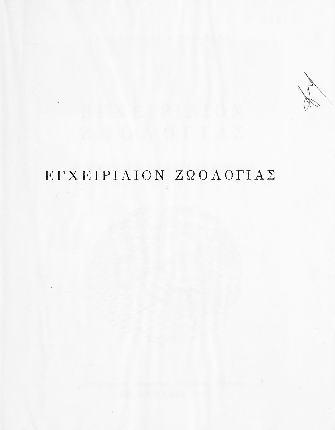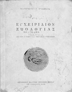 Κωδικός αναγνώρισης: 01-42262 Τίτλος: Εγχειρίδιον ζωολογίας δια την Γ΄ τάξιν των Εξαταξίων Γυμνασίων Συγγραφέας: Π. Γ. Τσιλήθρας Εικονογράφος: Α. Τάσσος Μέγεθος και υπόστρωμα: Σχολικό εγχειρίδιο, 20εκ., σκληρό εξώφυλλο, 258 σελίδες. Σκίτσα (ασπρόμαυρα και έγχρωμα). |