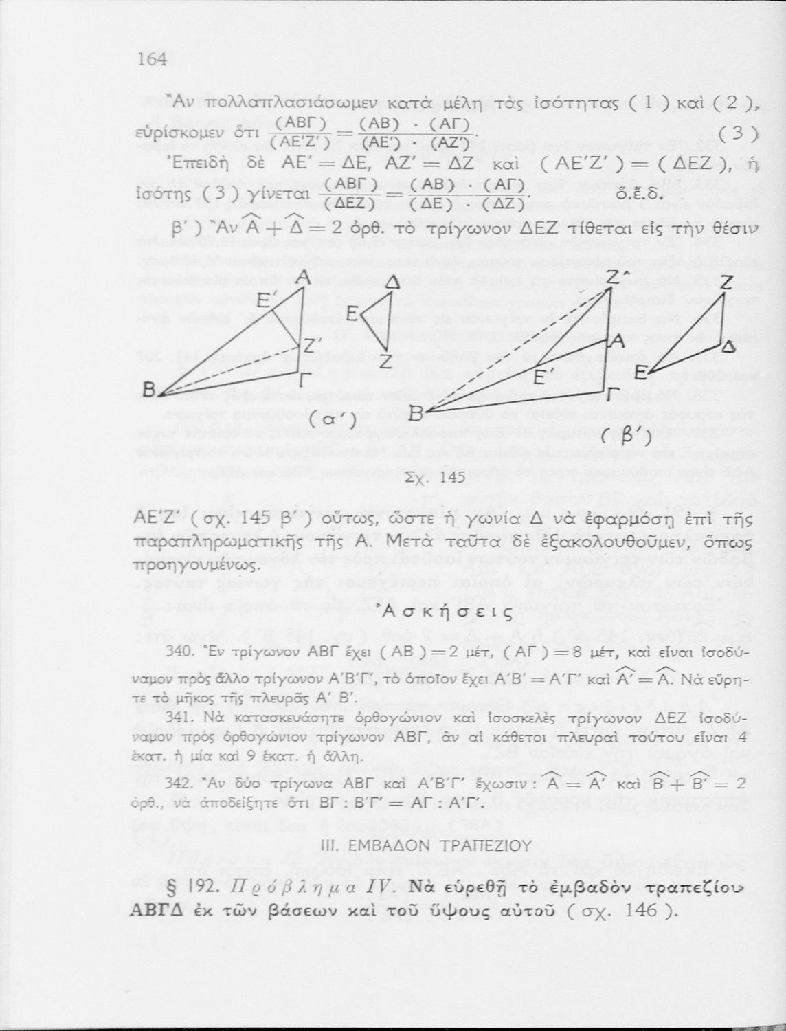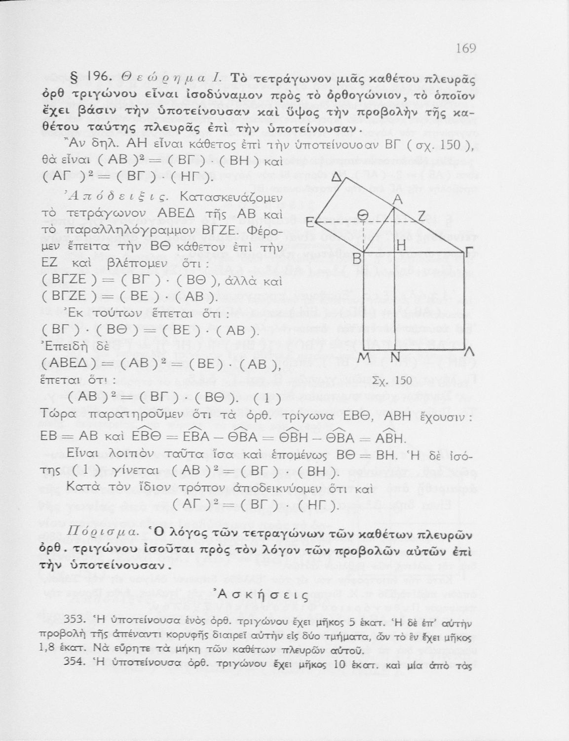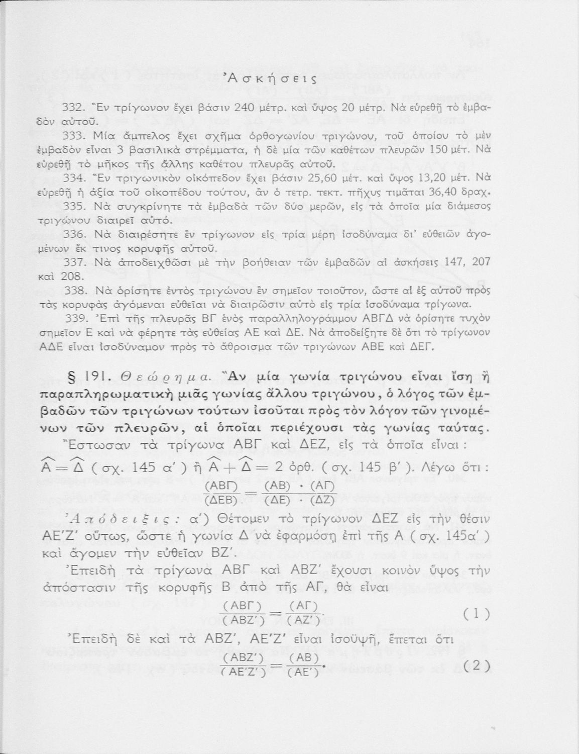 Σχολικό εγχειρίδιο Γεωμετρίας Γυμνασίου που είναι χωρισμένο σε θεωρήματα και ασκήσεις και εστιάζει στα βασικά θεωρήματα και ιδιότητες των γεωμετρικών σχημάτων. .