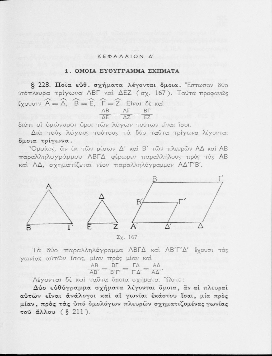 Σχολικό εγχειρίδιο Γεωμετρίας Γυμνασίου που είναι χωρισμένο σε θεωρήματα και ασκήσεις και εστιάζει στα βασικά θεωρήματα και ιδιότητες των γεωμετρικών σχημάτων. .