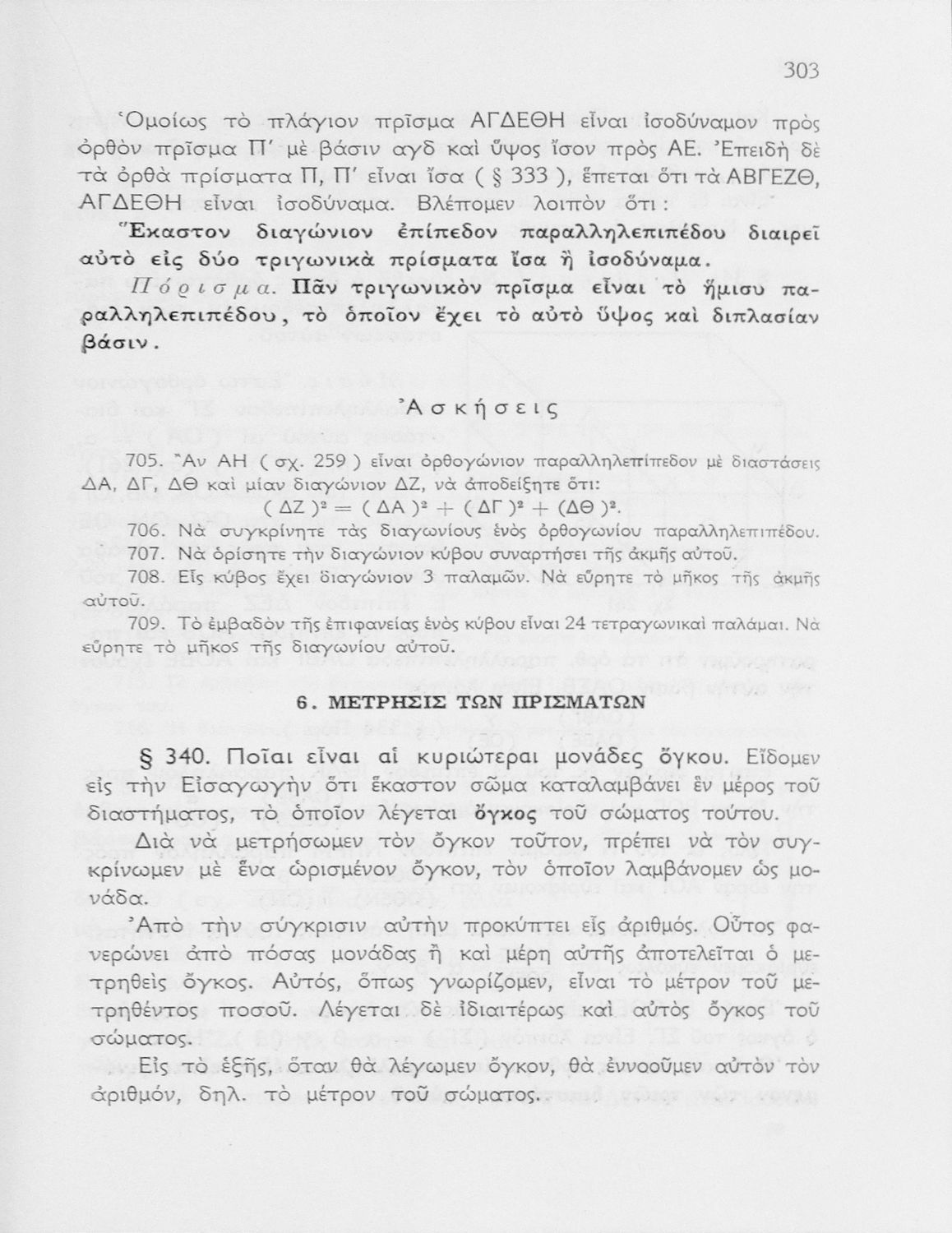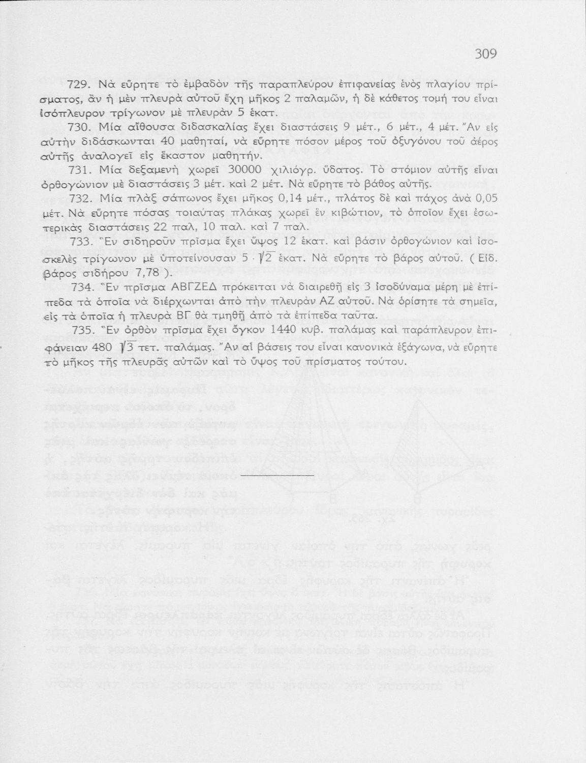 Σχολικό εγχειρίδιο Γεωμετρίας Γυμνασίου που περιλαμβάνει θεωρία και ασκήσεις και είναι χωρισμένο σε Επιπεδομετρία και Στερεομετρία.