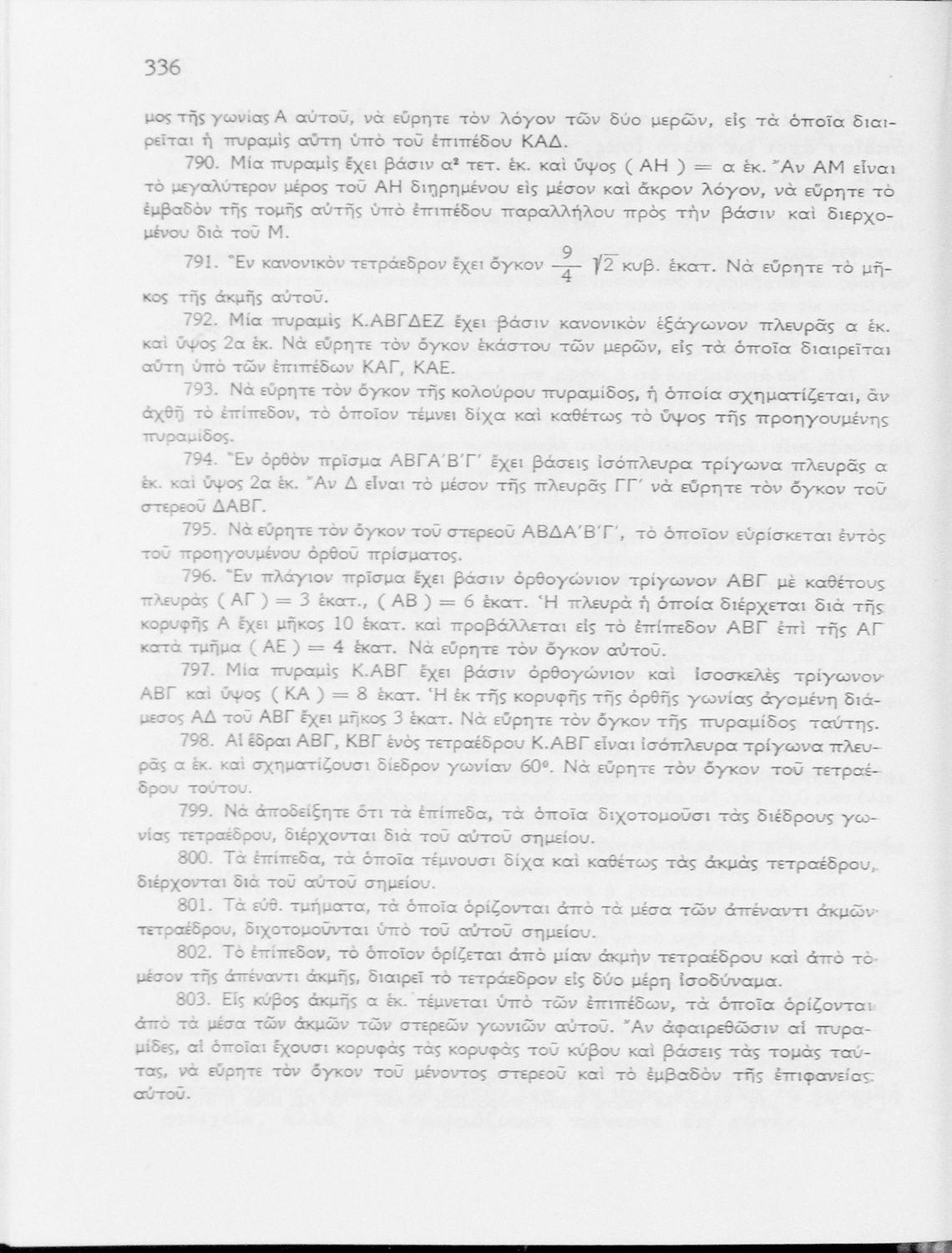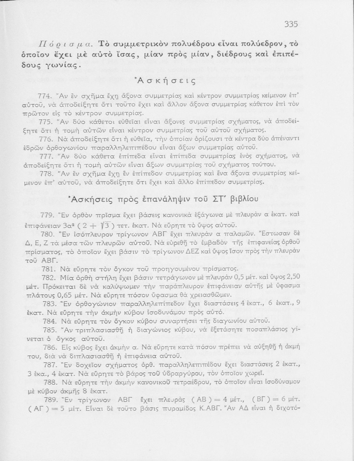 Σχολικό εγχειρίδιο Γεωμετρίας Γυμνασίου που περιλαμβάνει θεωρία και ασκήσεις και είναι χωρισμένο σε Επιπεδομετρία και Στερεομετρία.