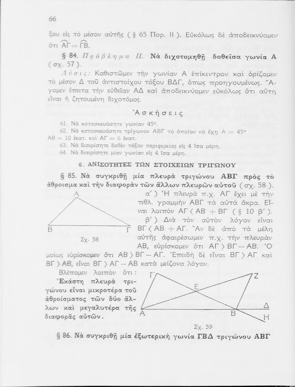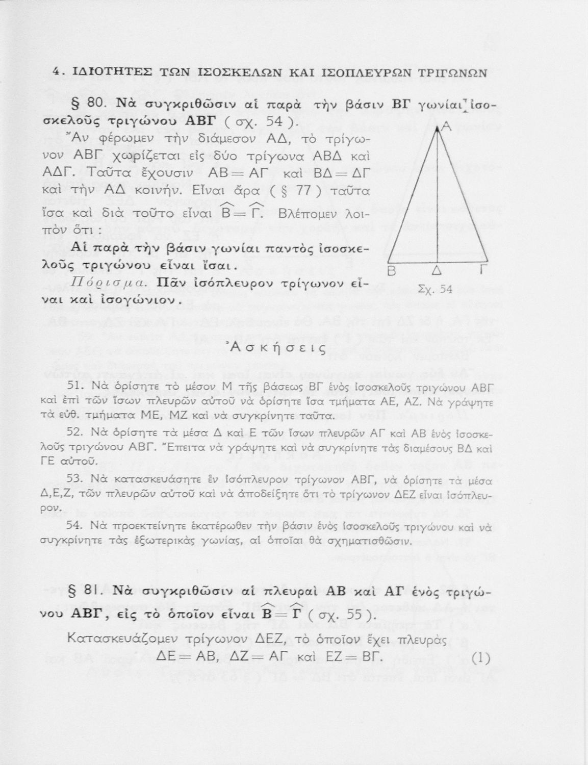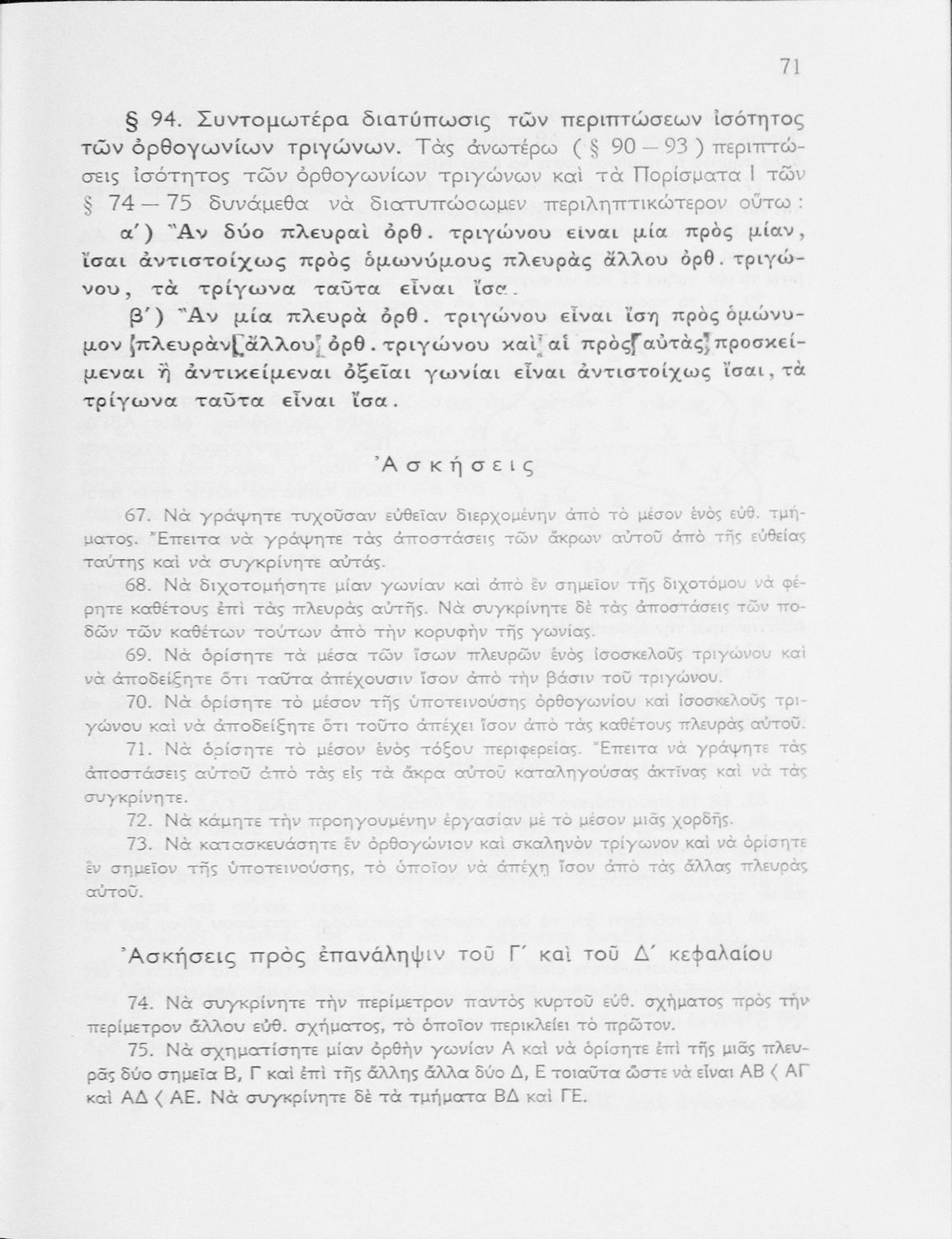 Σχολικό εγχειρίδιο Γεωμετρίας Γυμνασίου που είναι χωρισμένο σε θεωρήματα και ασκήσεις και εστιάζει στα βασικά θεωρήματα και ιδιότητες των γεωμετρικών σχημάτων. .
