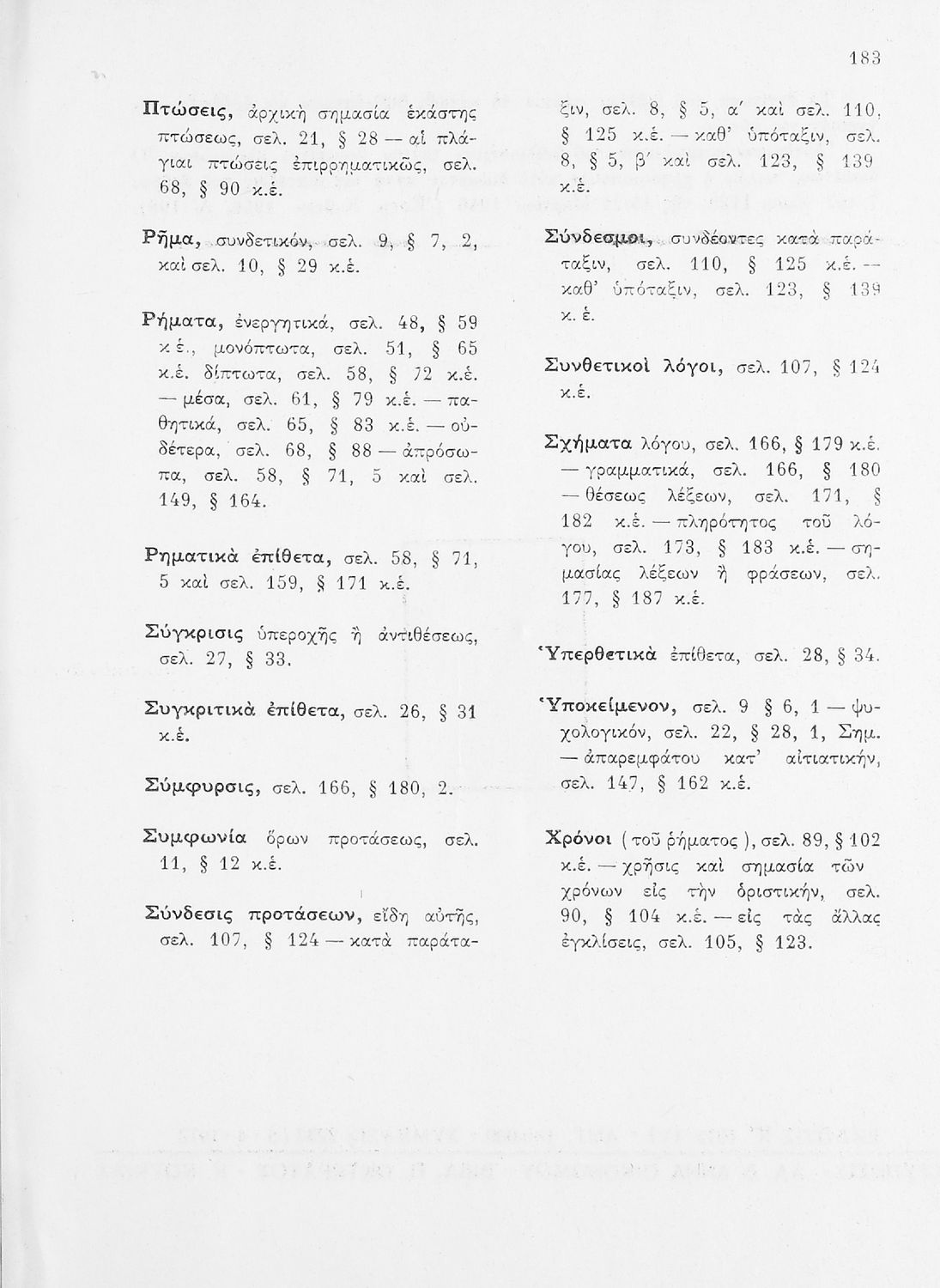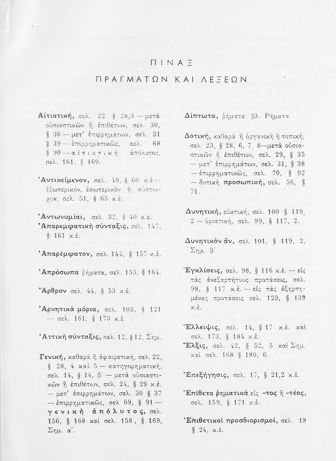 Σχολικό εγχειρίδιο Αρχαίων Ελληνικών Γυμνασίου που περιέχει τους κανόνες γραμματικής και είναι χωρισμένο σε φθογγολογικό, τυπολογικό και ετυμολογικό μέρος. Περιέχει και κατάλογο ανωμάλων ρημάτων.