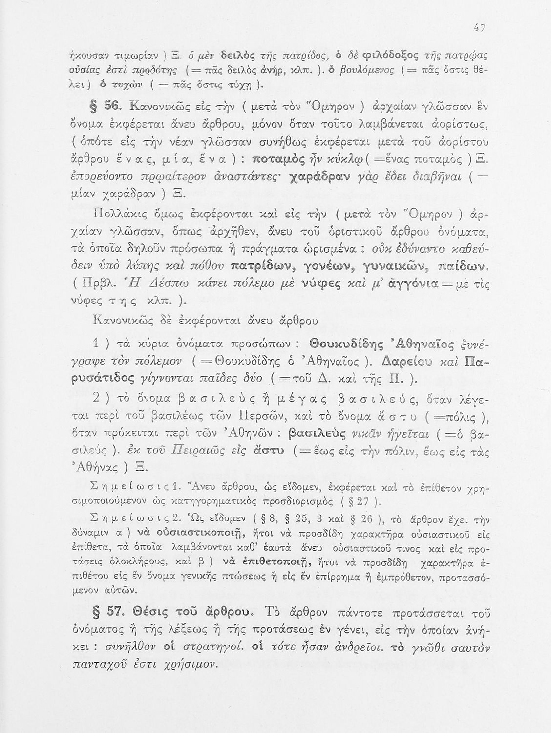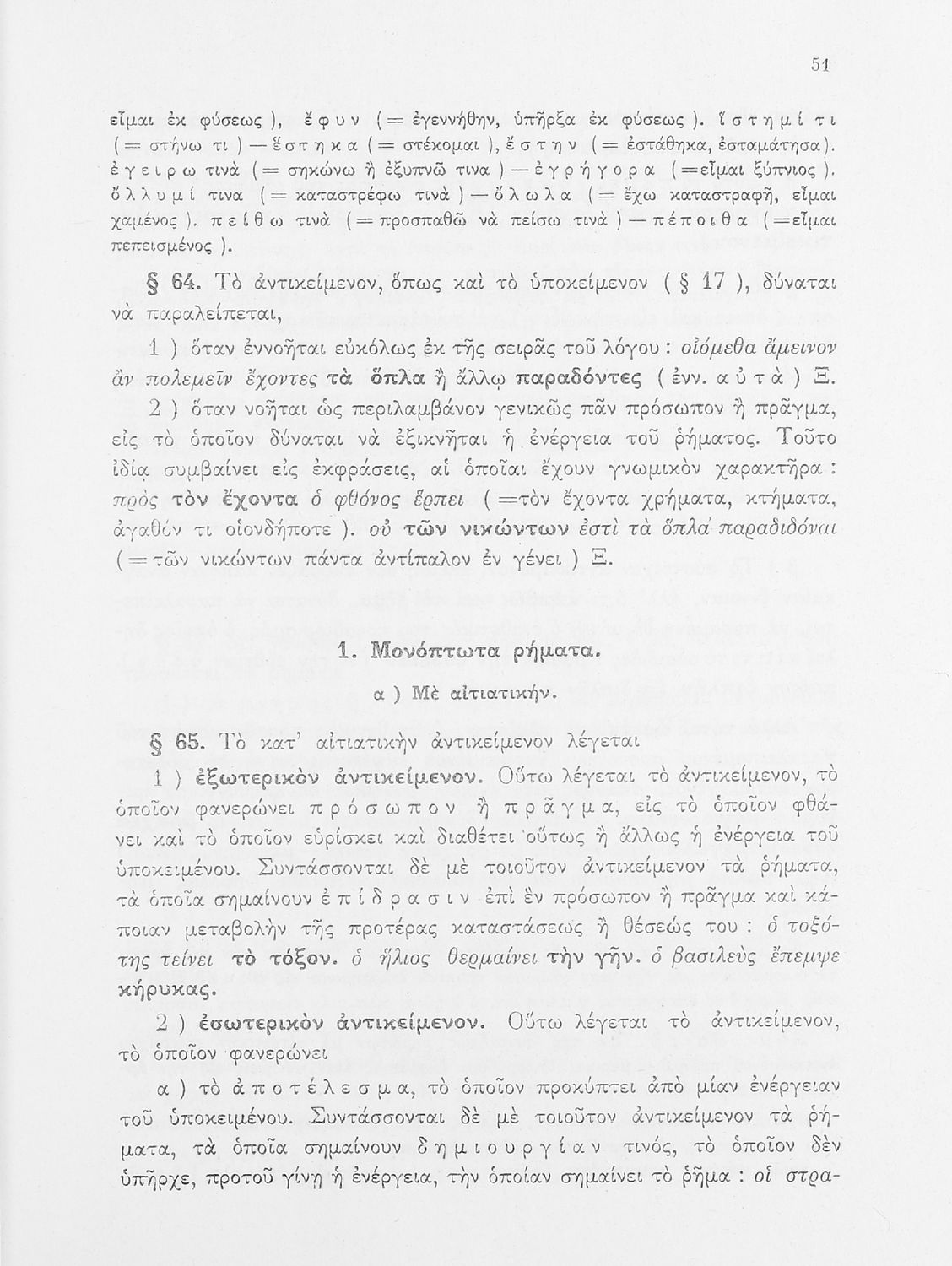 Σχολικό εγχειρίδιο Αρχαίων Ελληνικών Γυμνασίου που περιέχει τους κανόνες γραμματικής και είναι χωρισμένο σε φθογγολογικό, τυπολογικό και ετυμολογικό μέρος. Περιέχει και κατάλογο ανωμάλων ρημάτων.