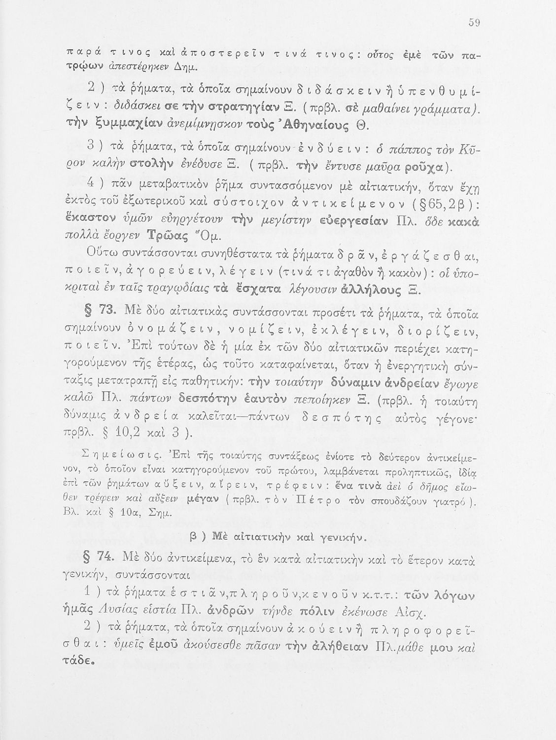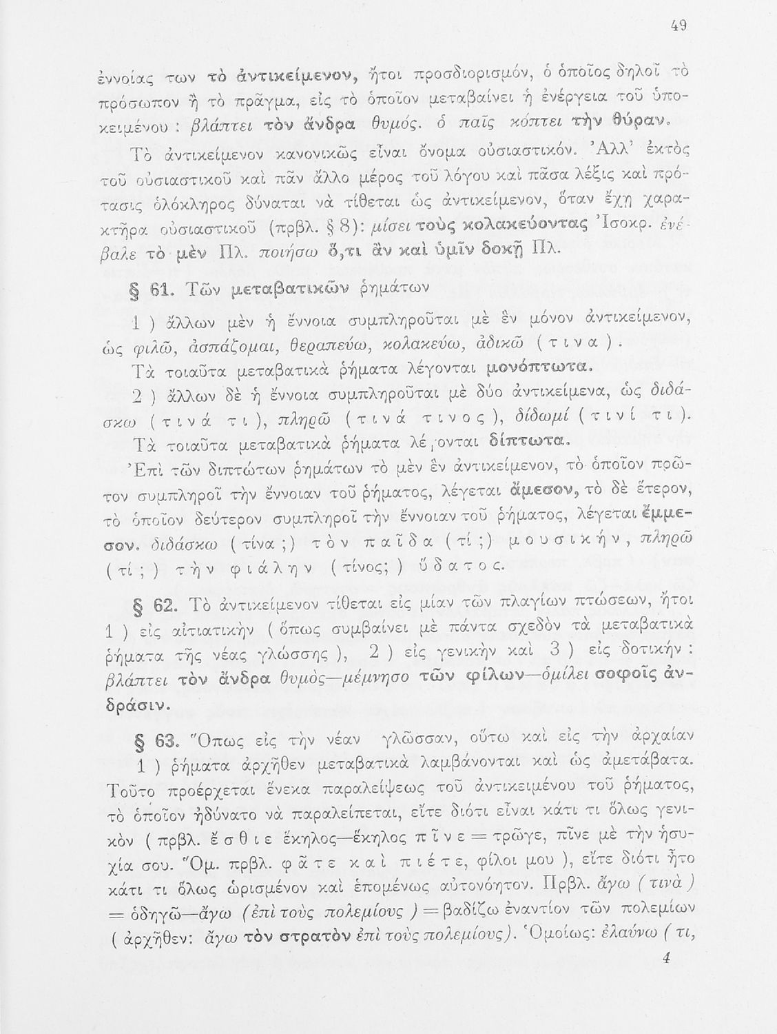 Συντακτικόν της αρχαίας ελληνικής γλώσσας Γ', Δ' Γυμνασίου