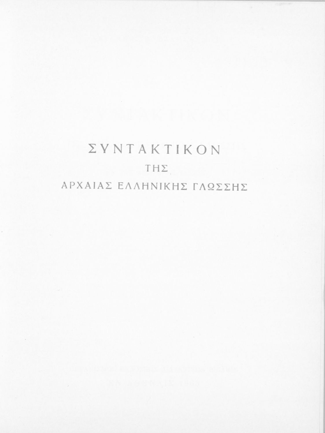 Συντακτικόν της αρχαίας ελληνικής γλώσσης δια τα ς ανωτέρας Τάξεις των Γυμνασίων