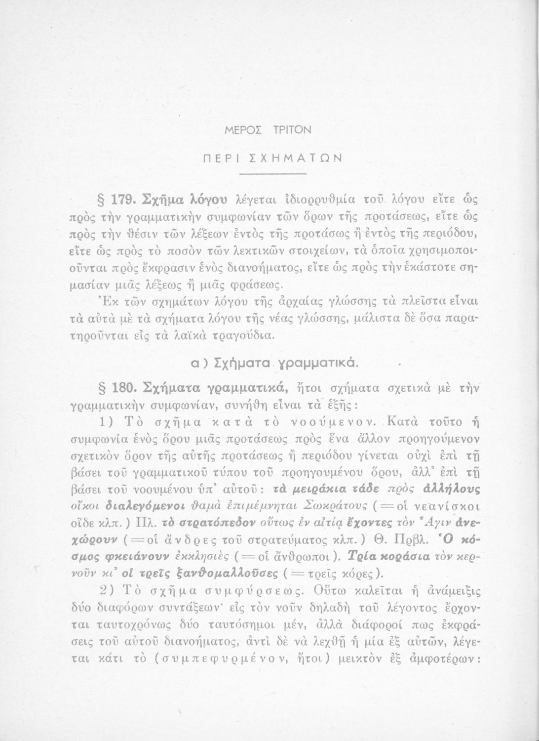 Σχολικό εγχειρίδιο Αρχαίων Ελληνικών Γυμνασίου που εξετάζει τα μέρη του λόγου και την σύνταξή τους.