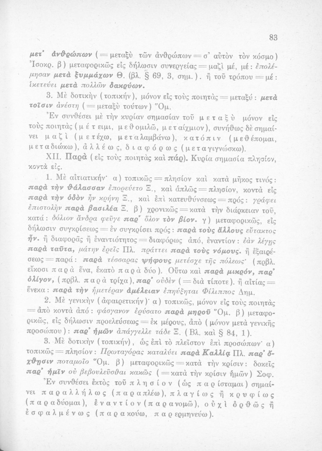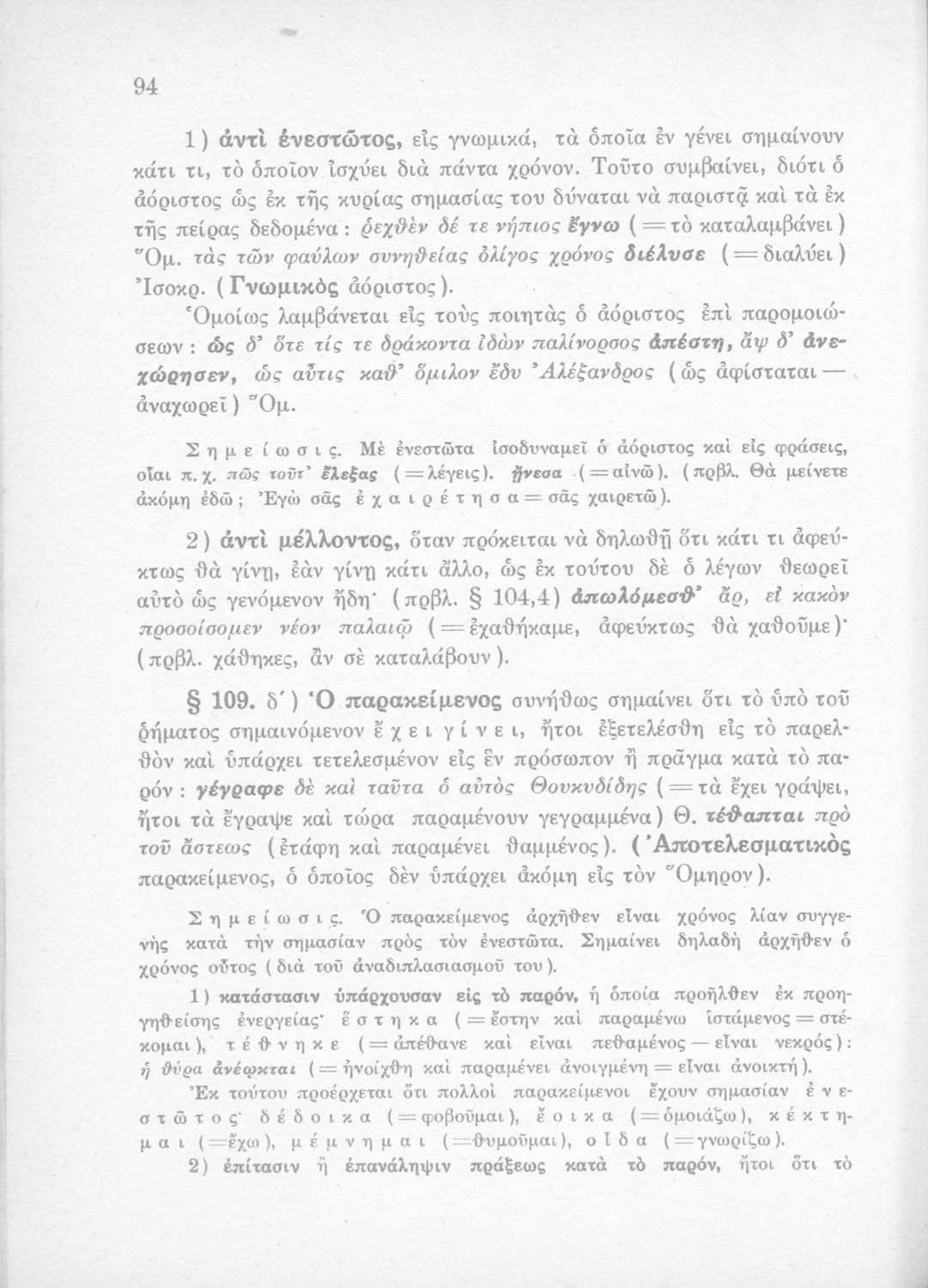 Σχολικό εγχειρίδιο Αρχαίων Ελληνικών Γυμνασίου που εξετάζει τα μέρη του λόγου και την σύνταξή τους.