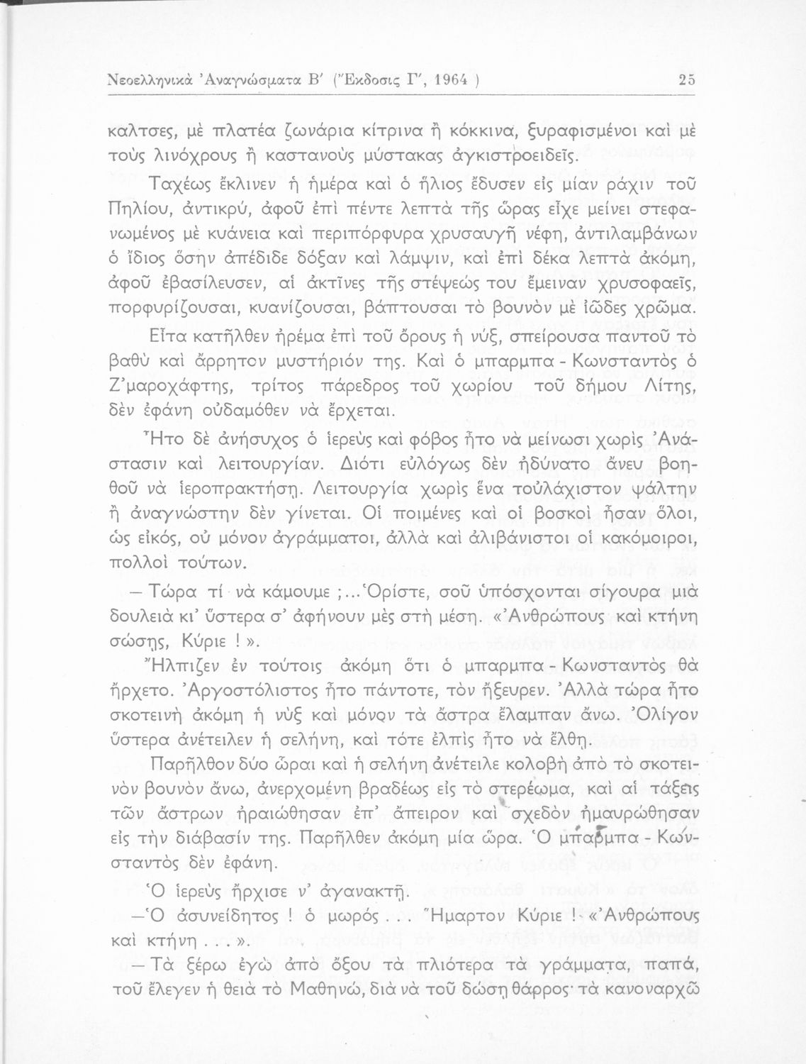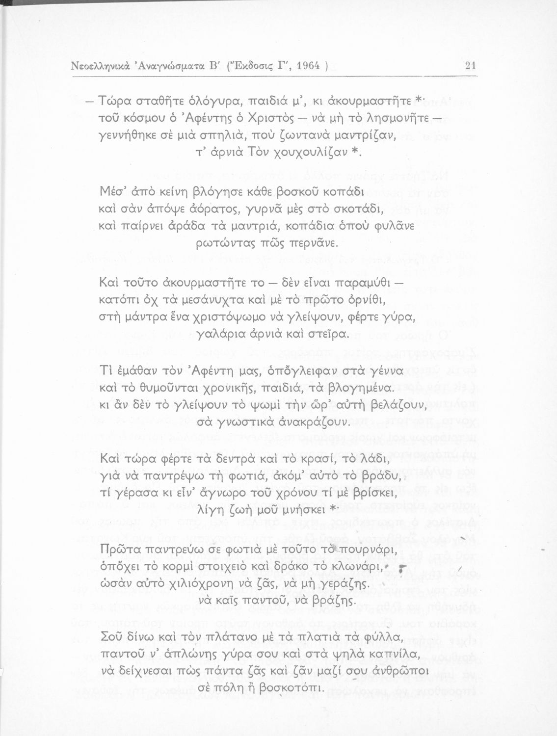 Σχολικό εγχειρίδιο Νέων Ελληνικών Δ΄ Γυμνασίου και Β΄ Αστικού Σχολείου που περιέχει πεζά και ποιήματα Ελλήνων συγγραφέων εμπνευσμένα από τη θρησκευτική και κοινωνική ζωή, την ελληνική μυθολογία, την αρχαία και