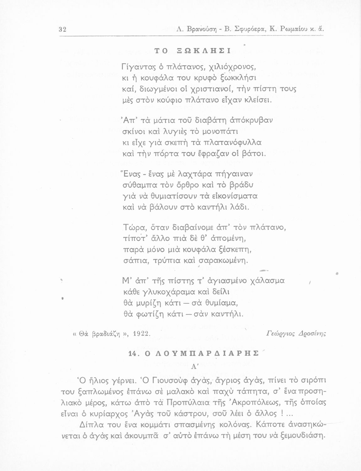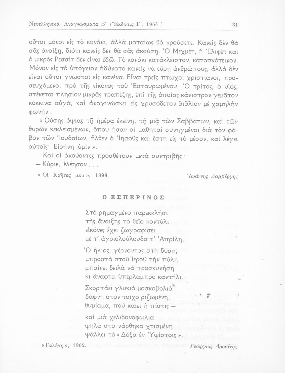Σχετιζόμενοι όροι:  Κρυστάλλης, Παλαμάς, Σολωμός, Δροσίνης