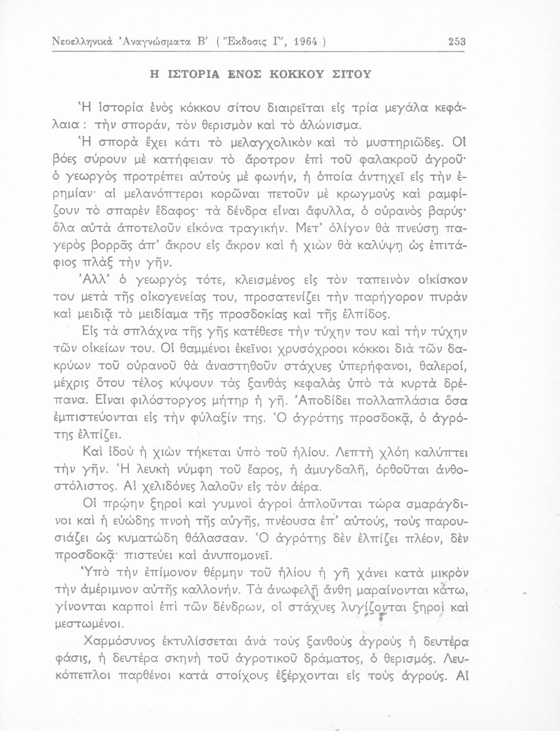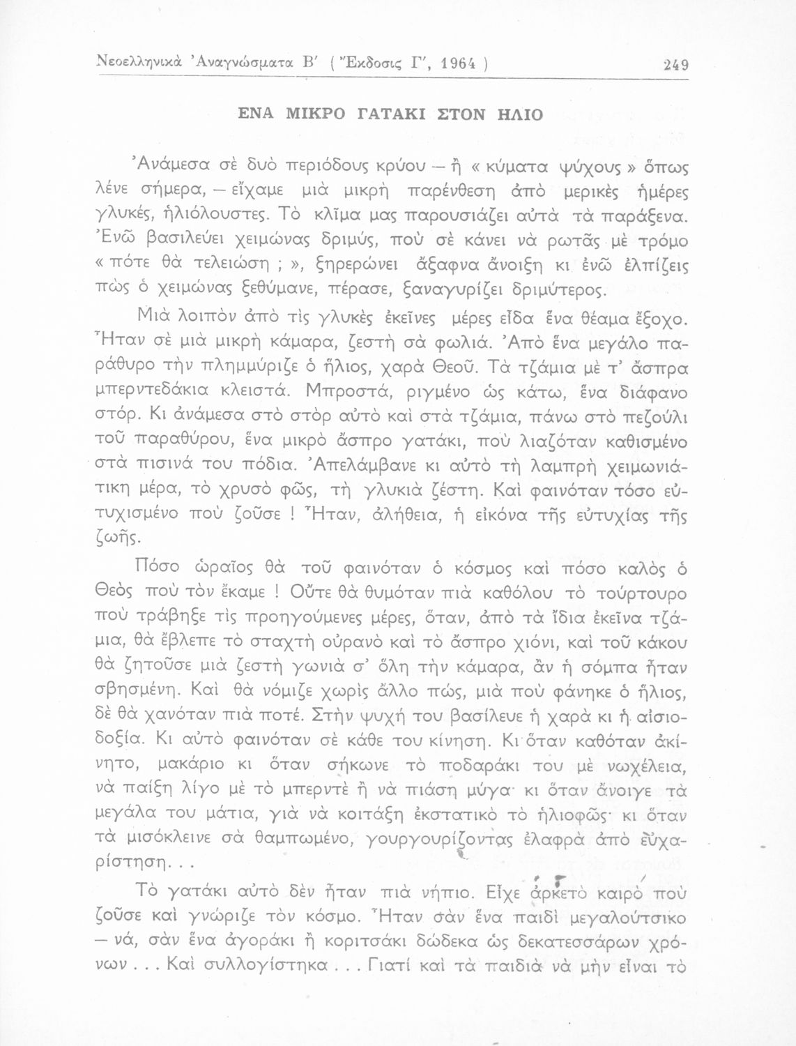 Σχολικό εγχειρίδιο Νέων Ελληνικών Δ΄ Γυμνασίου και Β΄ Αστικού Σχολείου που περιέχει πεζά και ποιήματα Ελλήνων συγγραφέων εμπνευσμένα από τη θρησκευτική και κοινωνική ζωή, την ελληνική μυθολογία, την αρχαία και