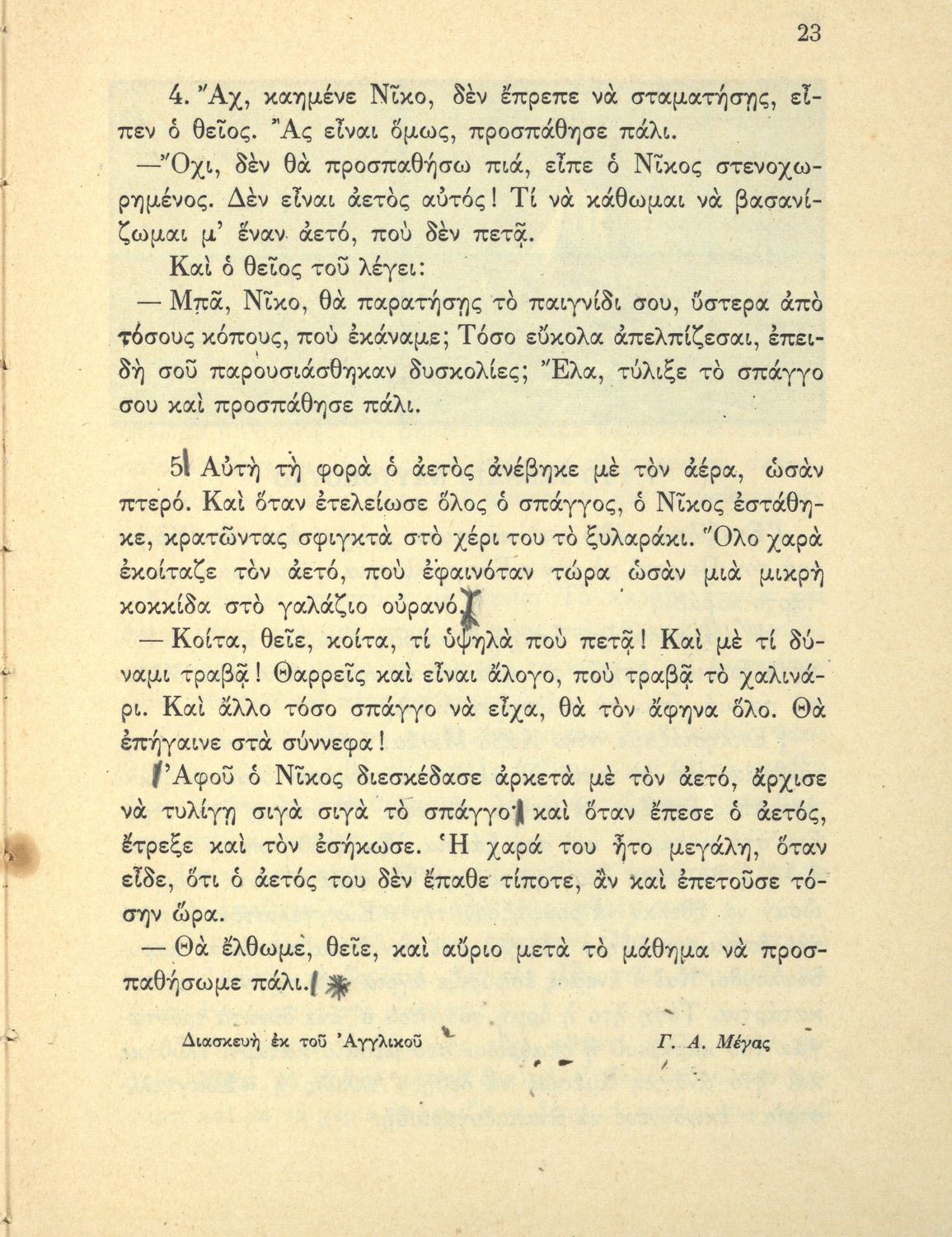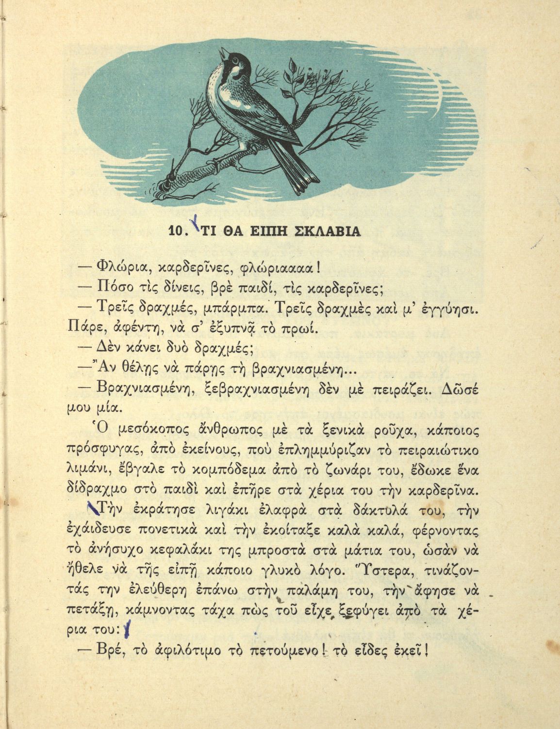 Αναγνωστικό Δ' Δημοτικού που είναι χωρισμένο σύμφωνα με τις εποχές του χρόνου και περιλαμβάνει ποιήματα και πεζά εμπνευσμένα από τη ζωή στην ύπαιθρο, την εθνική, οικογενειακή και κοινωνική ζωή, τη θρησκευτική παράδοση, τις ασχολίες των ανθρώπων, και την ελληνική φύση, ιστορία και μυθολογία.