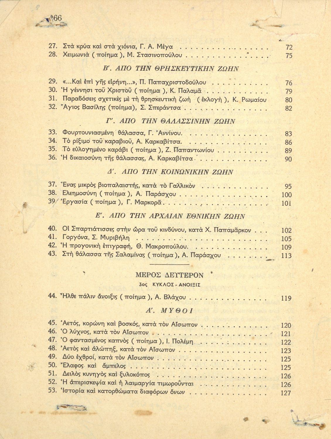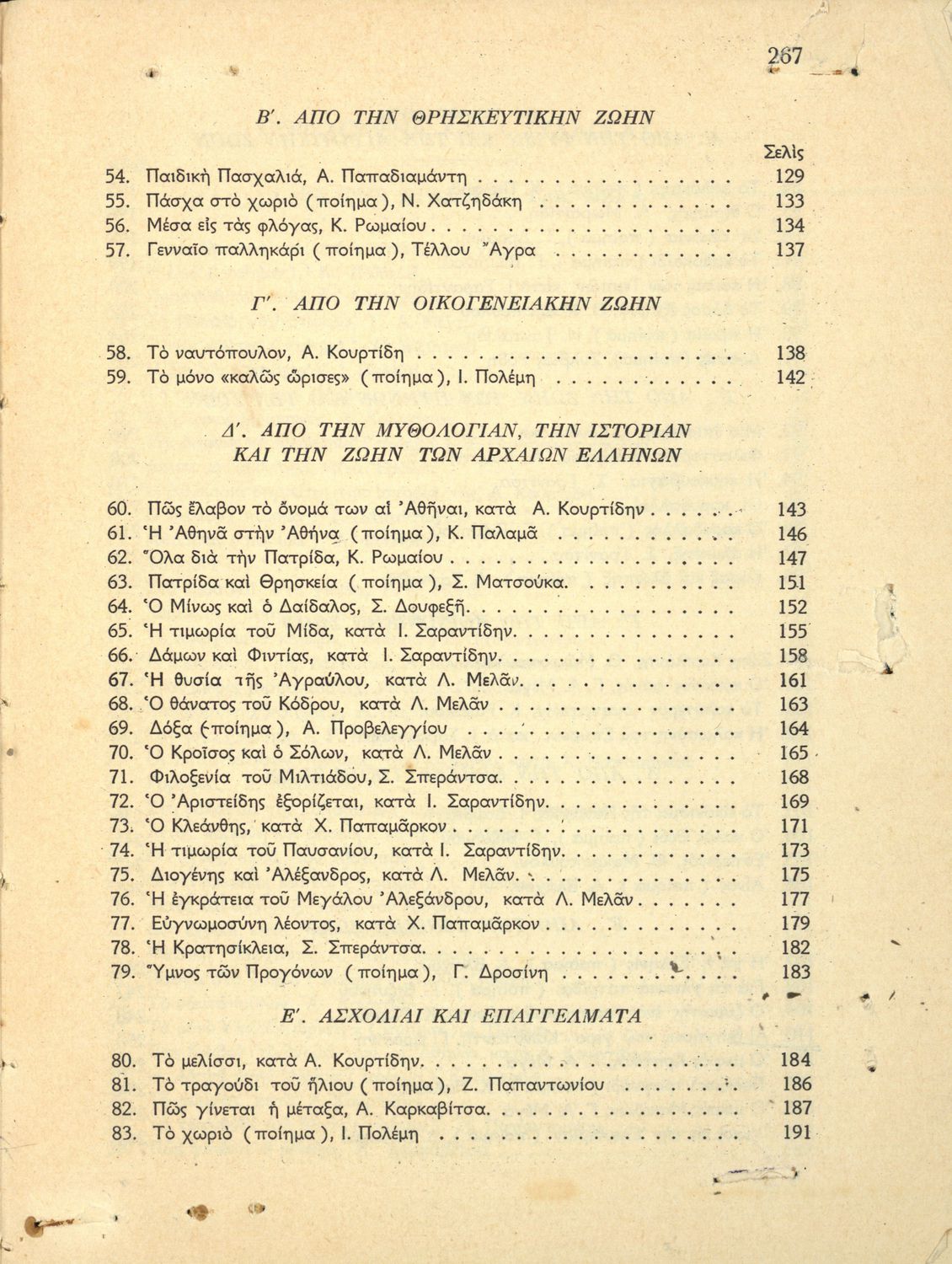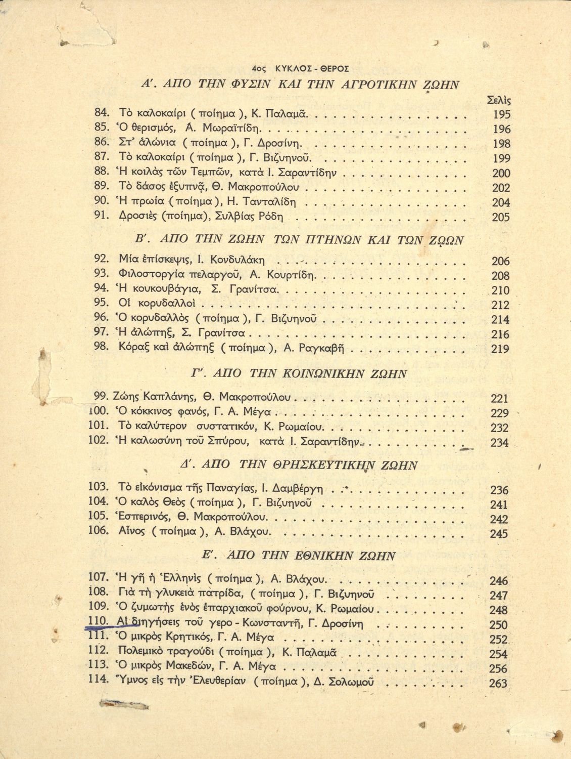 Αναγνωστικό Δ' Δημοτικού που είναι χωρισμένο σύμφωνα με τις εποχές του χρόνου και περιλαμβάνει ποιήματα και πεζά εμπνευσμένα από τη ζωή στην ύπαιθρο, την εθνική, οικογενειακή και κοινωνική ζωή, τη θρησκευτική ...