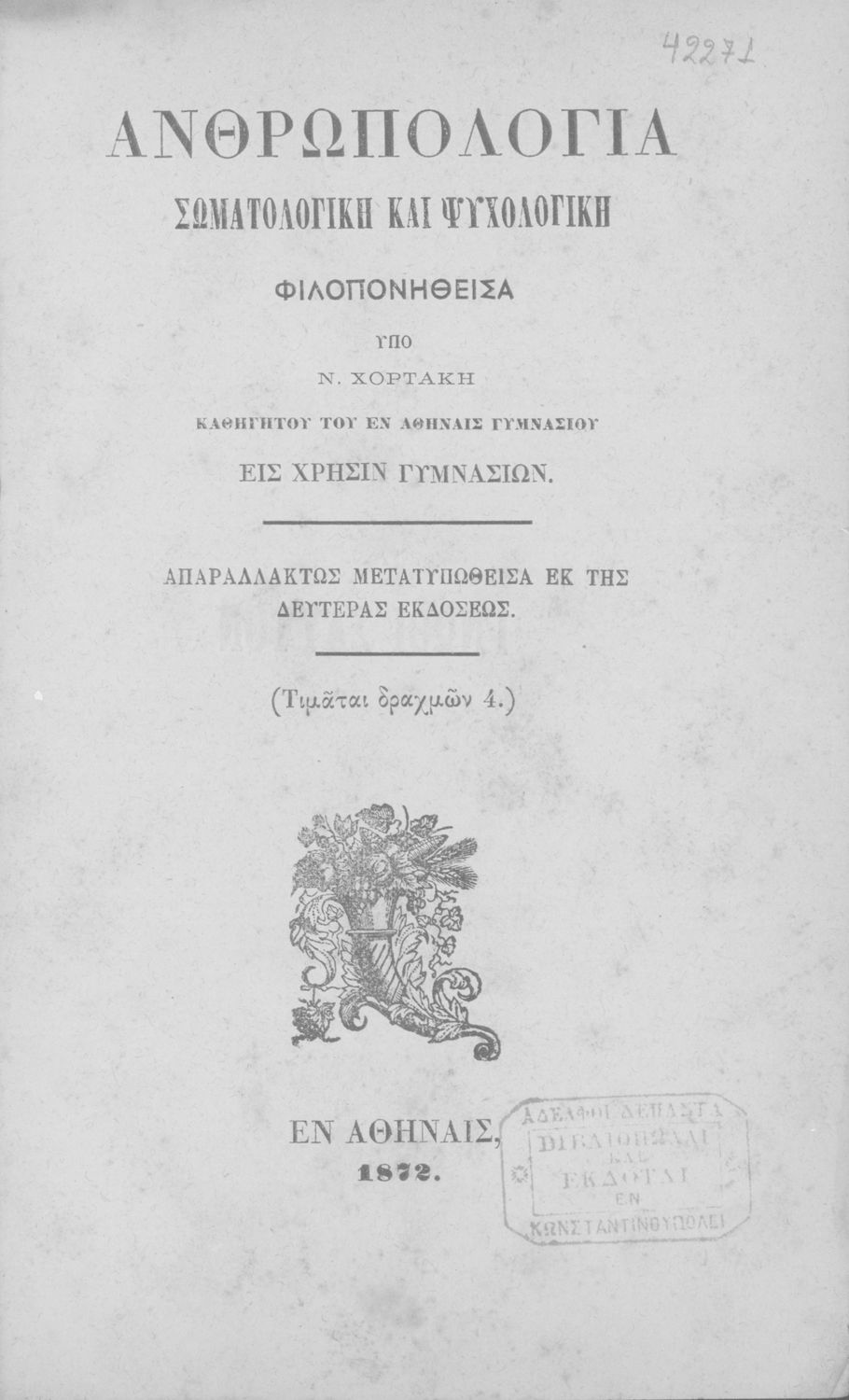 Τίτλος: Ανθρωπολογία Σωματολογία και Ψυχολογική, εις χρήσιν Γυμνασίων