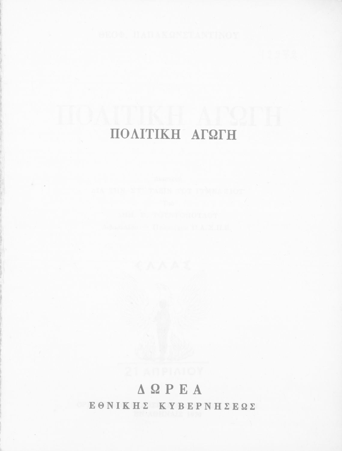 Τίτλος: Πολιτική Αγωγή δια την ΣΤ΄ Τάξιν του Γυμνασίου