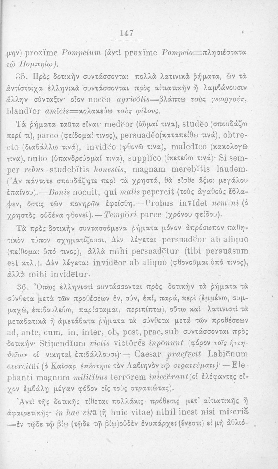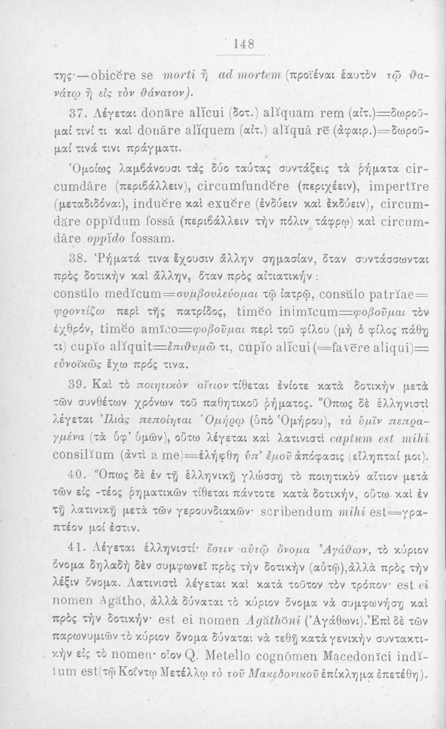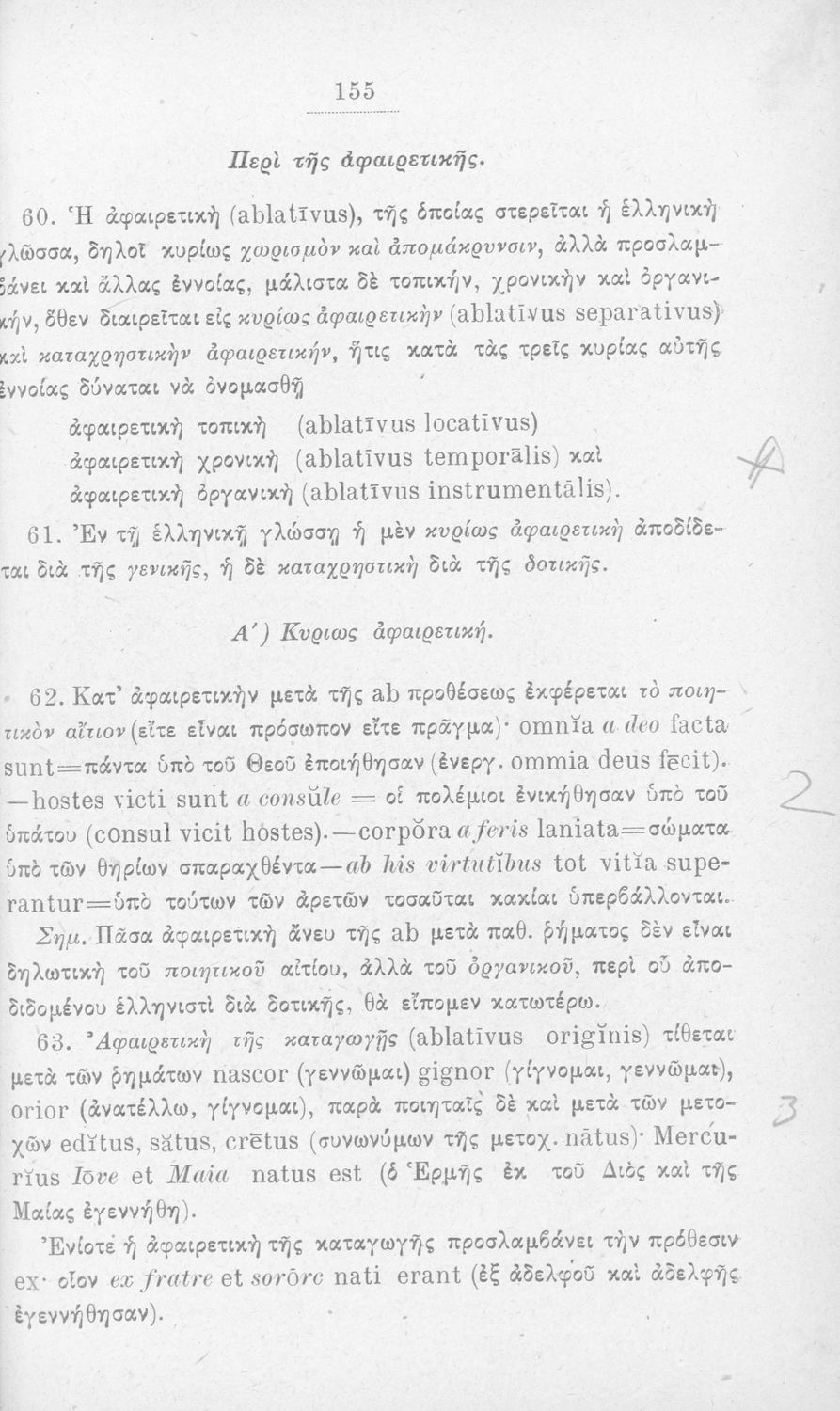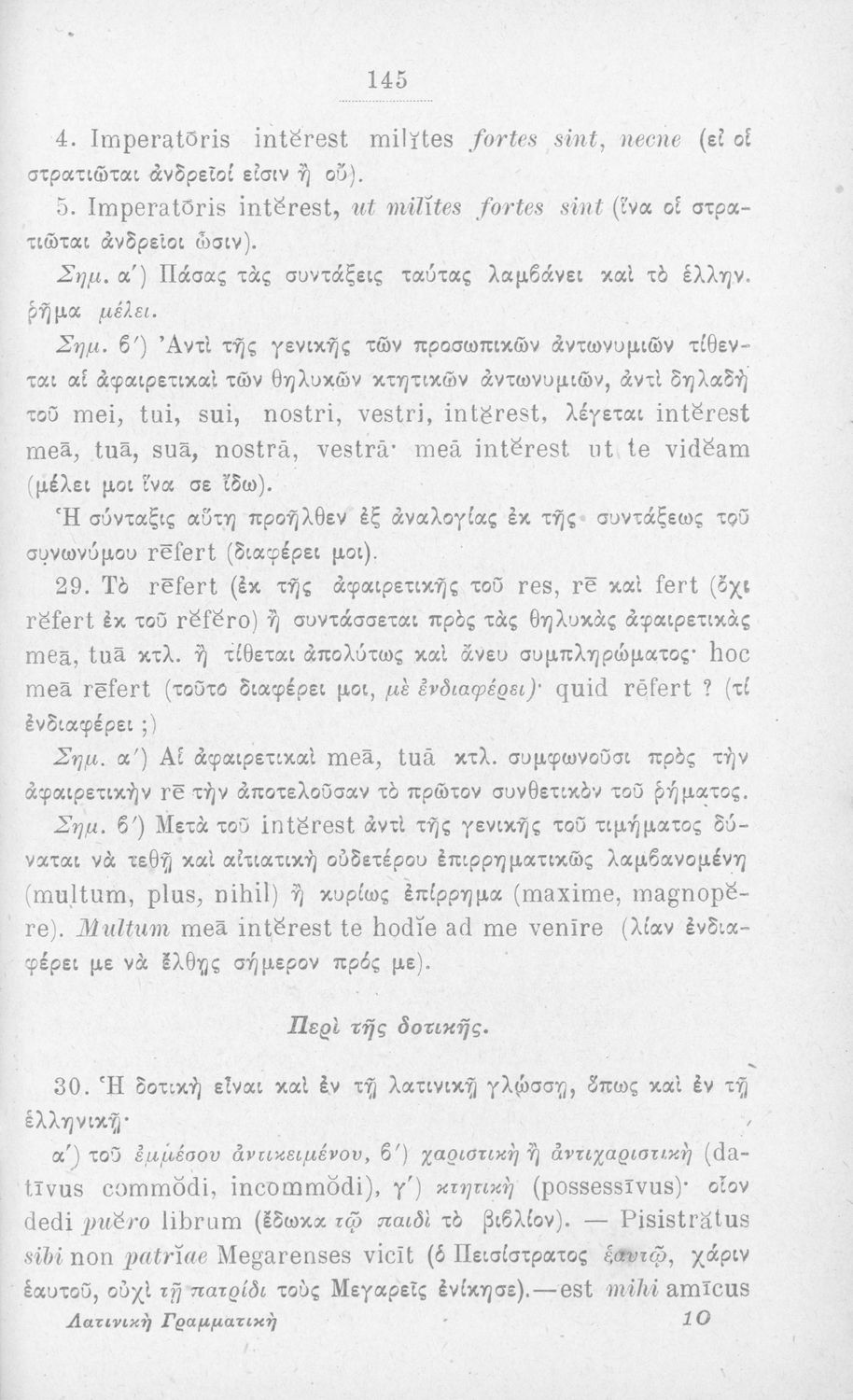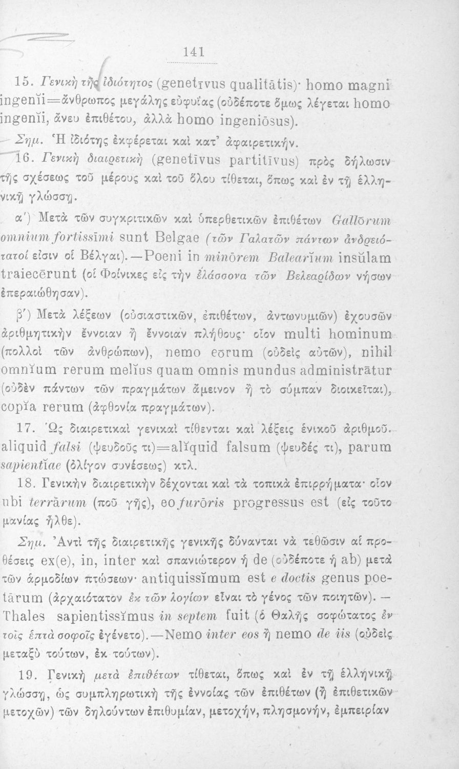 Σχολικό εγχειρίδιο Λατινικών που περιλαμβάνει τη γραμματική της λατινικής και είναι χωρισμένο στο τεχνολογικό, το τυπολογικό και το ετυμολογικό μέρος.