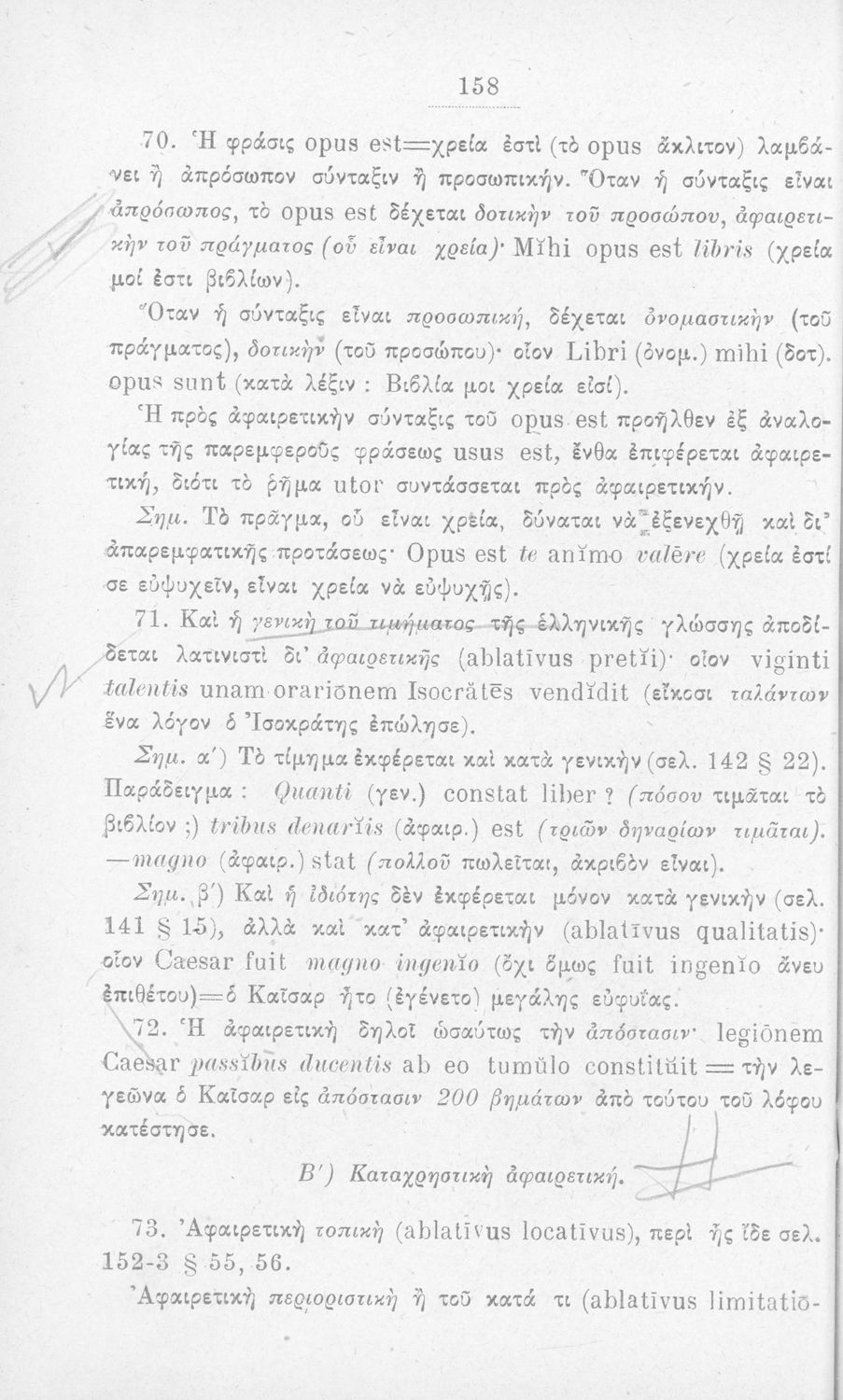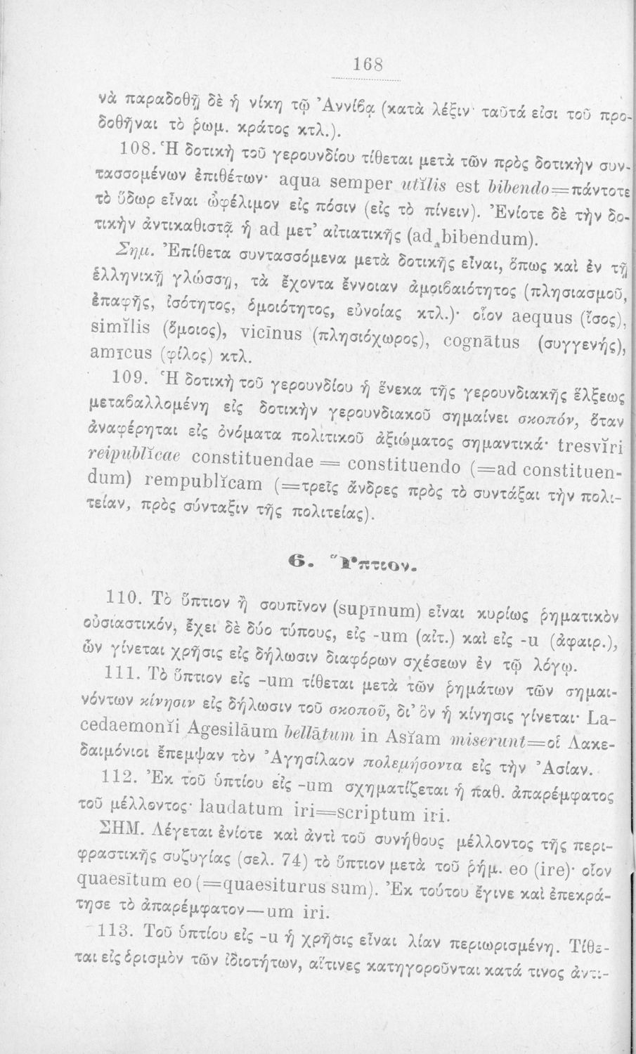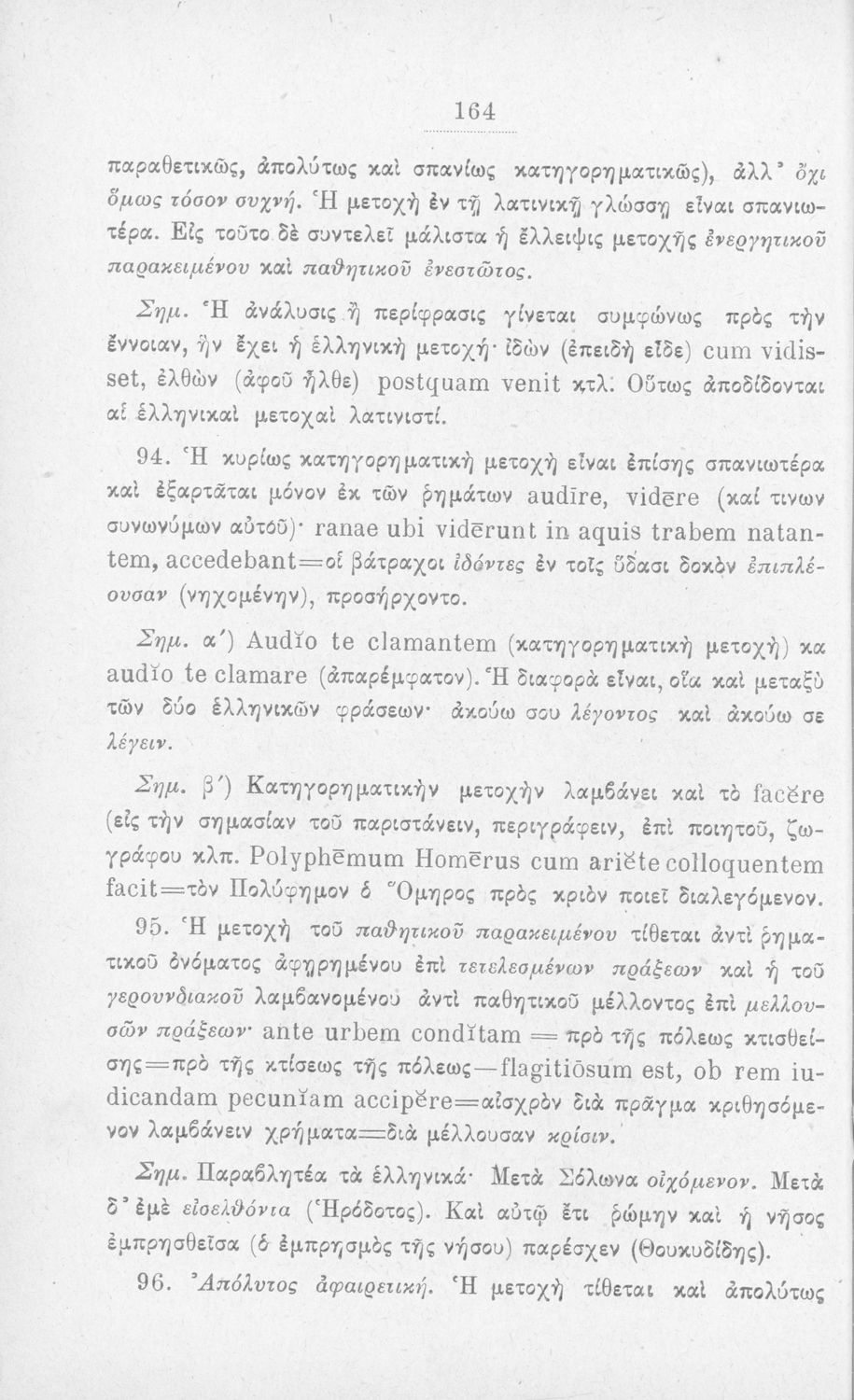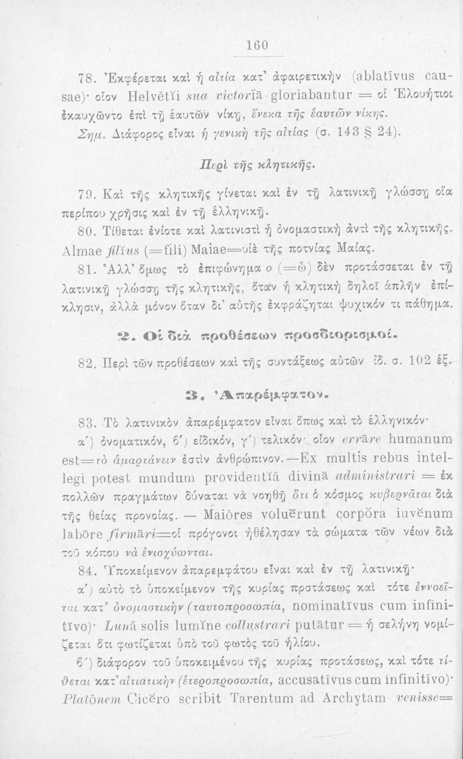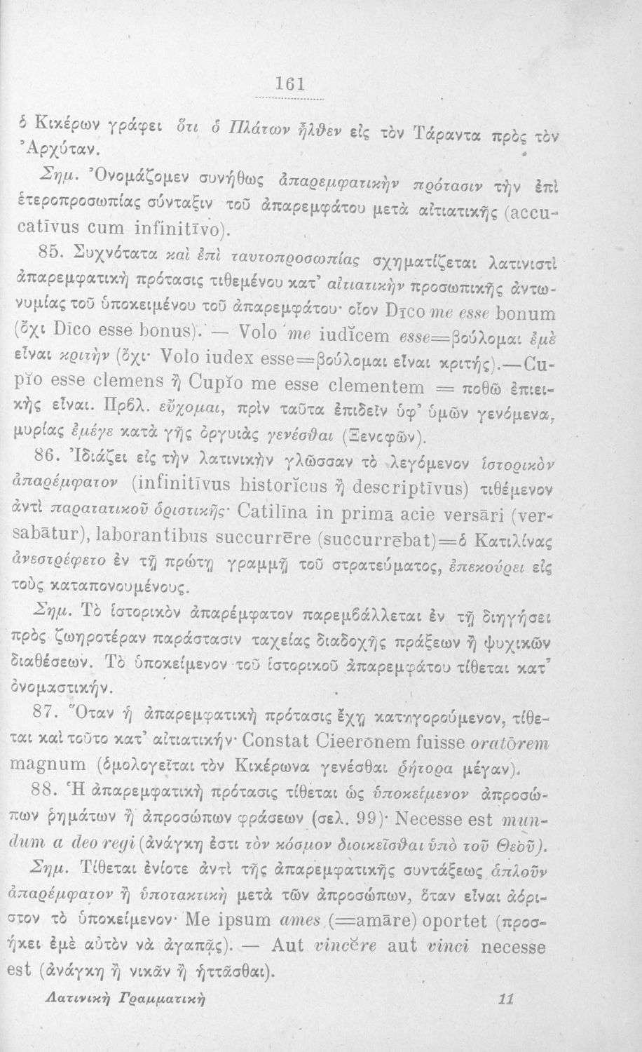 Σχολικό εγχειρίδιο Λατινικών που περιλαμβάνει τη γραμματική της λατινικής και είναι χωρισμένο στο τεχνολογικό, το τυπολογικό και το ετυμολογικό μέρος.