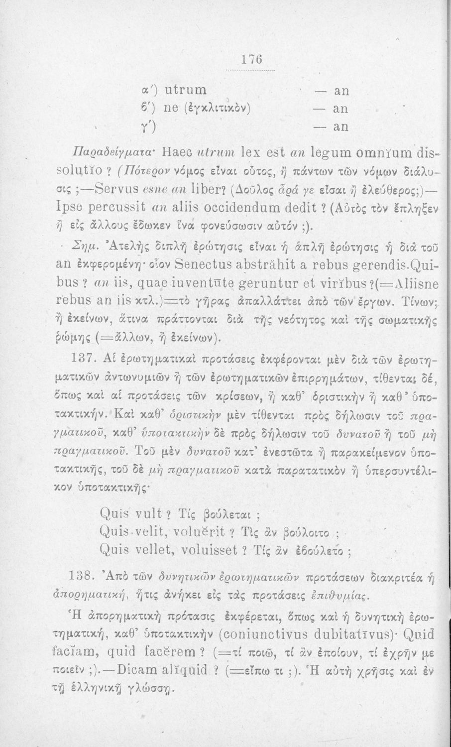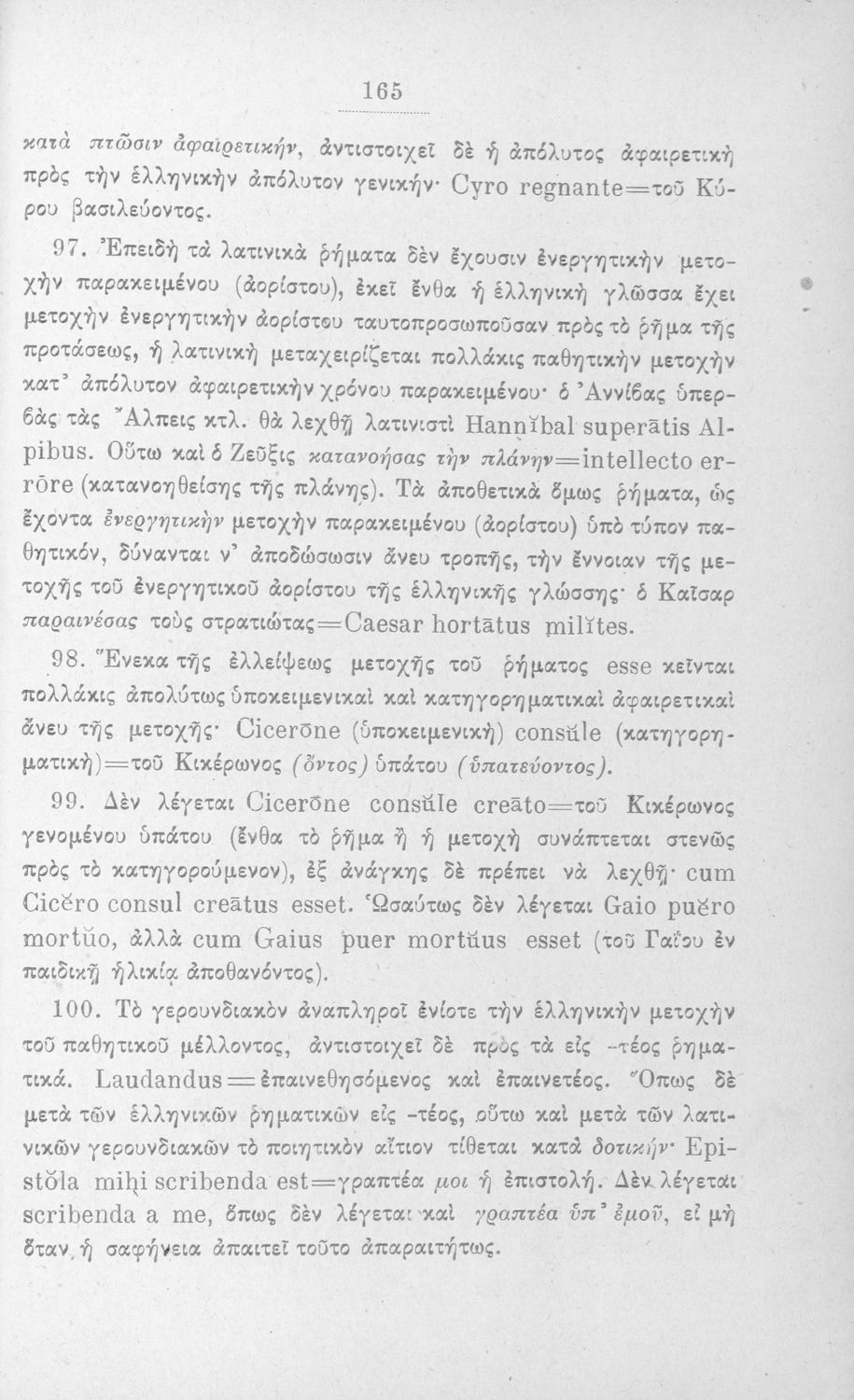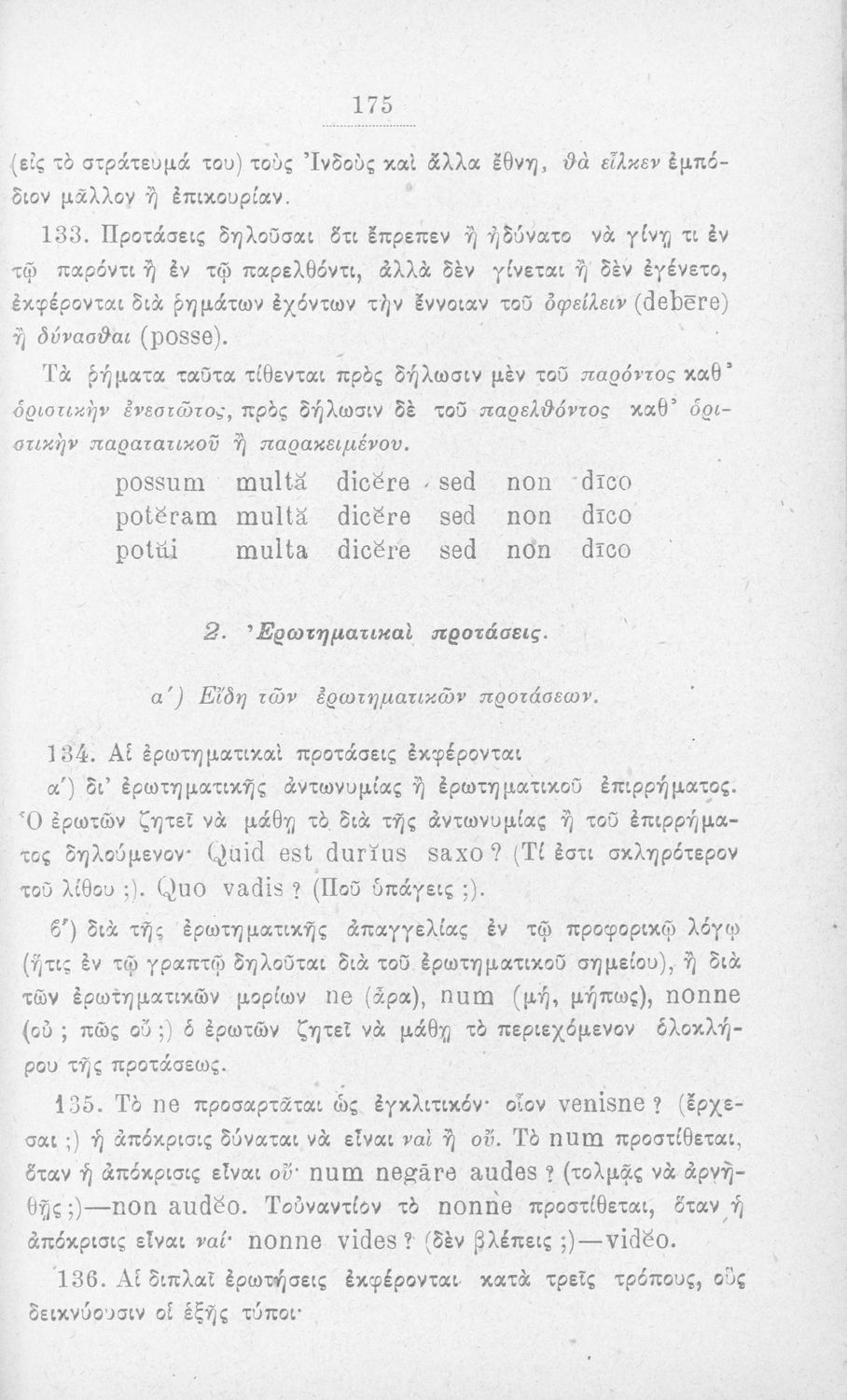 Γραμματικής της λατινικής γλώσσας για τα Ελληνικά Σχολεία και Γυμνάσια που περιέχει δύο τμήματα: το τεχνολογικό που εστιάζει στα μέρη του λόγου και το συντακτικό που ασχολείται με τις πτώσεις, τις εγκλίσεις, ...