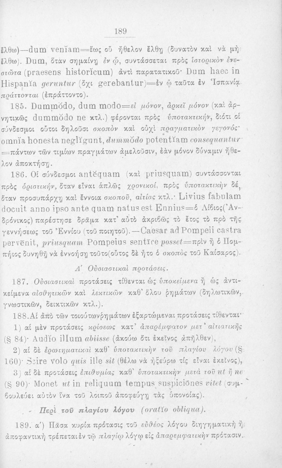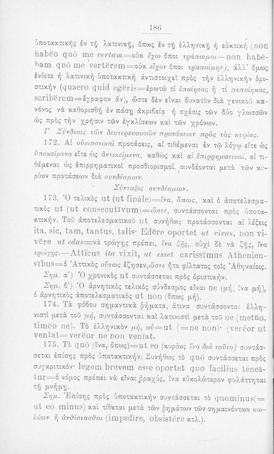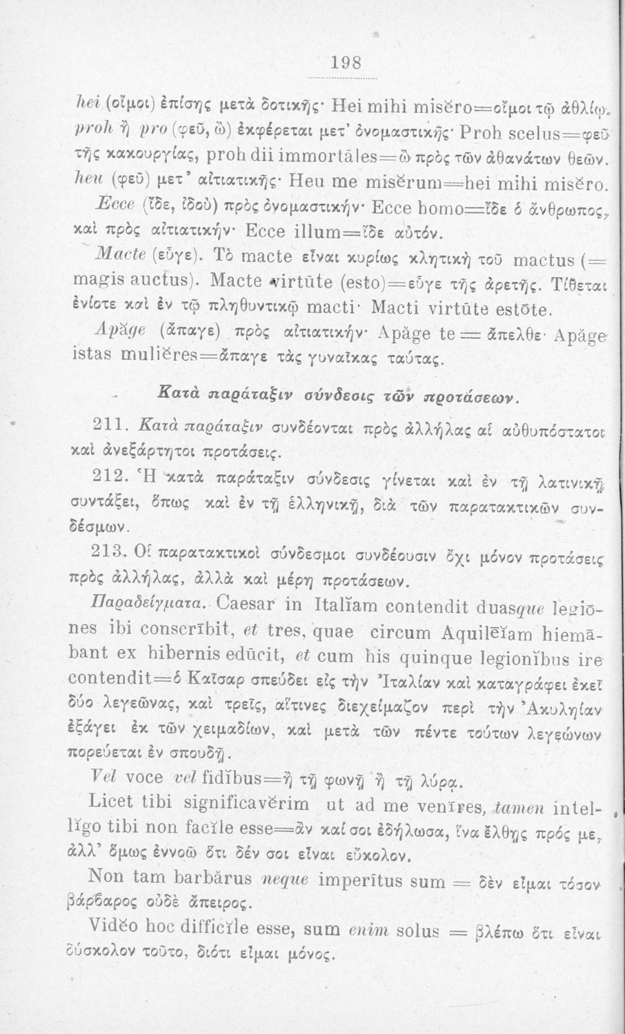 Γραμματικής της λατινικής γλώσσας για τα Ελληνικά Σχολεία και Γυμνάσια που περιέχει δύο τμήματα: το τεχνολογικό που εστιάζει στα μέρη του λόγου και το συντακτικό που ασχολείται με τις πτώσεις, τις εγκλίσεις, ...