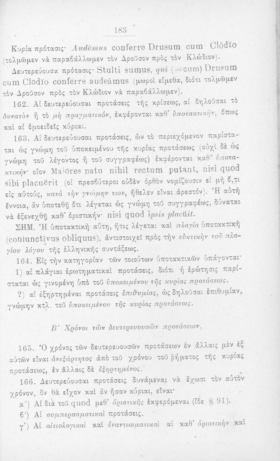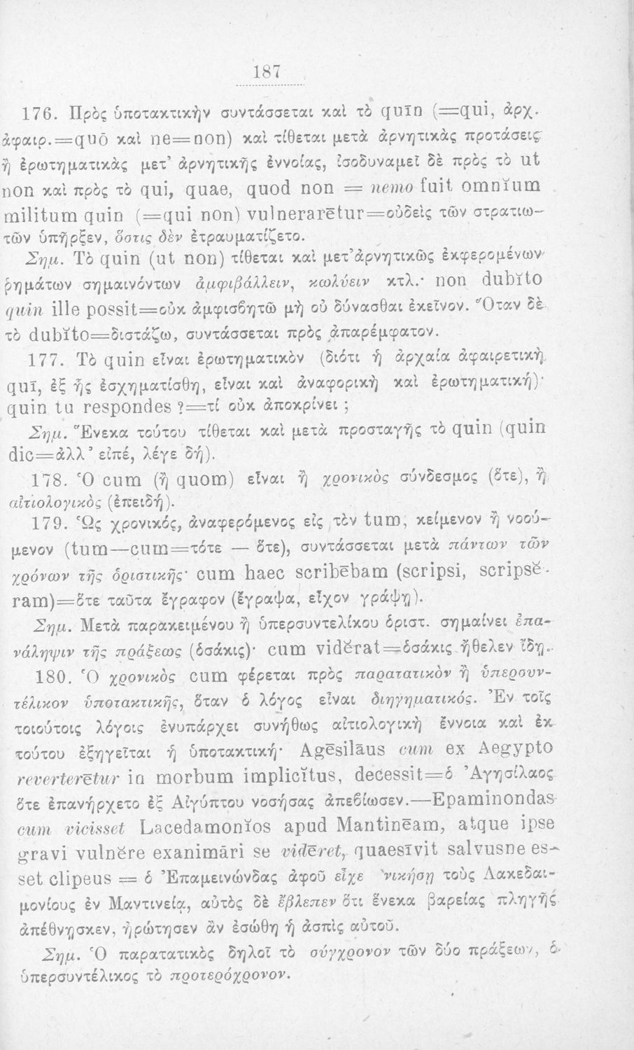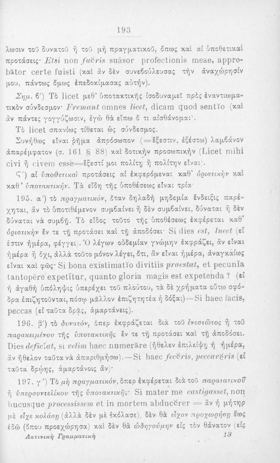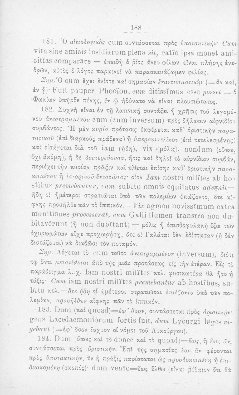 Γραμματικής της λατινικής γλώσσας για τα Ελληνικά Σχολεία και Γυμνάσια που περιέχει δύο τμήματα: το τεχνολογικό που εστιάζει στα μέρη του λόγου και το συντακτικό που ασχολείται με τις πτώσεις, τις εγκλίσεις, ...