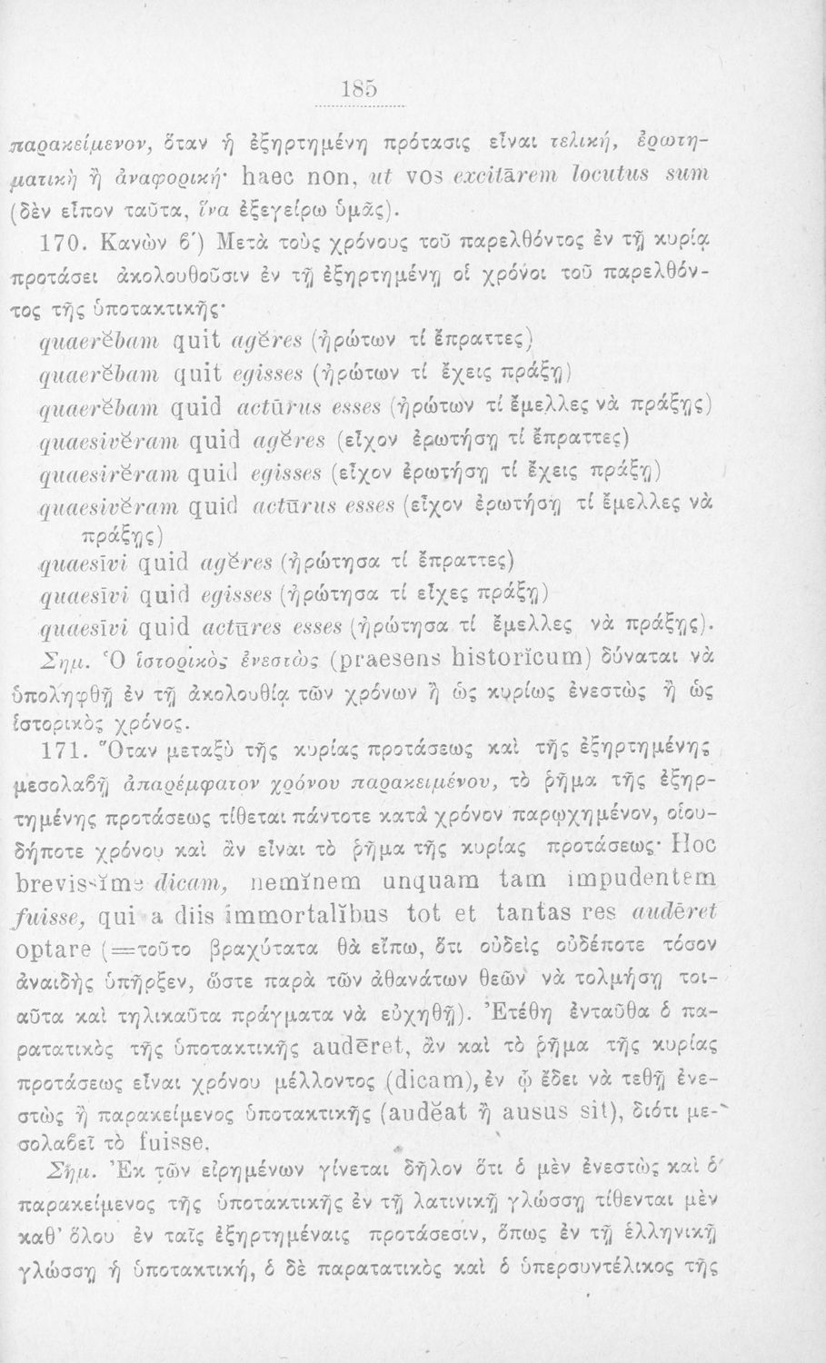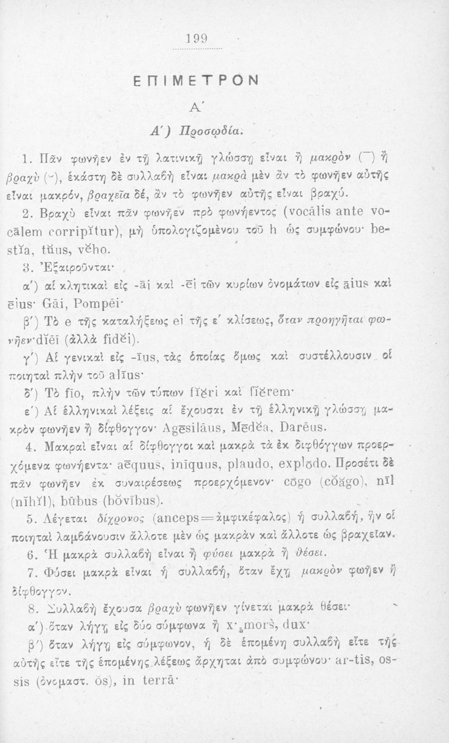 Σχολικό εγχειρίδιο Λατινικών που περιλαμβάνει τη γραμματική της λατινικής και είναι χωρισμένο στο τεχνολογικό, το τυπολογικό και το ετυμολογικό μέρος.