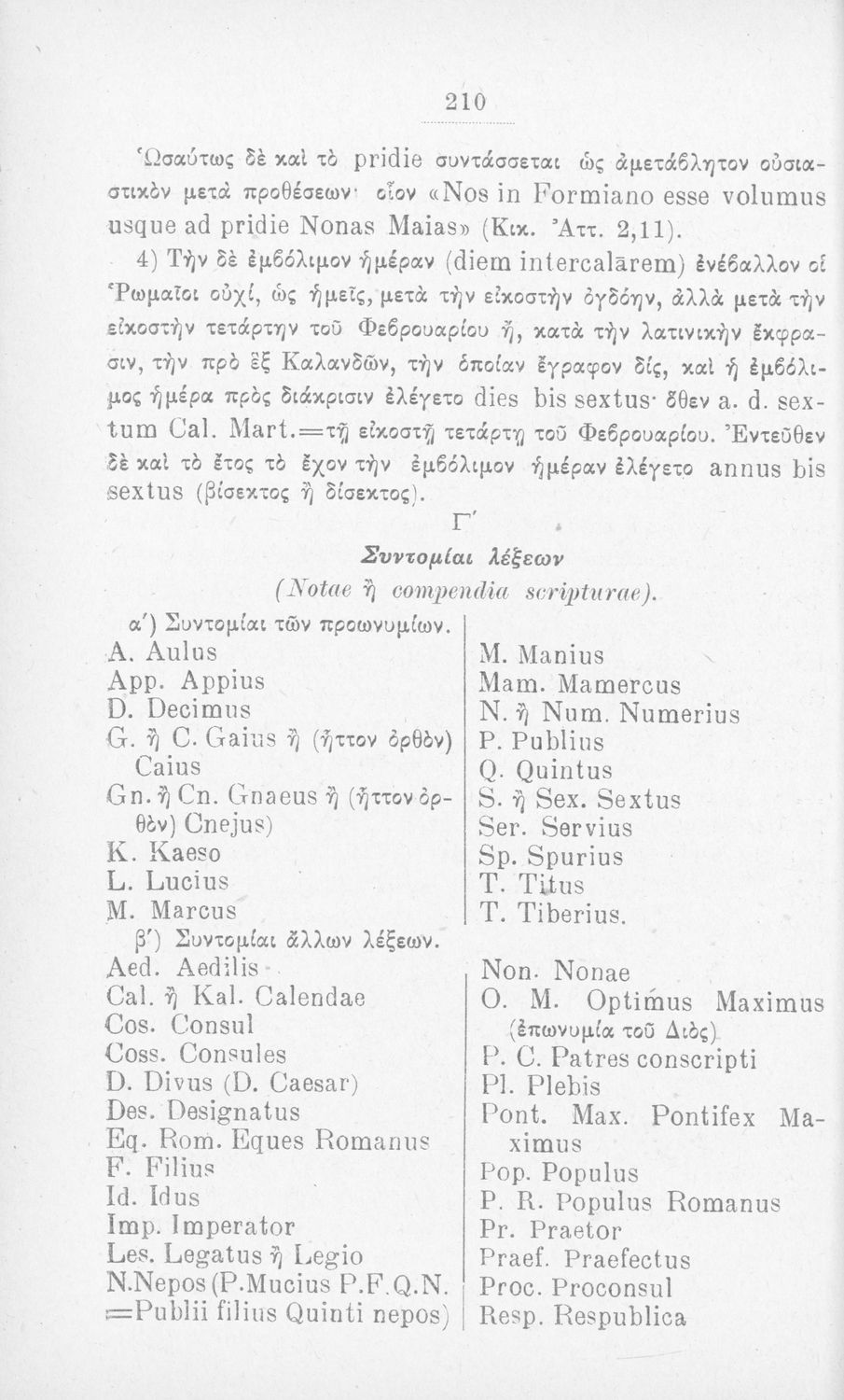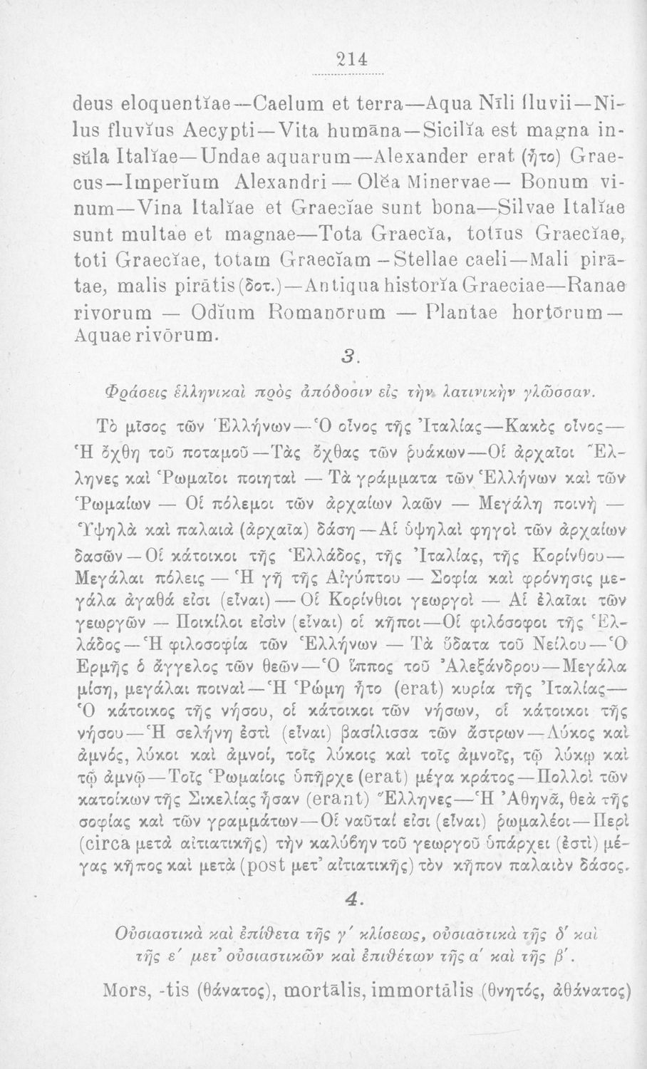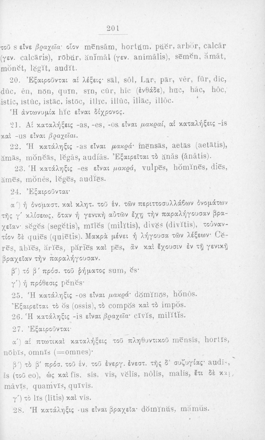 Σχολικό εγχειρίδιο Λατινικών που περιλαμβάνει τη γραμματική της λατινικής και είναι χωρισμένο στο τεχνολογικό, το τυπολογικό και το ετυμολογικό μέρος.