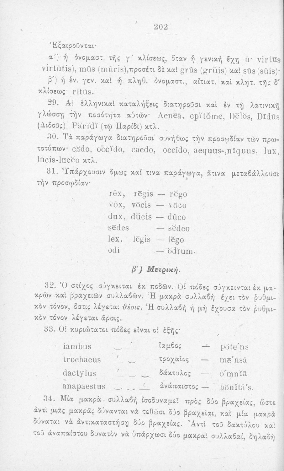 Σχολικό εγχειρίδιο Λατινικών που περιλαμβάνει τη γραμματική της λατινικής και είναι χωρισμένο στο φθογγολογικό, το τυπολογικό και το ετυμολογικό μέρος. Περιέχει και τους συντακτικούς κανόνες και τέσσερα ...
