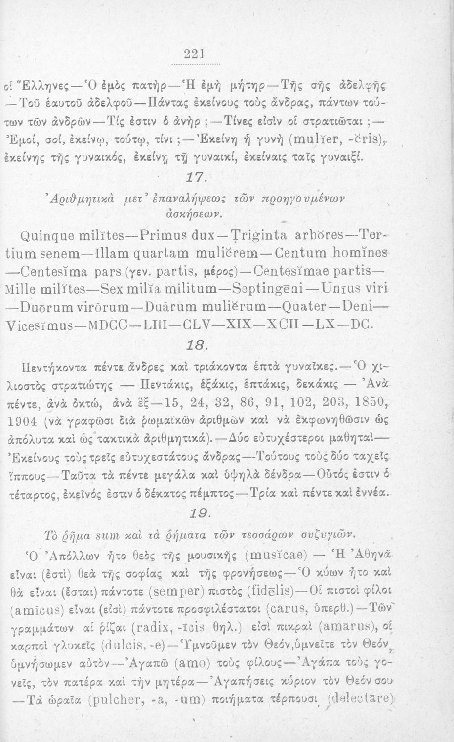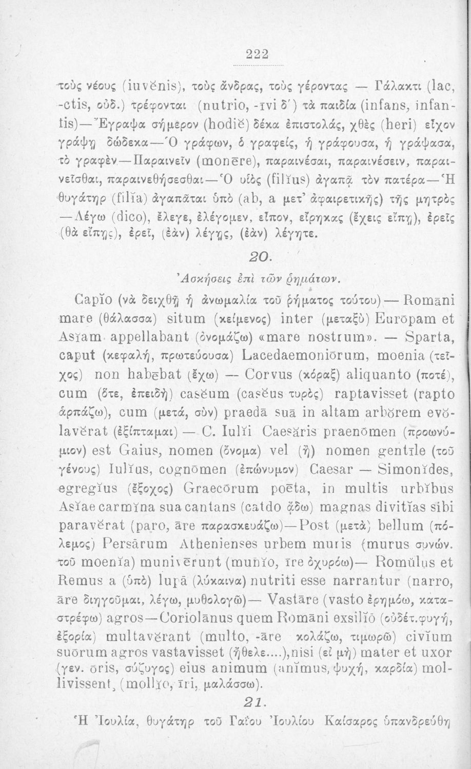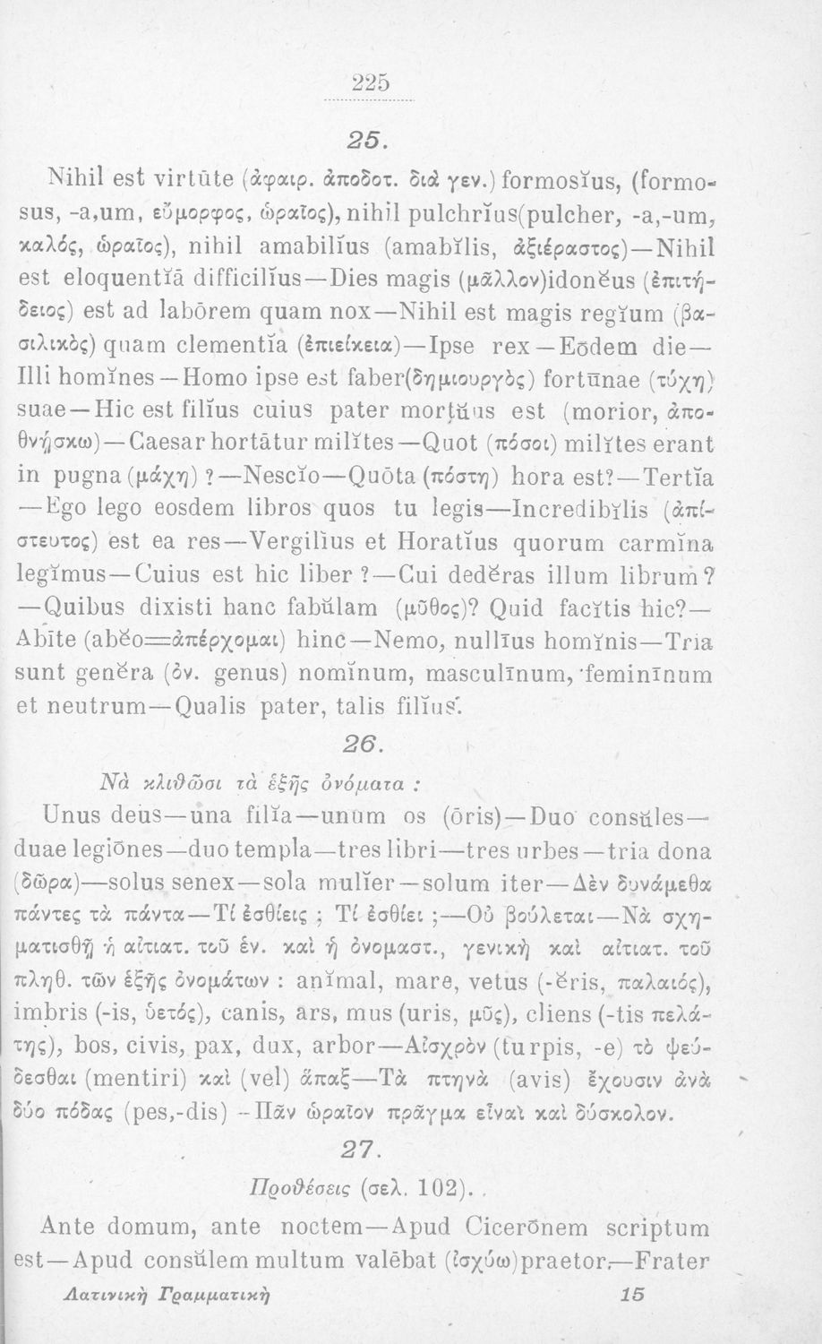 Σχολικό εγχειρίδιο Λατινικών που περιλαμβάνει τη γραμματική της λατινικής και είναι χωρισμένο στο τεχνολογικό, το τυπολογικό και το ετυμολογικό μέρος.