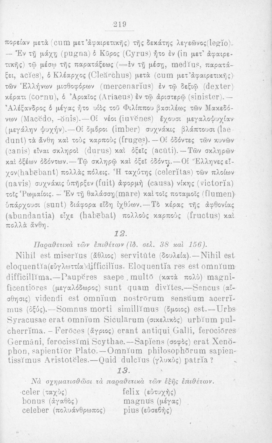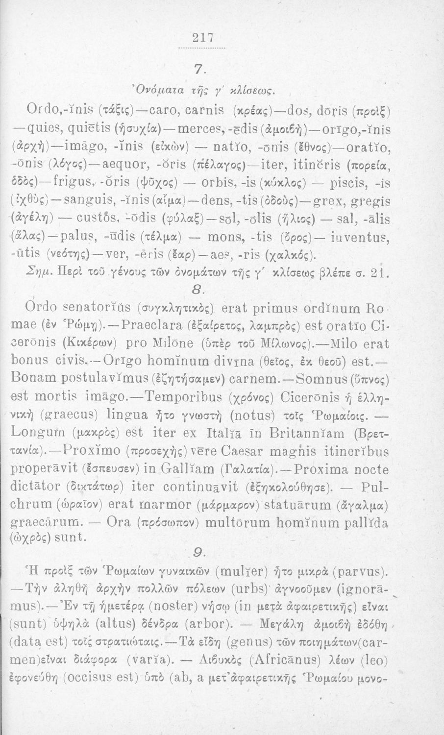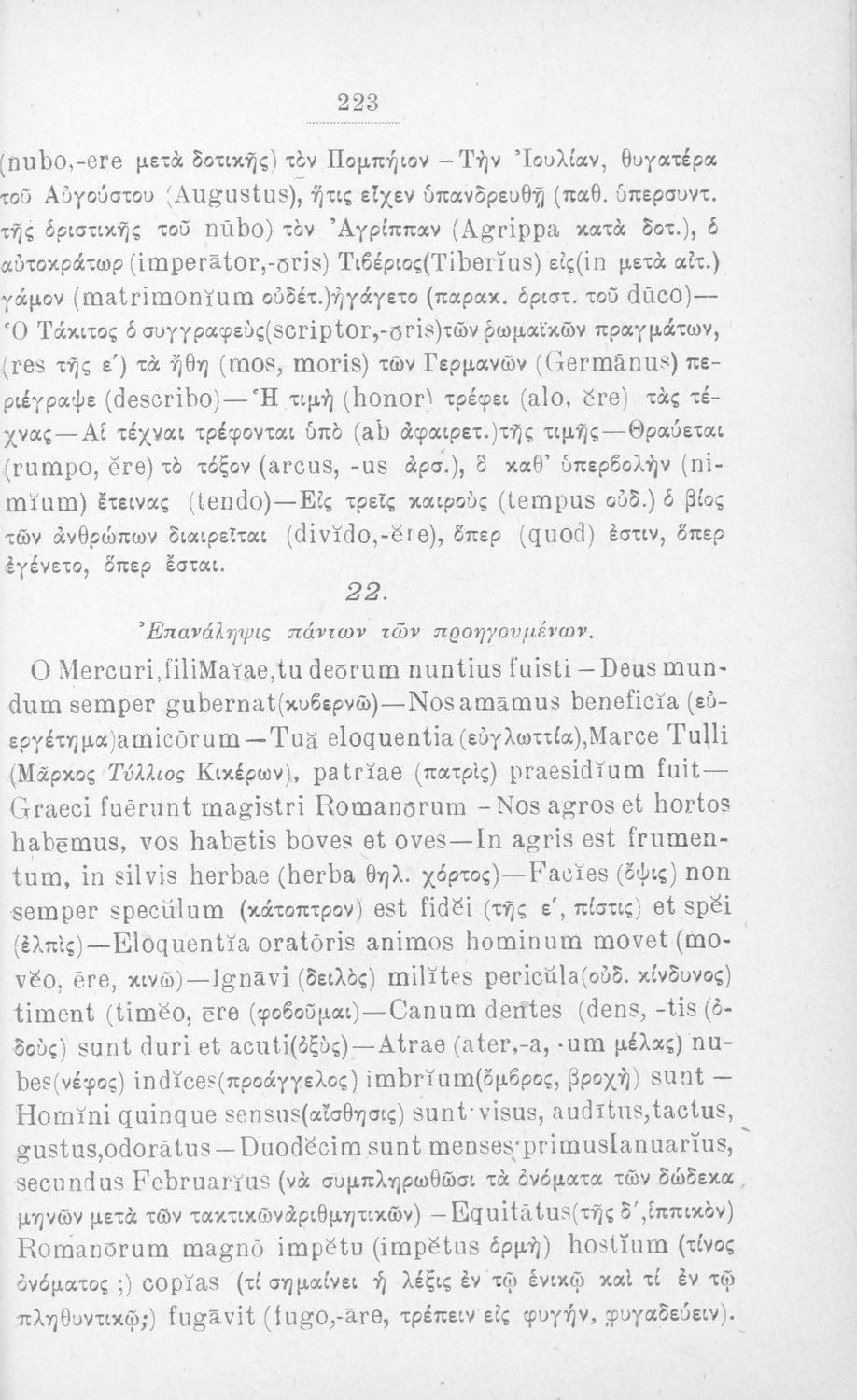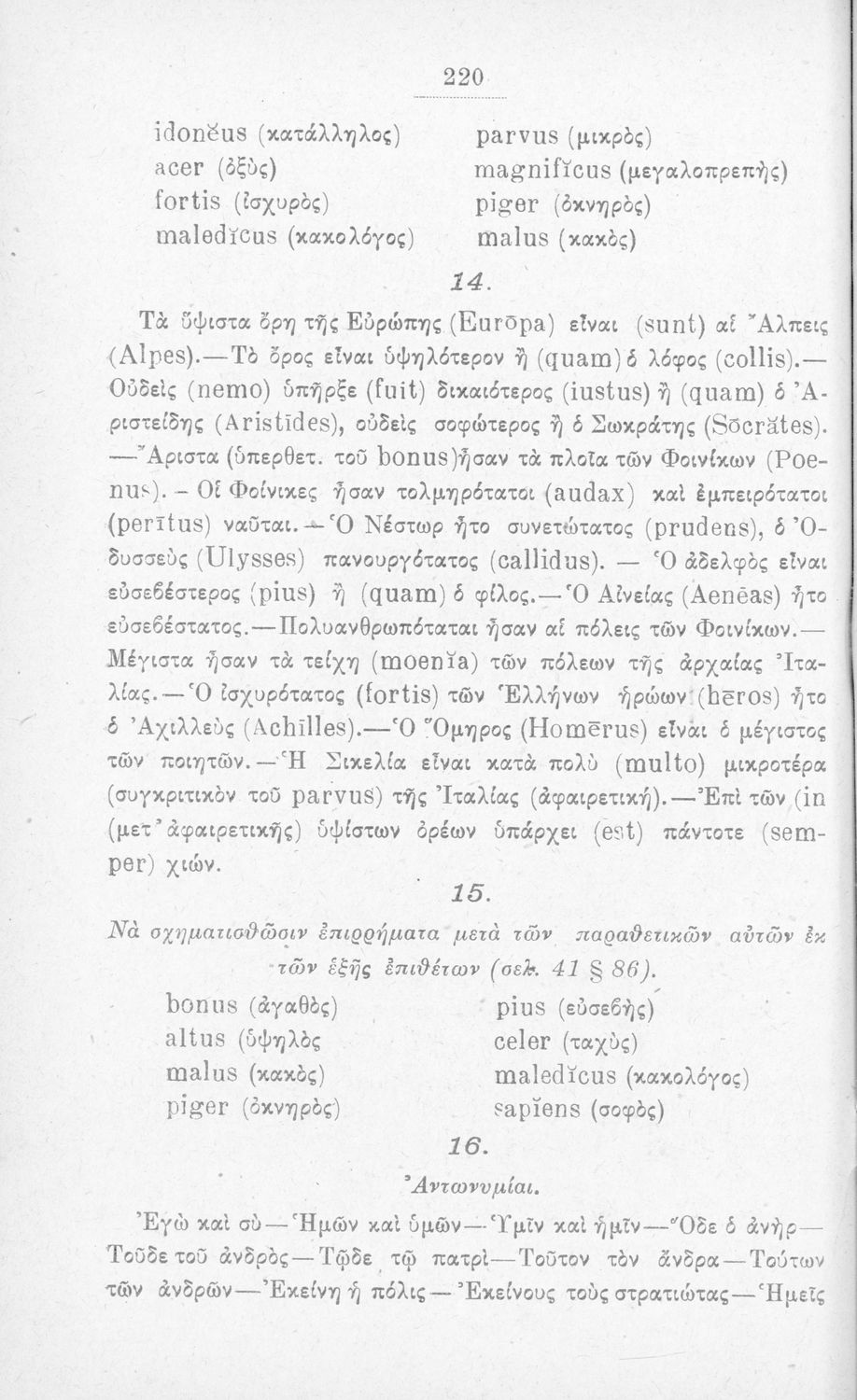 Σχολικό εγχειρίδιο Λατινικών που περιλαμβάνει τη γραμματική της λατινικής και είναι χωρισμένο στο τεχνολογικό, το τυπολογικό και το ετυμολογικό μέρος.