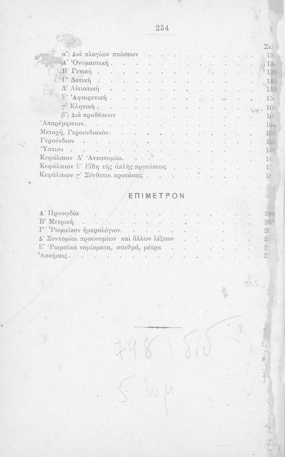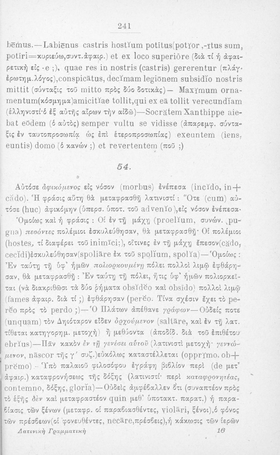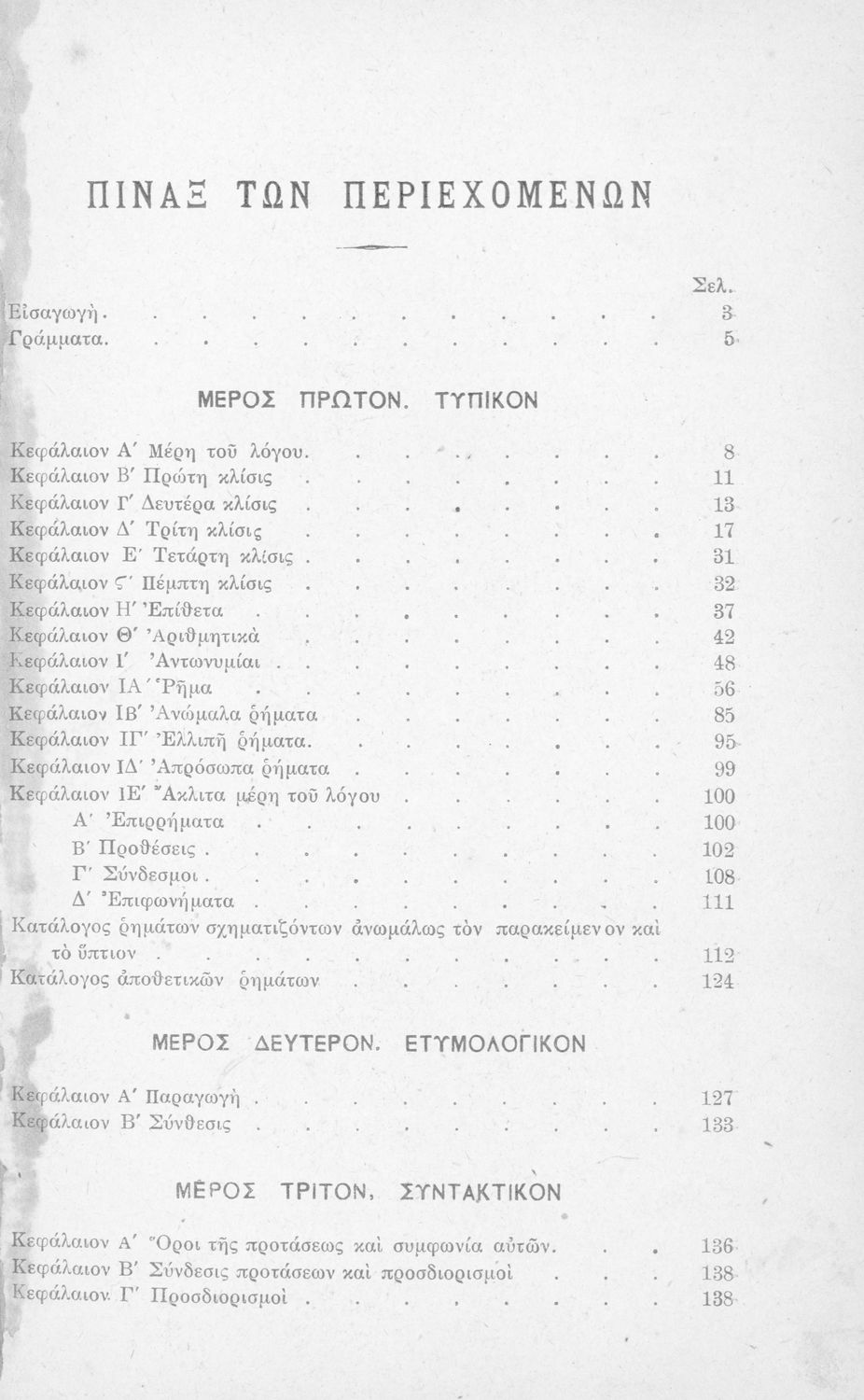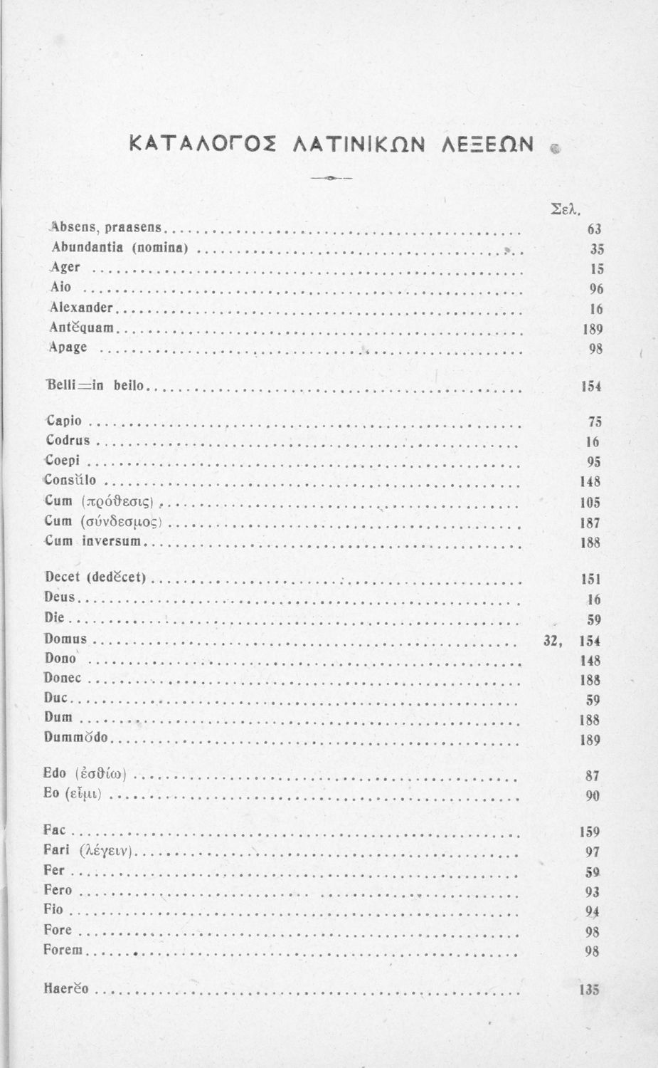 Σχολικό εγχειρίδιο Λατινικών που περιλαμβάνει τη γραμματική της λατινικής και είναι χωρισμένο στο τεχνολογικό, το τυπολογικό και το ετυμολογικό μέρος.