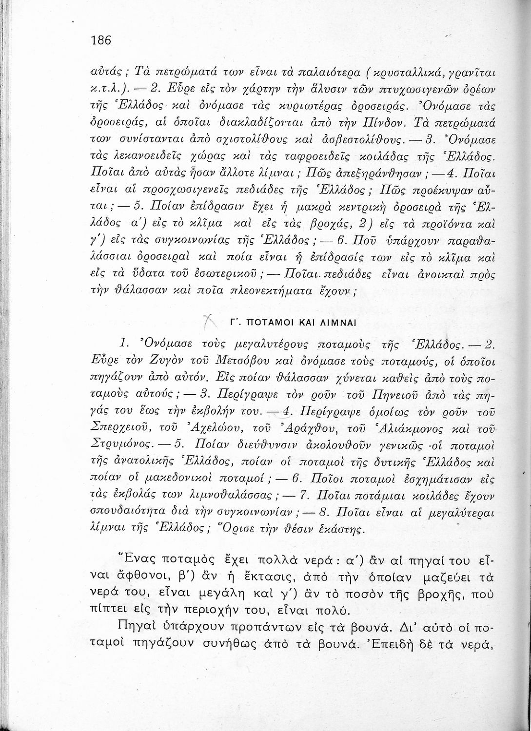 Παρουσίαση περιεχομένου: Σχολικό εγχειρίδιο Γεωγραφίας Α' Γυμνασίου που εξετάζει την Ελλάδα ανά διαμέρισμα και νομό από γεωφυσική, οικονομική και πολιτική άποψη.
