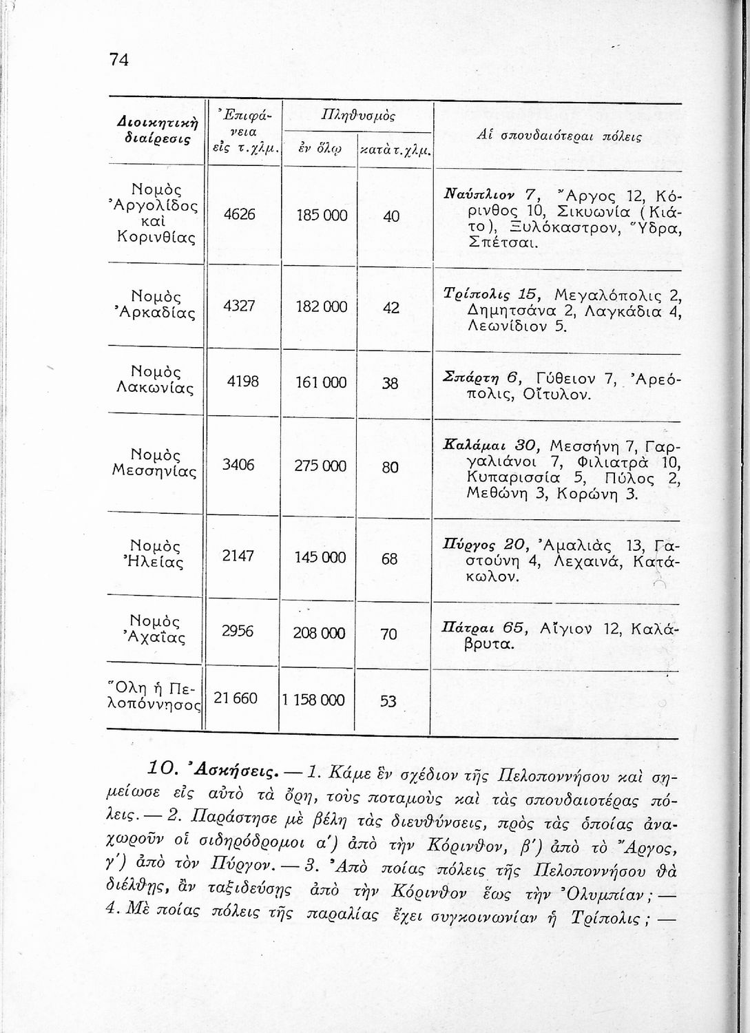 Σχολικό εγχειρίδιο Γεωγραφίας Α' Γυμνασίου που εξετάζει την Ελλάδα ανά διαμέρισμα και νομό από γεωφυσική, οικονομική και πολιτική άποψη.