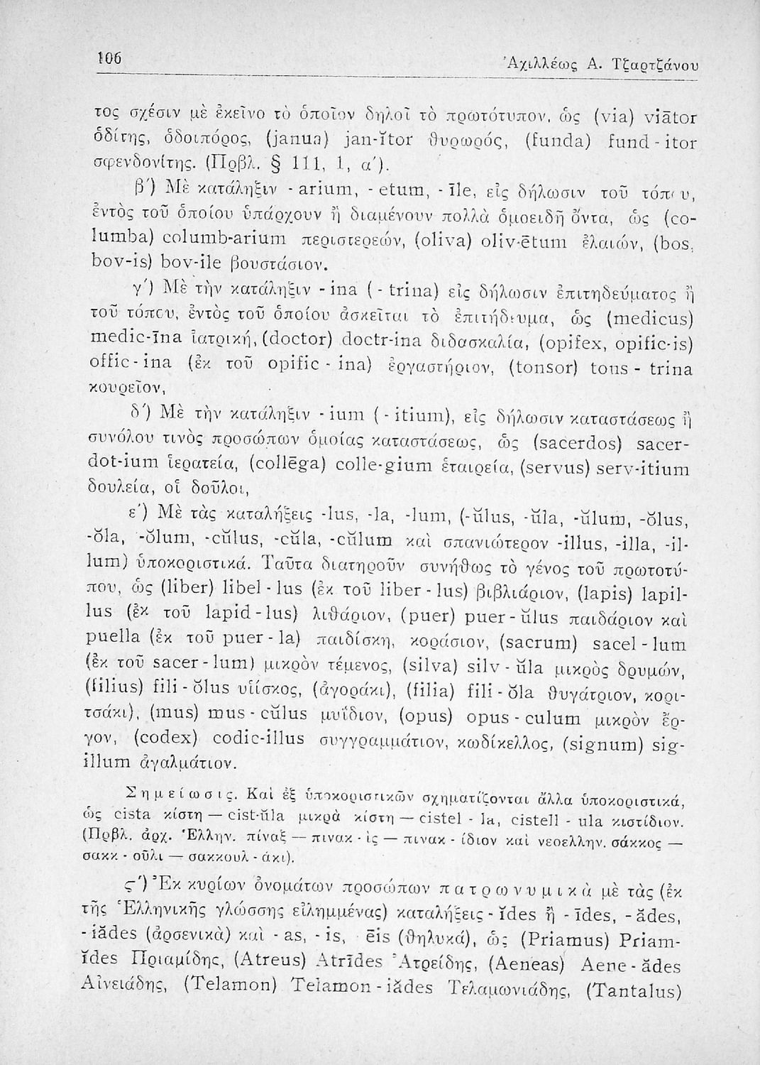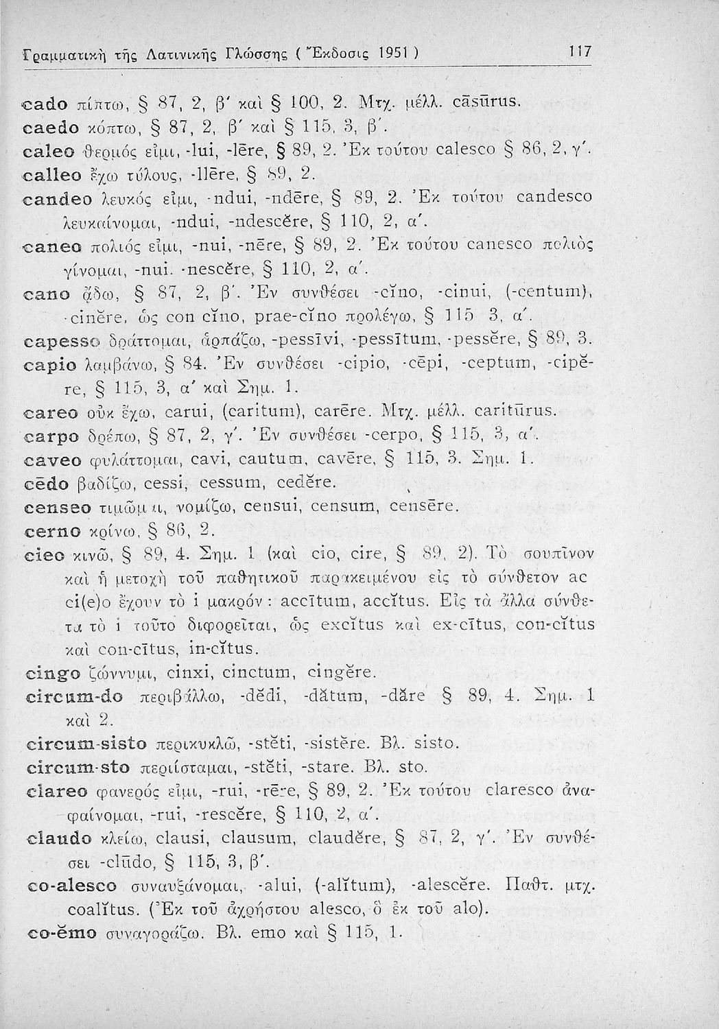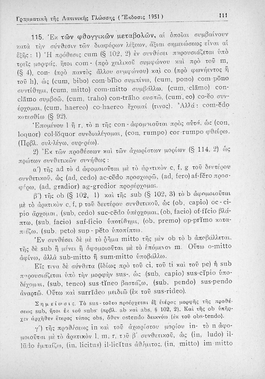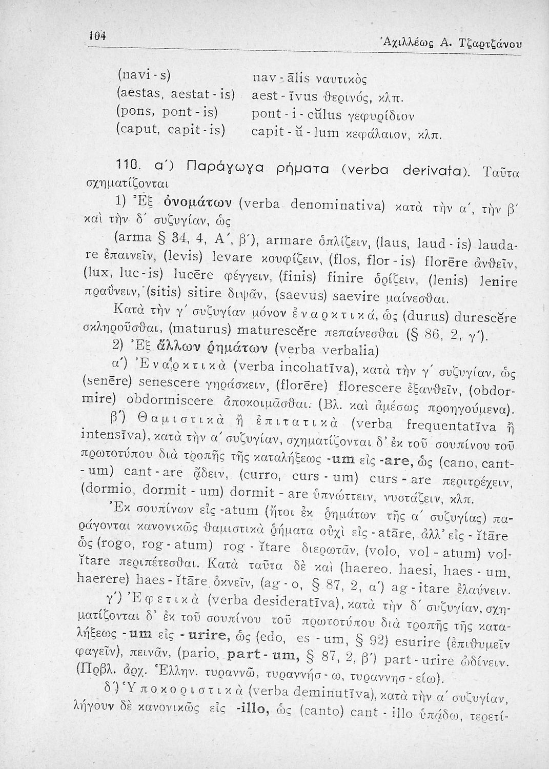 Σχολικό εγχειρίδιο Λατινικών Γυμνασίου που περιλαμβάνει γραμματική και συντακτικό και είναι χωρισμένο σε φθογγολογικό, τυπολογικό και ετυμολογικό μέρος.