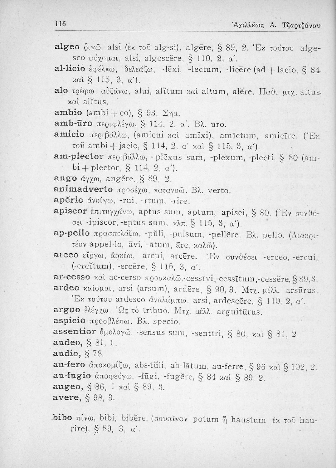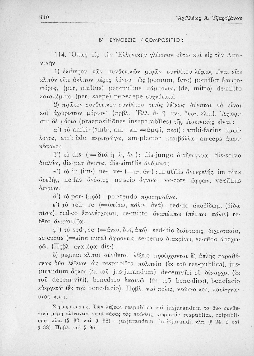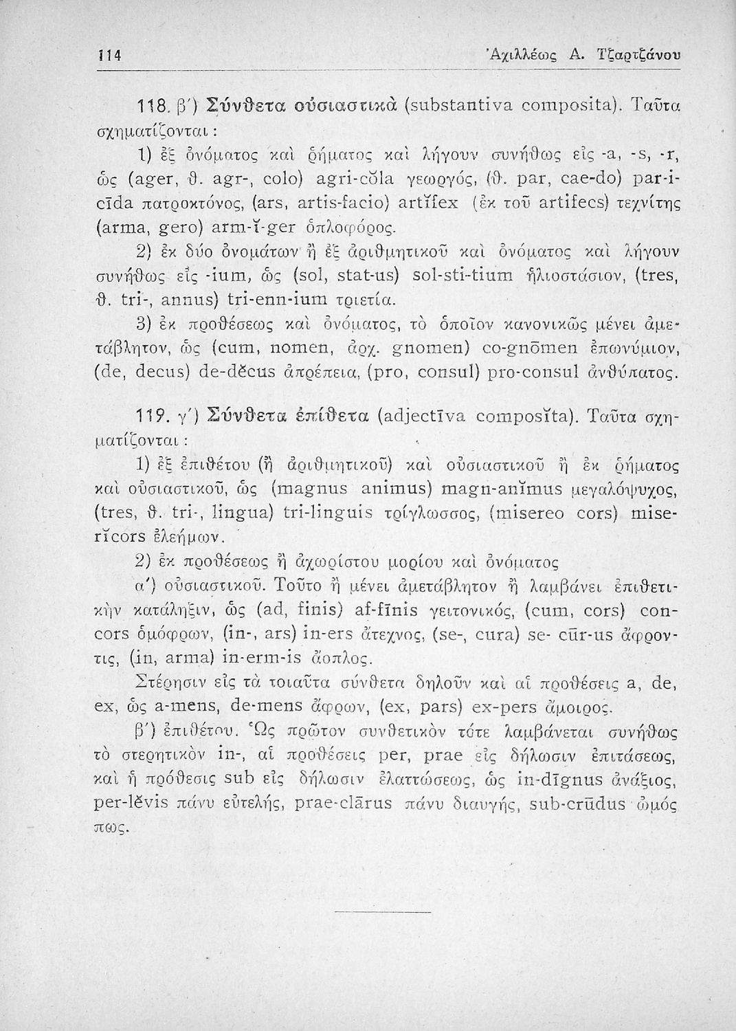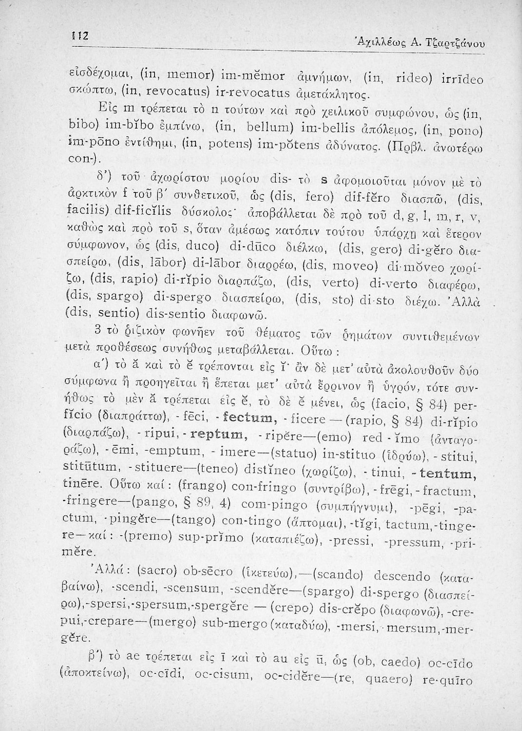 Σχολικό εγχειρίδιο Λατινικών Γυμνασίου που περιλαμβάνει γραμματική και συντακτικό και είναι χωρισμένο σε φθογγολογικό, τυπολογικό και ετυμολογικό μέρος.