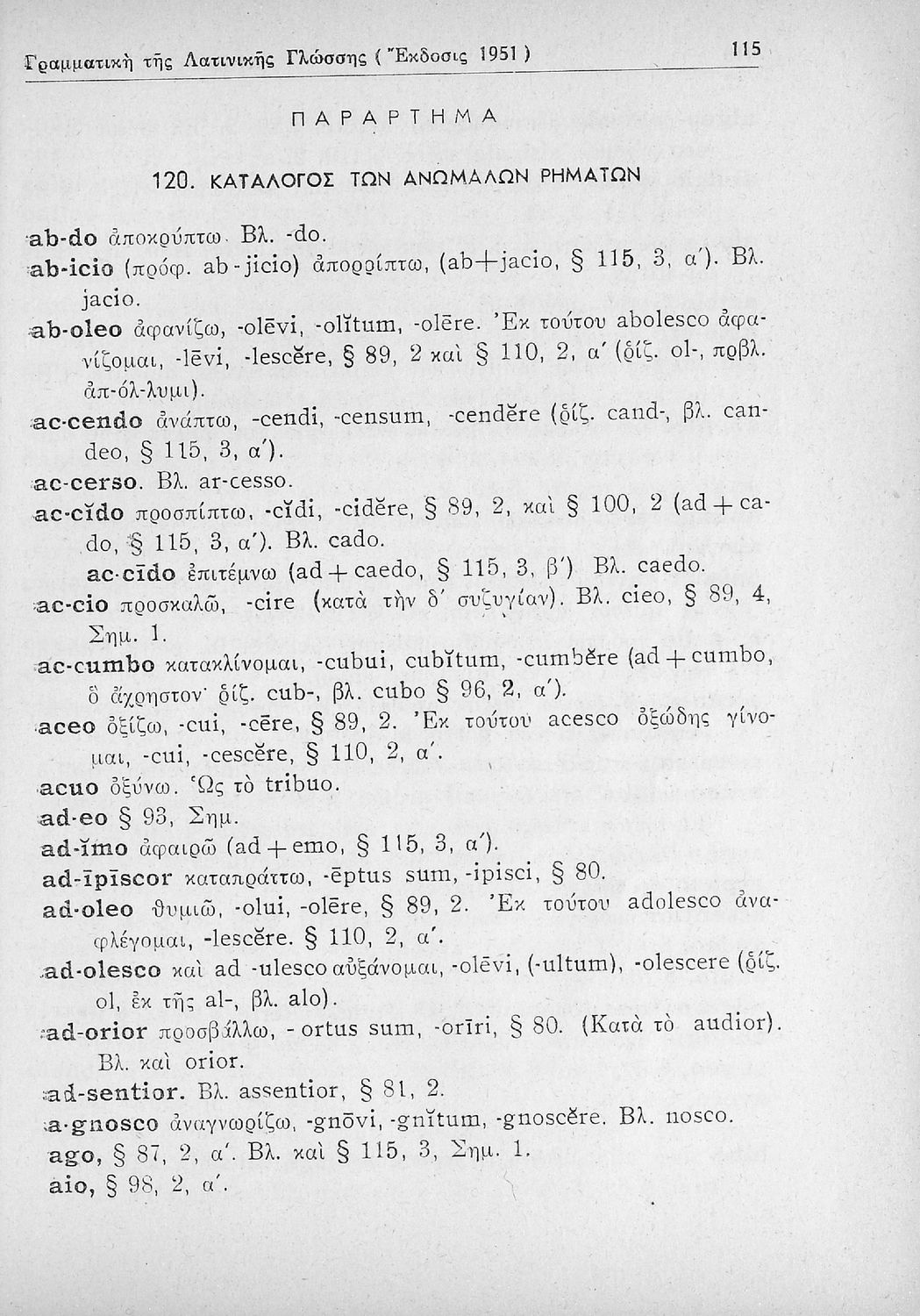 Σχολικό εγχειρίδιο Αρχαίων Ελληνικών Γυμνασίου που περιέχει τους κανόνες γραμματικής και είναι χωρισμένο σε φθογγολογικό, τυπολογικό και ετυμολογικό μέρος. Περιέχει και κατάλογο ανωμάλων ρημάτων.