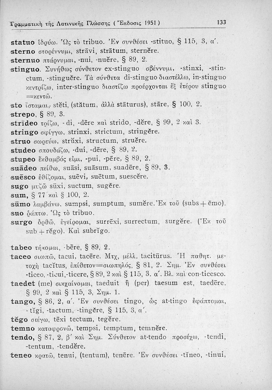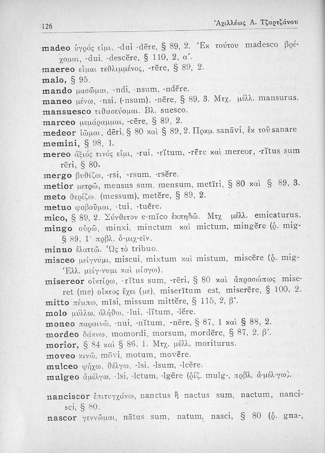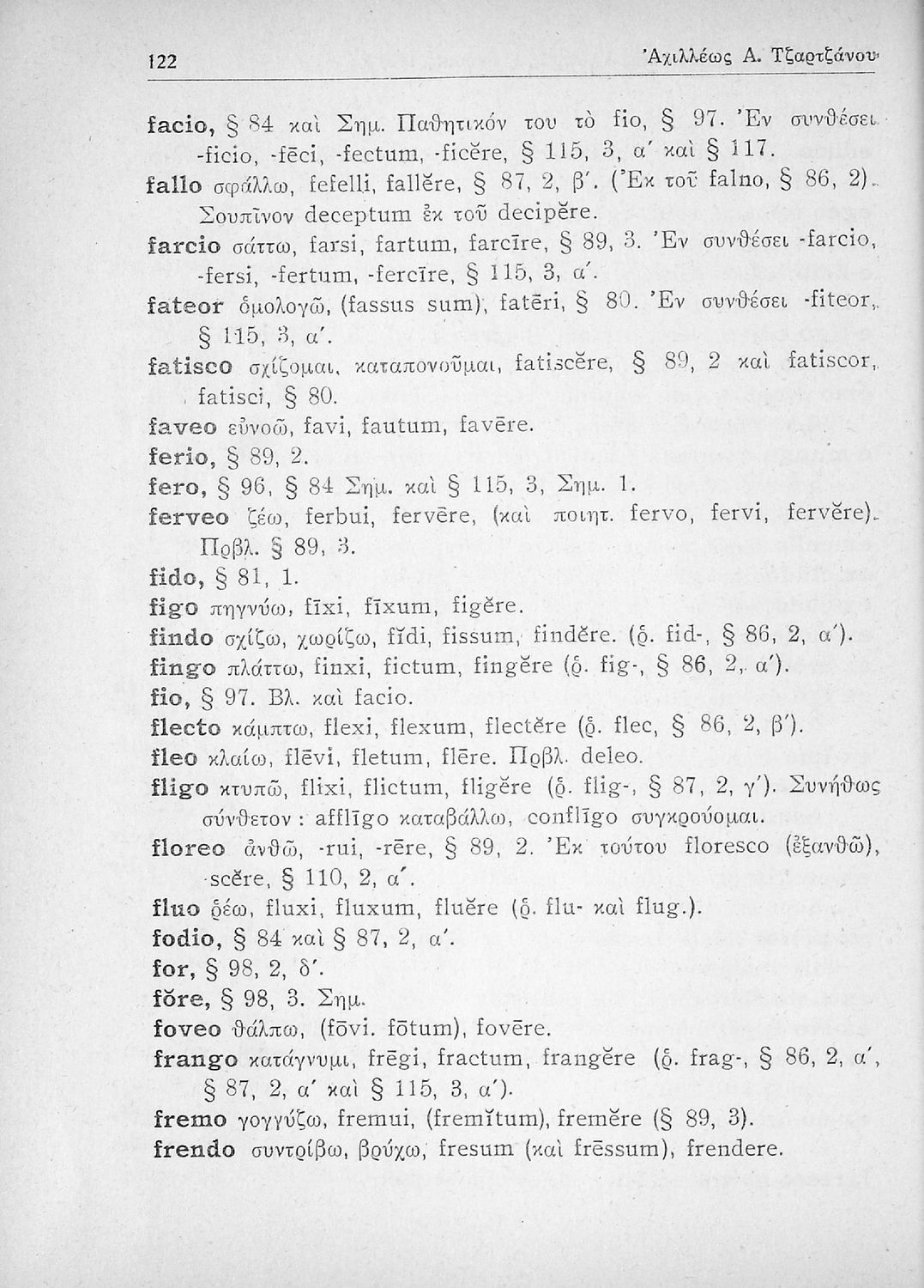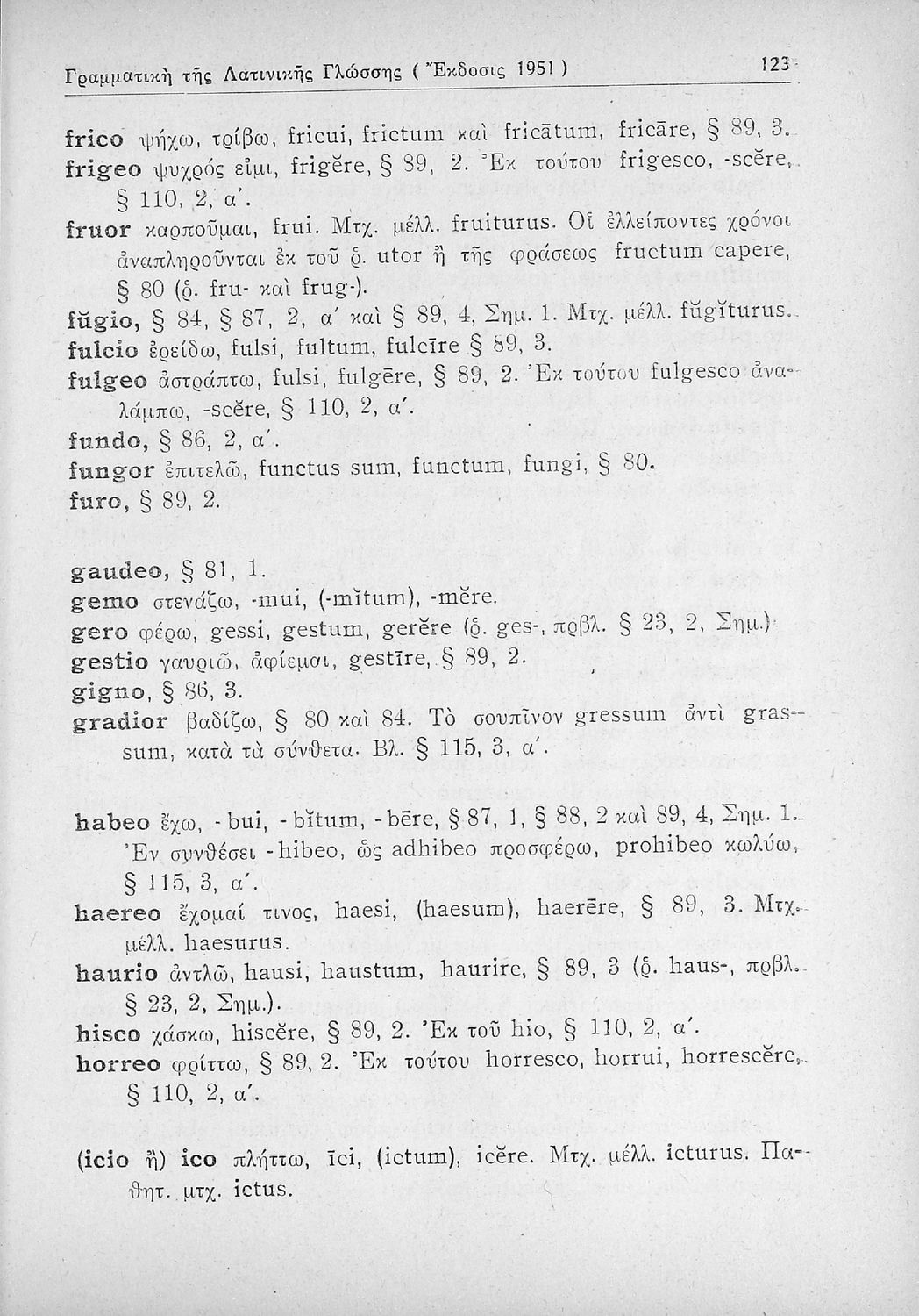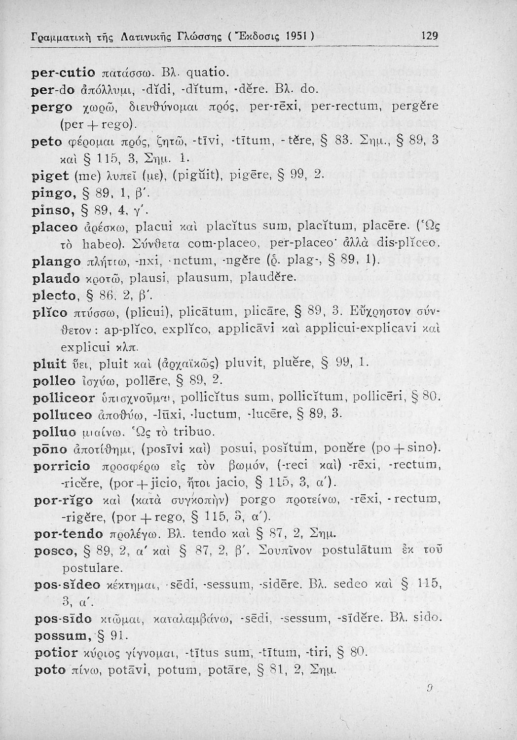 Σχολικό εγχειρίδιο Λατινικών Γυμνασίου που περιλαμβάνει γραμματική και συντακτικό και είναι χωρισμένο σε φθογγολογικό, τυπολογικό και ετυμολογικό μέρος.