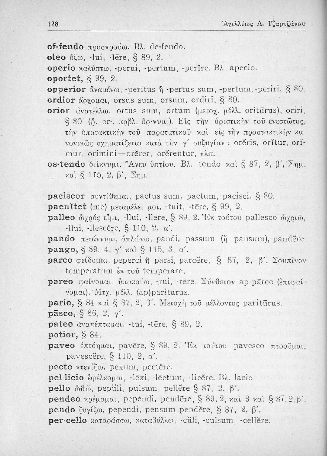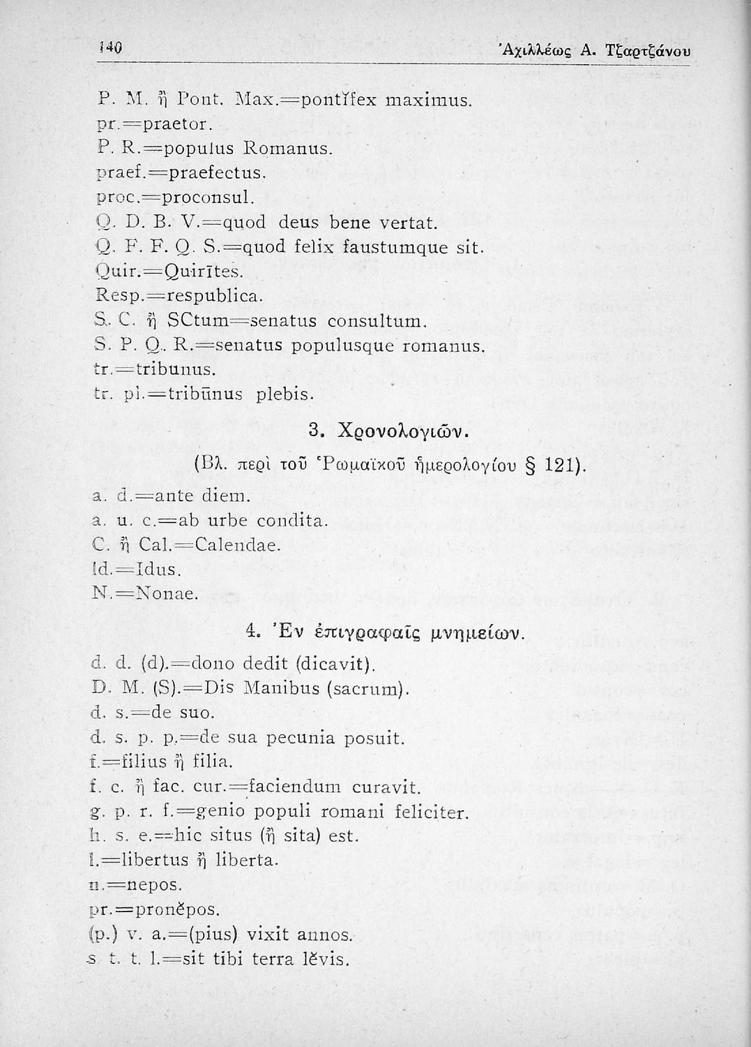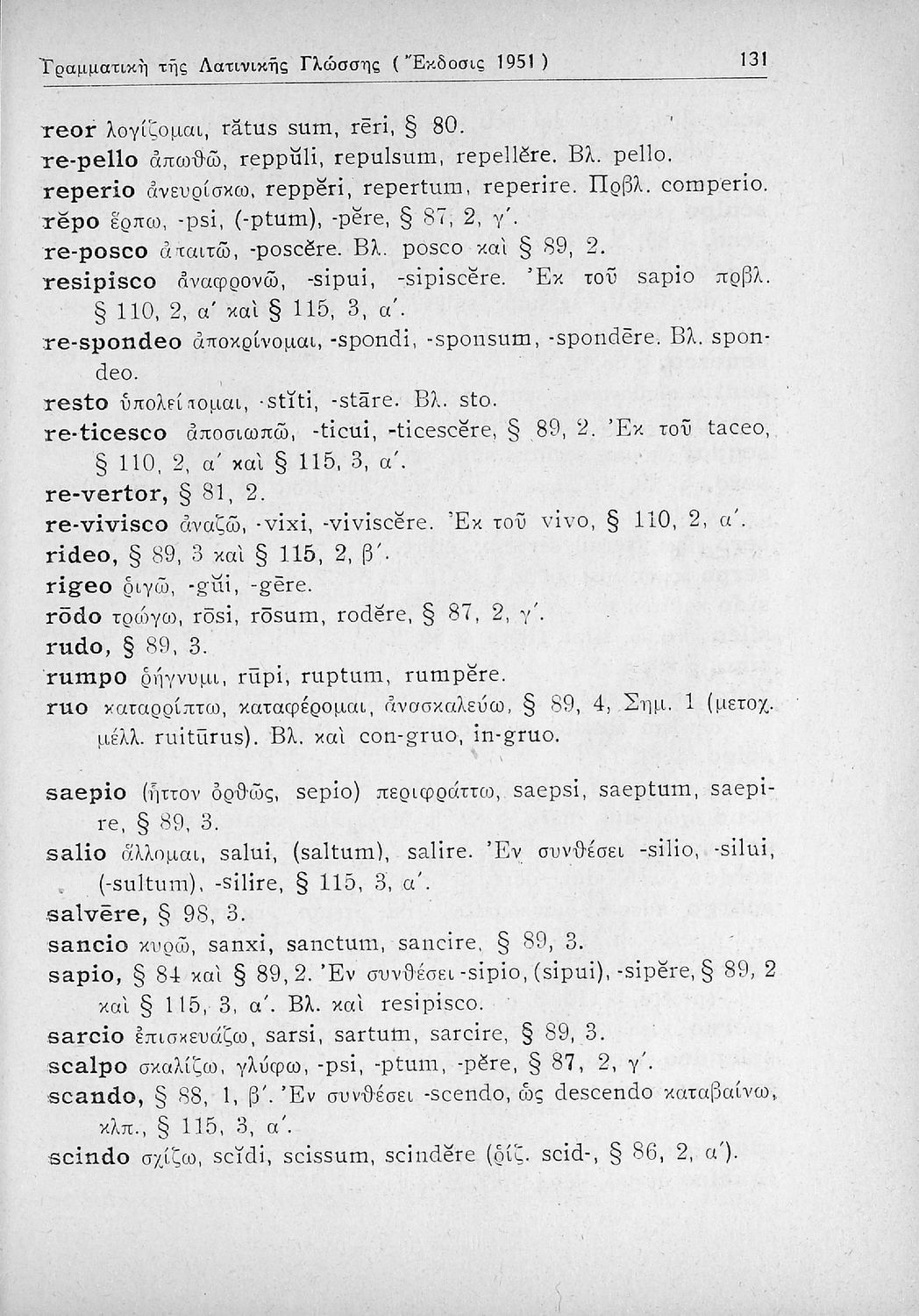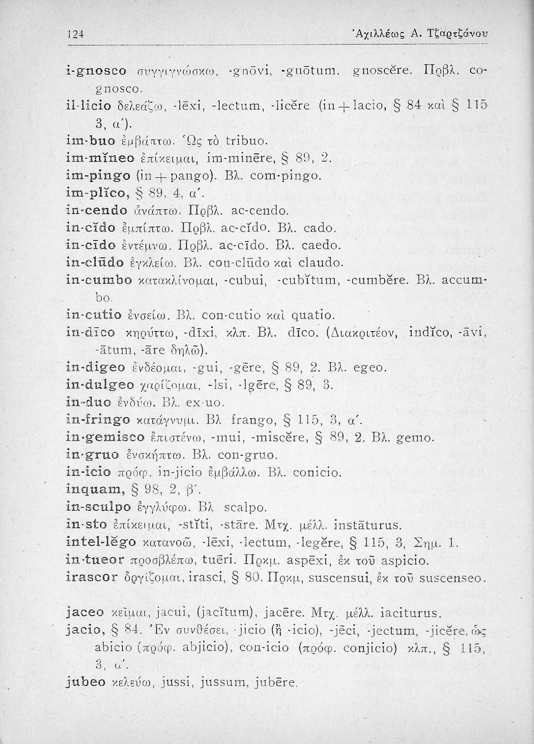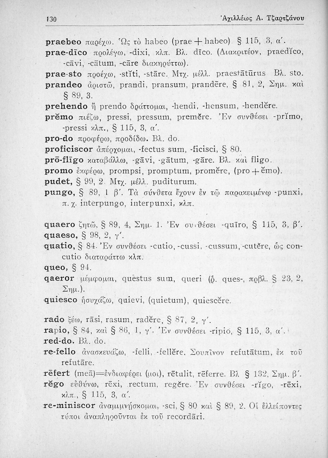 Σχολικό εγχειρίδιο Λατινικών Γυμνασίου που περιλαμβάνει γραμματική και συντακτικό και είναι χωρισμένο σε φθογγολογικό, τυπολογικό και ετυμολογικό μέρος.