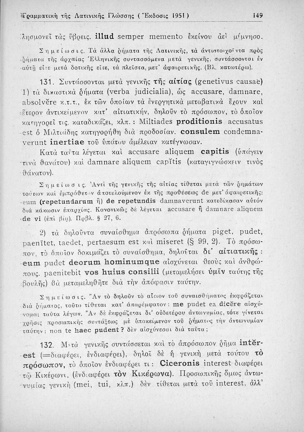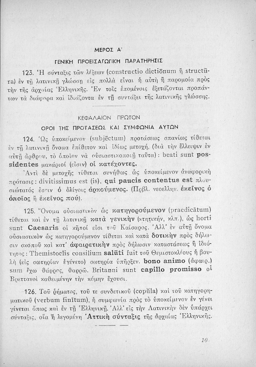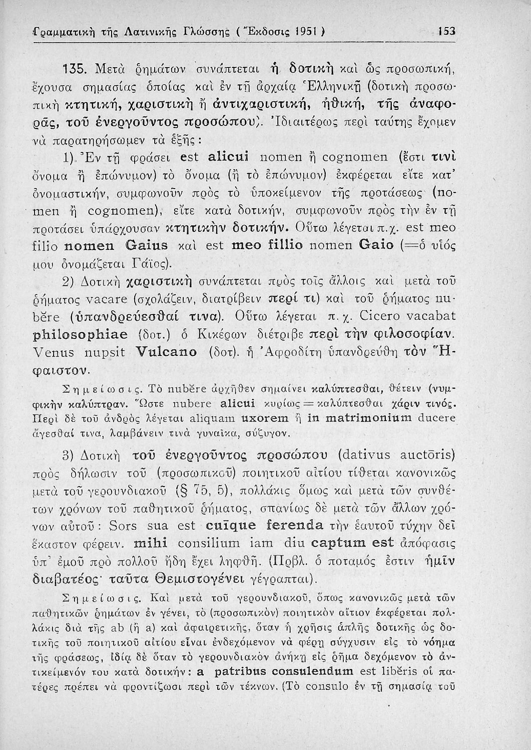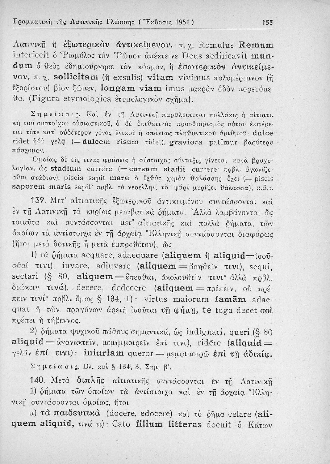 Σχολικό εγχειρίδιο Λατινικών Γυμνασίου που περιλαμβάνει γραμματική και συντακτικό και είναι χωρισμένο σε φθογγολογικό, τυπολογικό και ετυμολογικό μέρος.