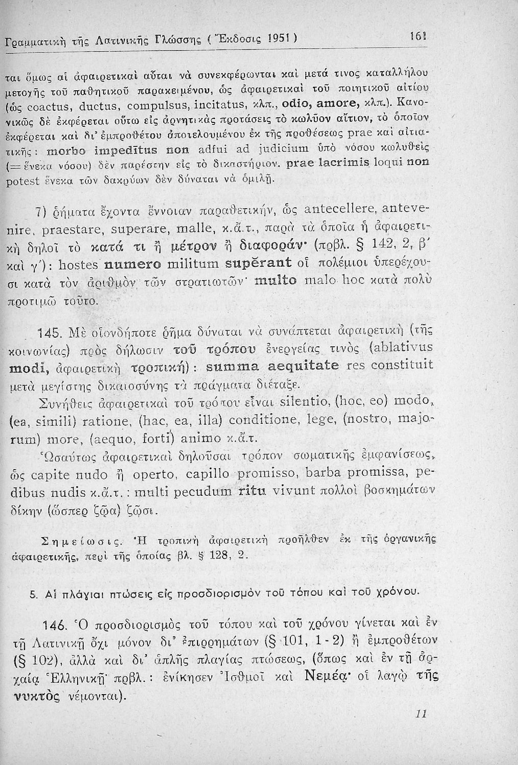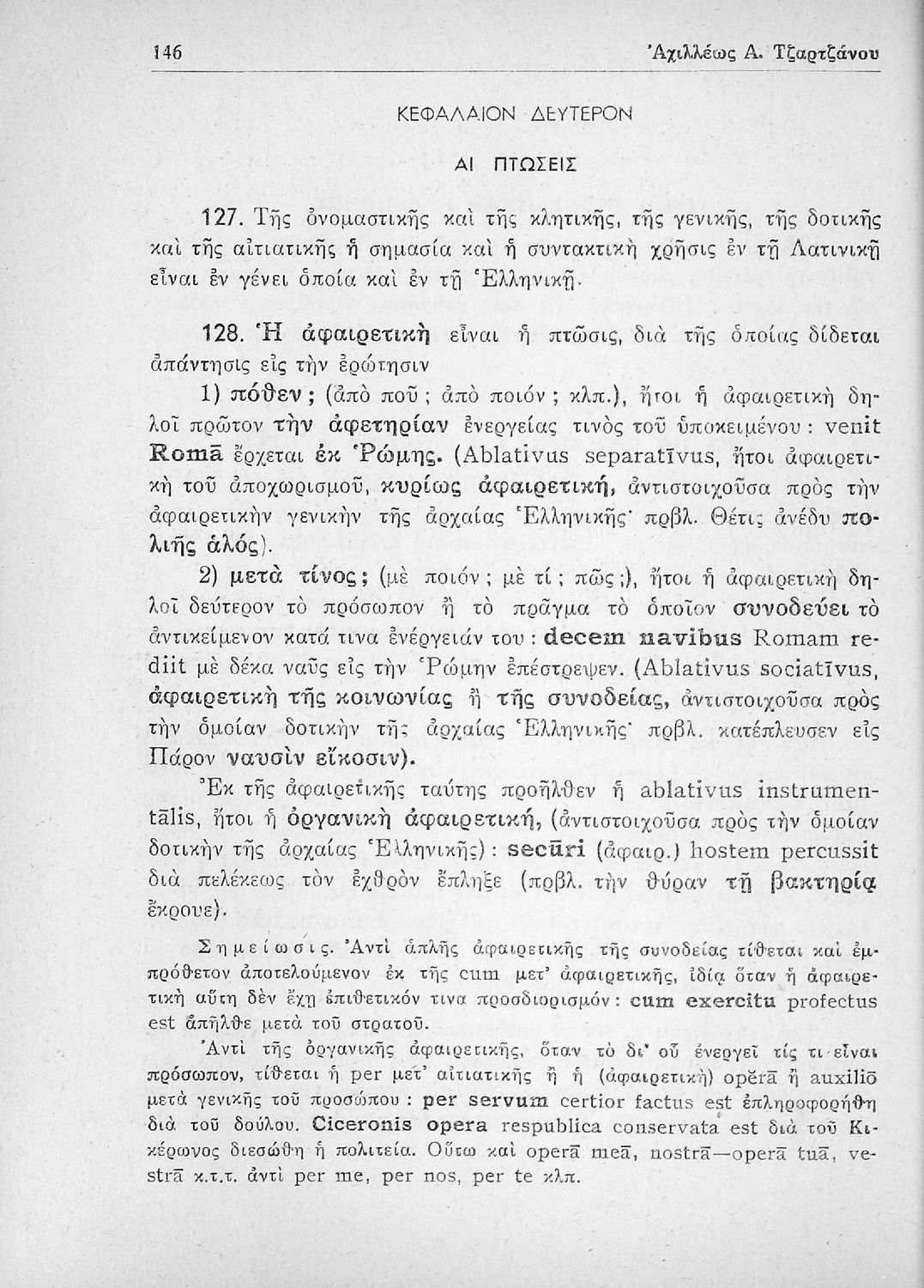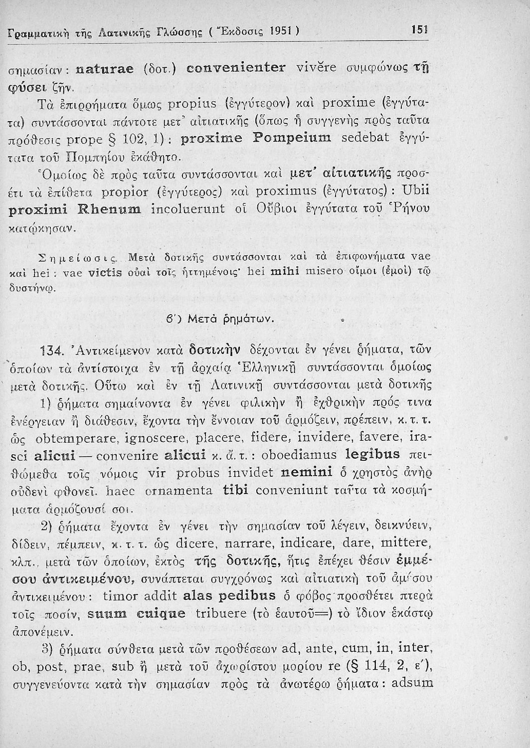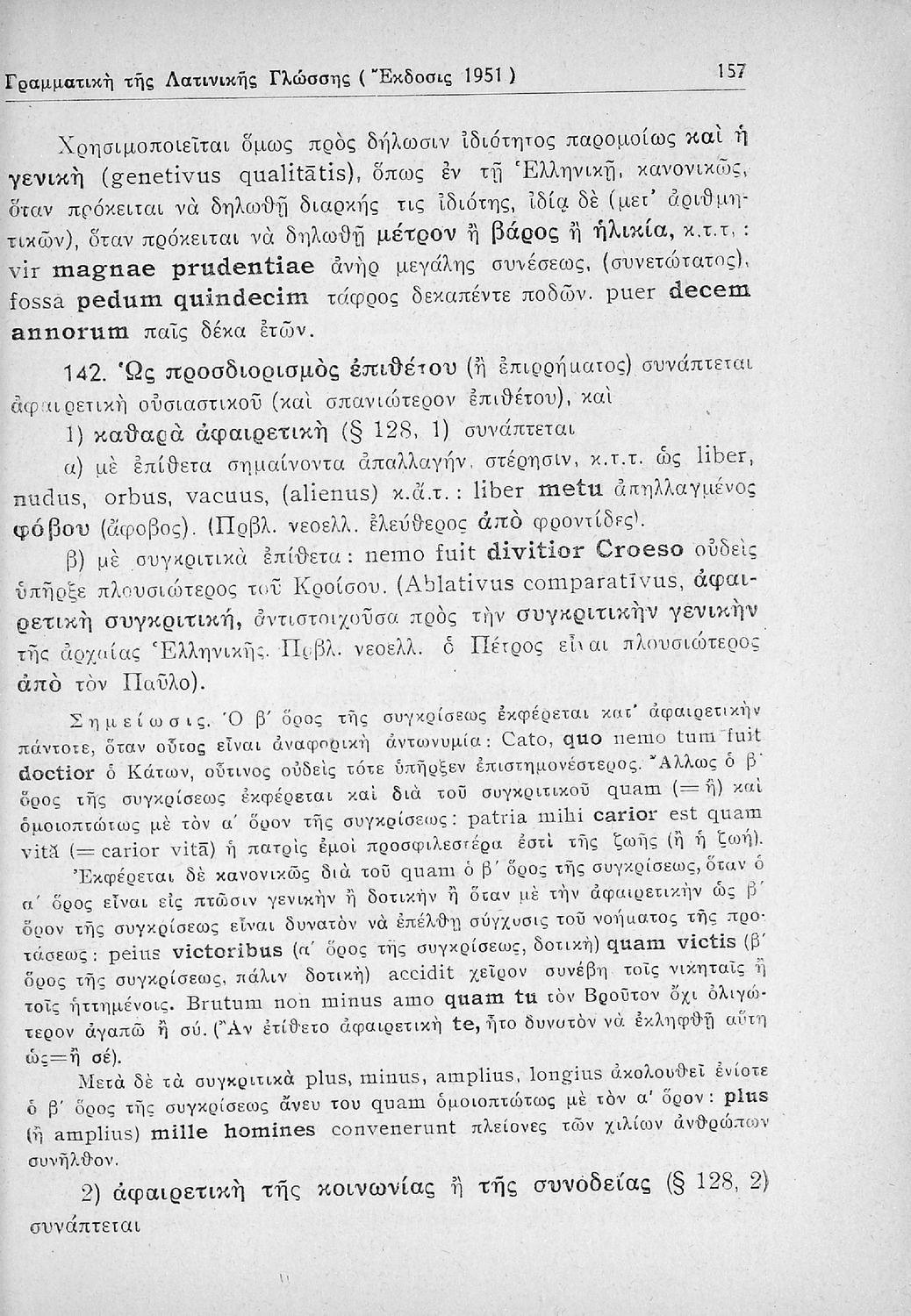 Σχολικό εγχειρίδιο Λατινικών Γυμνασίου που περιλαμβάνει γραμματική και συντακτικό και είναι χωρισμένο σε φθογγολογικό, τυπολογικό και ετυμολογικό μέρος.