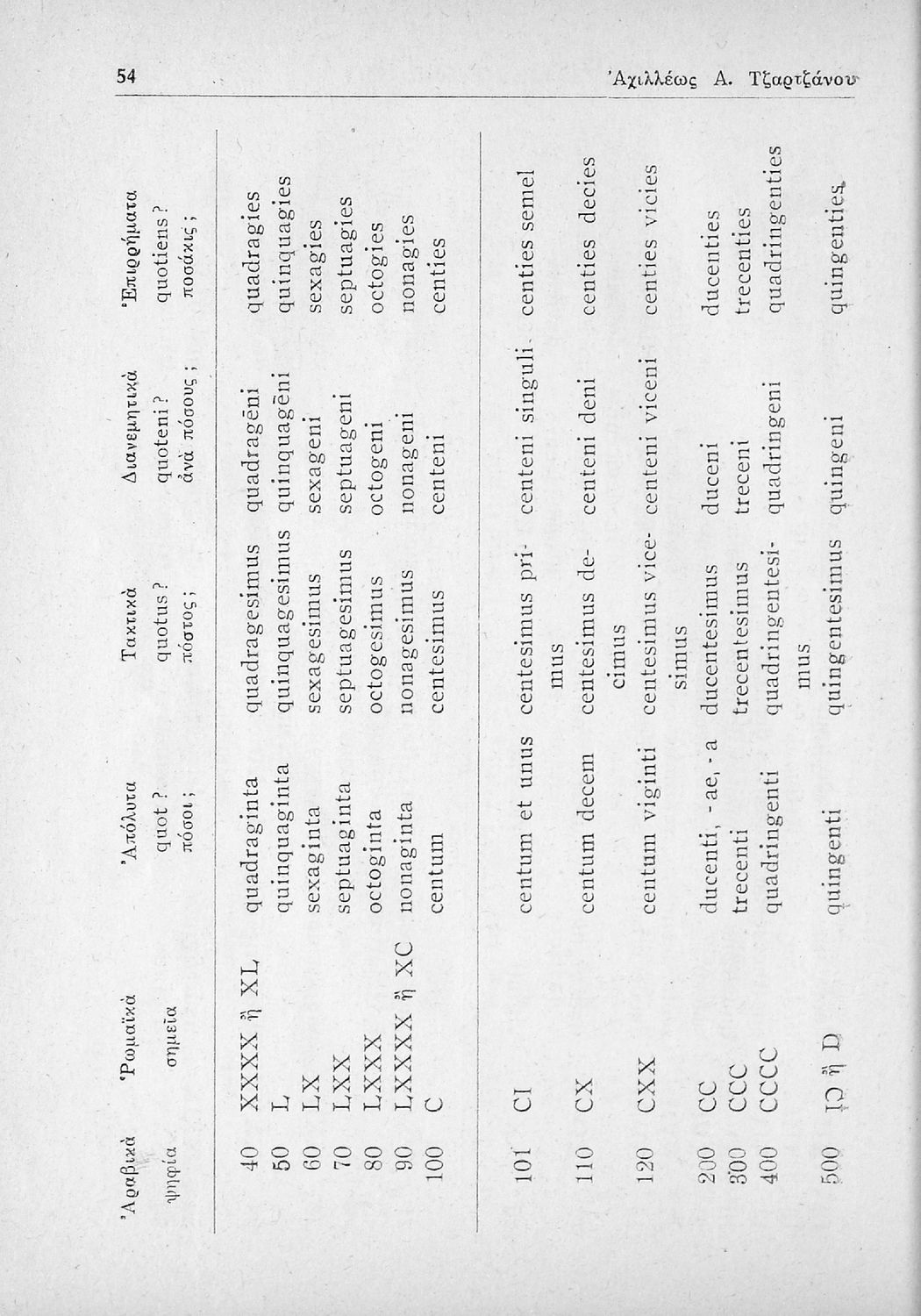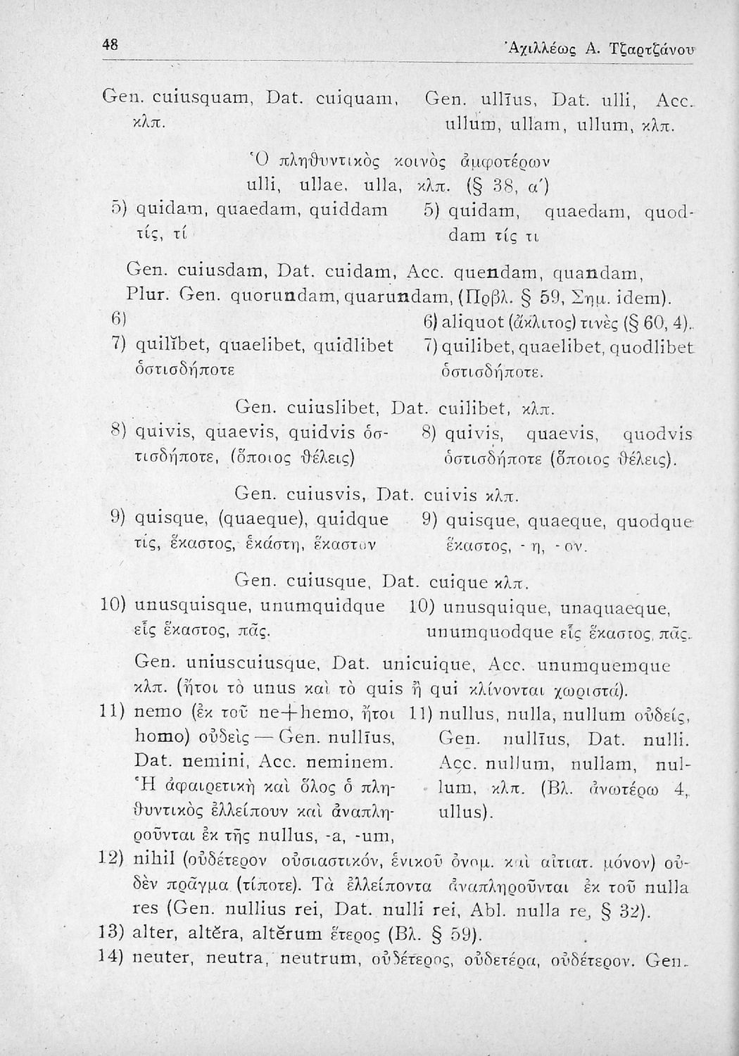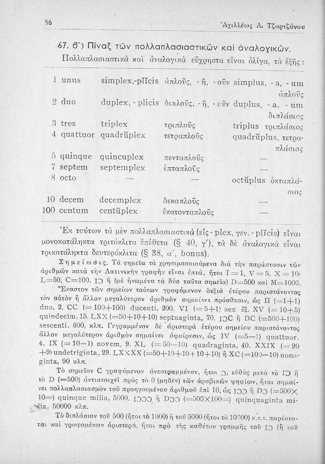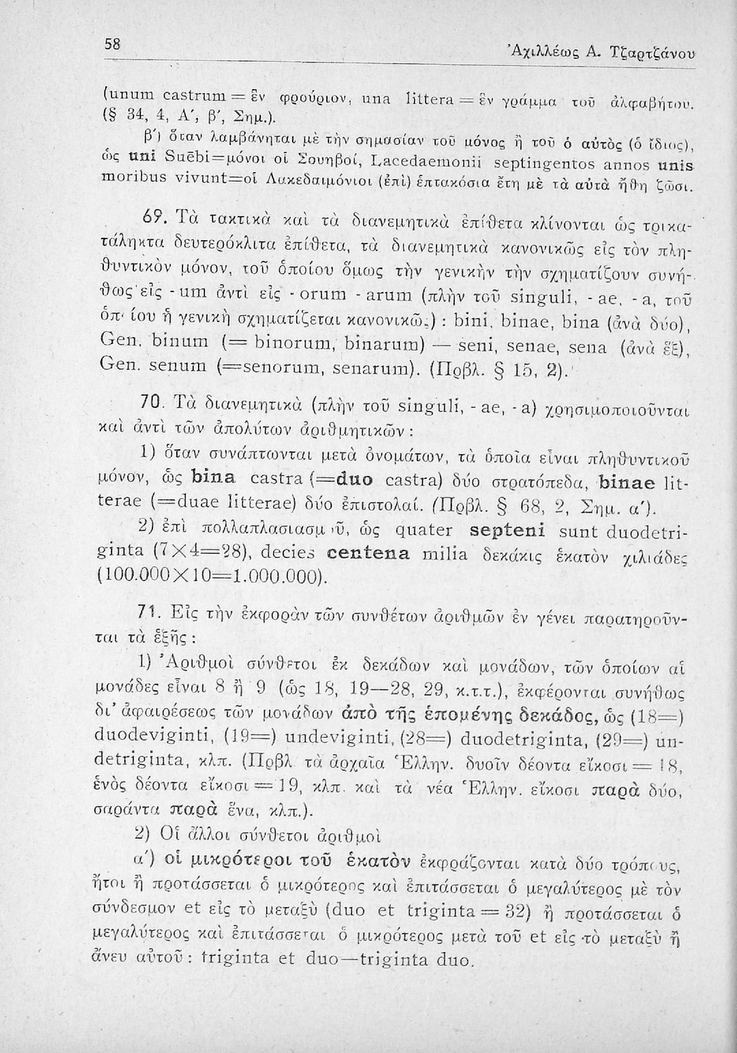 Σχολικό εγχειρίδιο Λατινικών Γυμνασίου που περιλαμβάνει γραμματική και συντακτικό και είναι χωρισμένο σε φθογγολογικό, τυπολογικό και ετυμολογικό μέρος.
