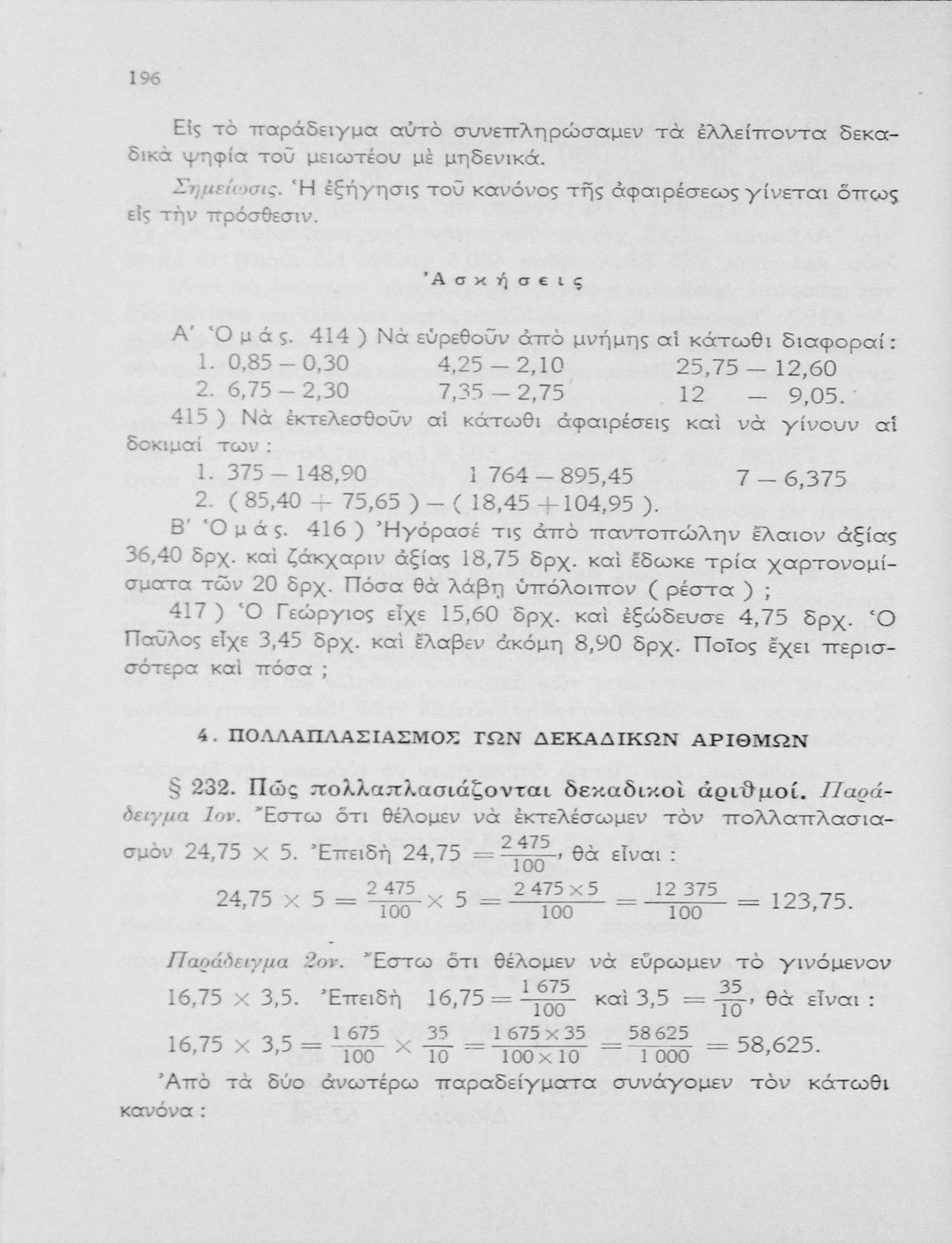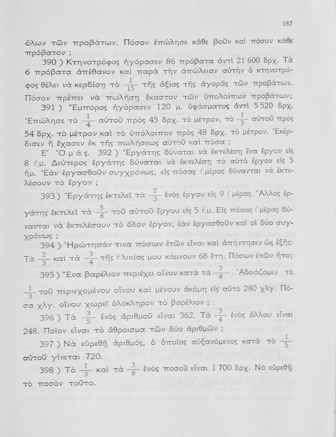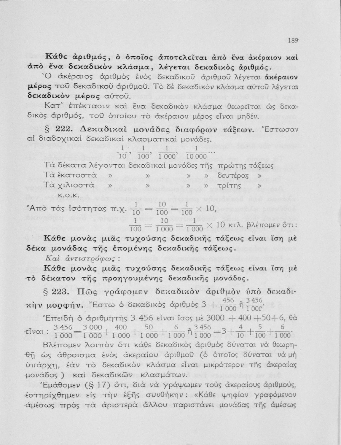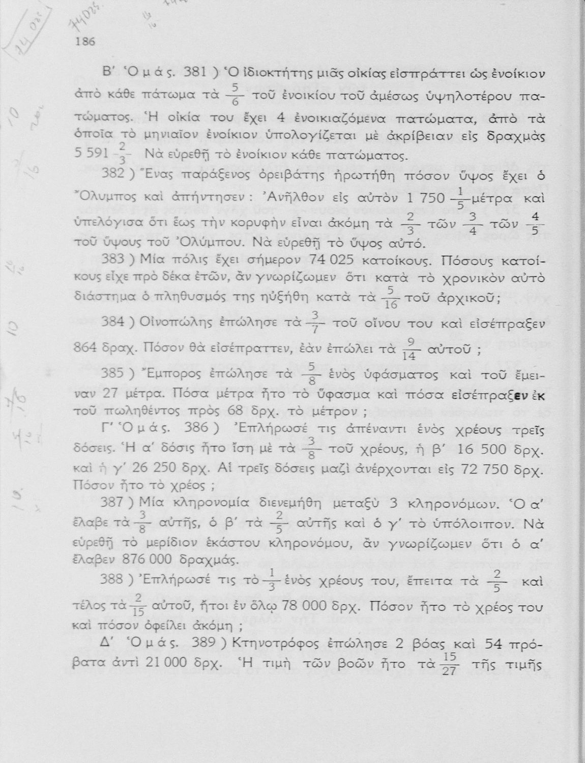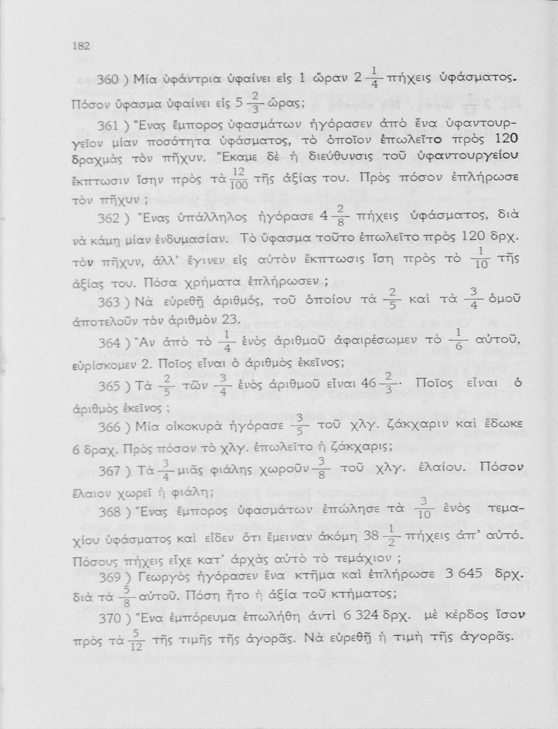 Σχολικό εγχειρίδιο Αριθμητικής Γυμνασίου που εστιάζει στις αριθμητικές πράξεις, τα κλάσματα και τις μεθόδους και είναι χωρισμένο σε θεωρία και ασκήσεις με έντονο επιχειρηματικό προσανατολισμό. Περιλαμβάνει στοιχεία Θεωρητικής Αριθμητικής.