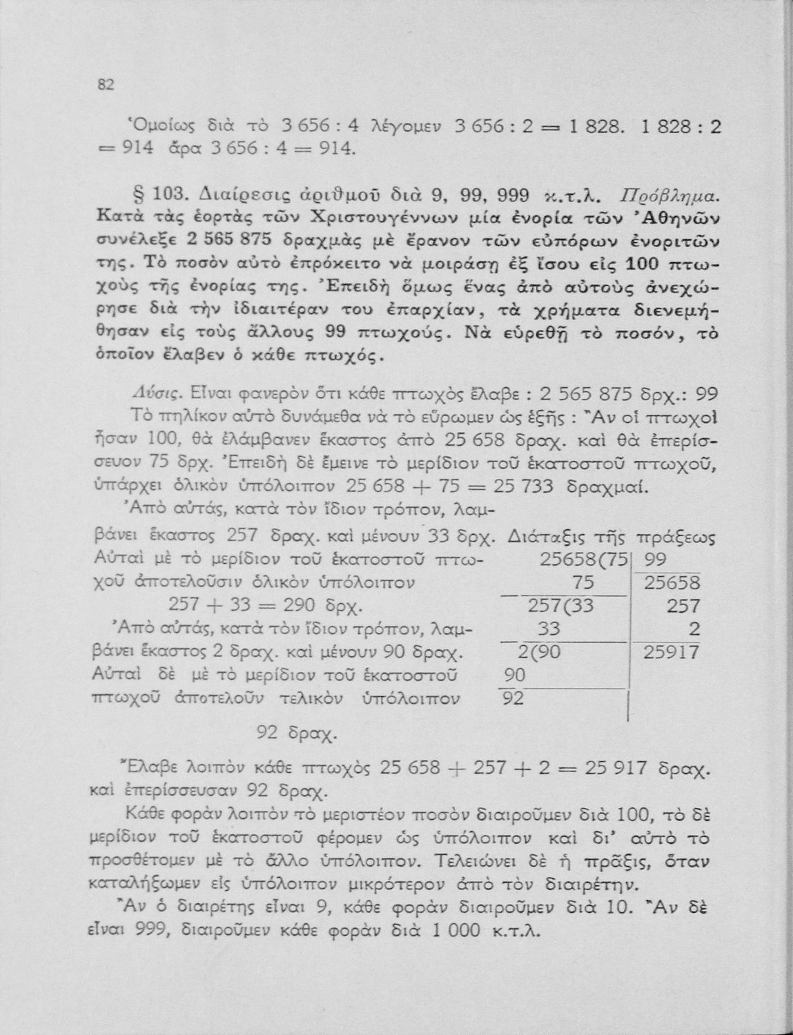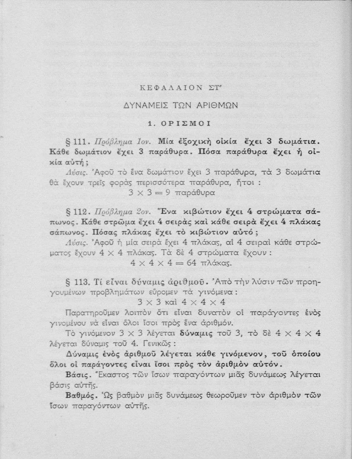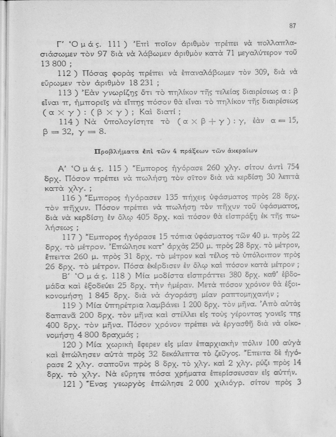 Σχολικό εγχειρίδιο Αριθμητικής Γυμνασίου που εστιάζει στις αριθμητικές πράξεις, τα κλάσματα και τις μεθόδους και είναι χωρισμένο σε θεωρία και ασκήσεις με έντονο επιχειρηματικό προσανατολισμό. Περιλαμβάνει στοιχεία Θεωρητικής Αριθμητικής.