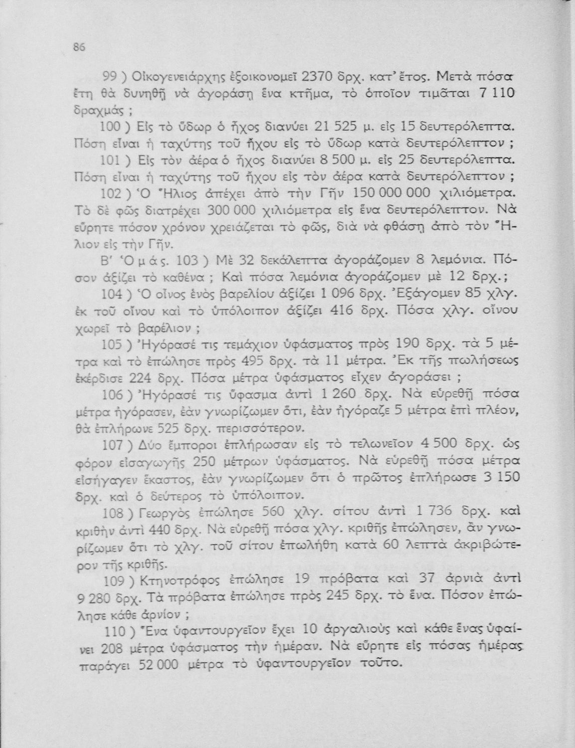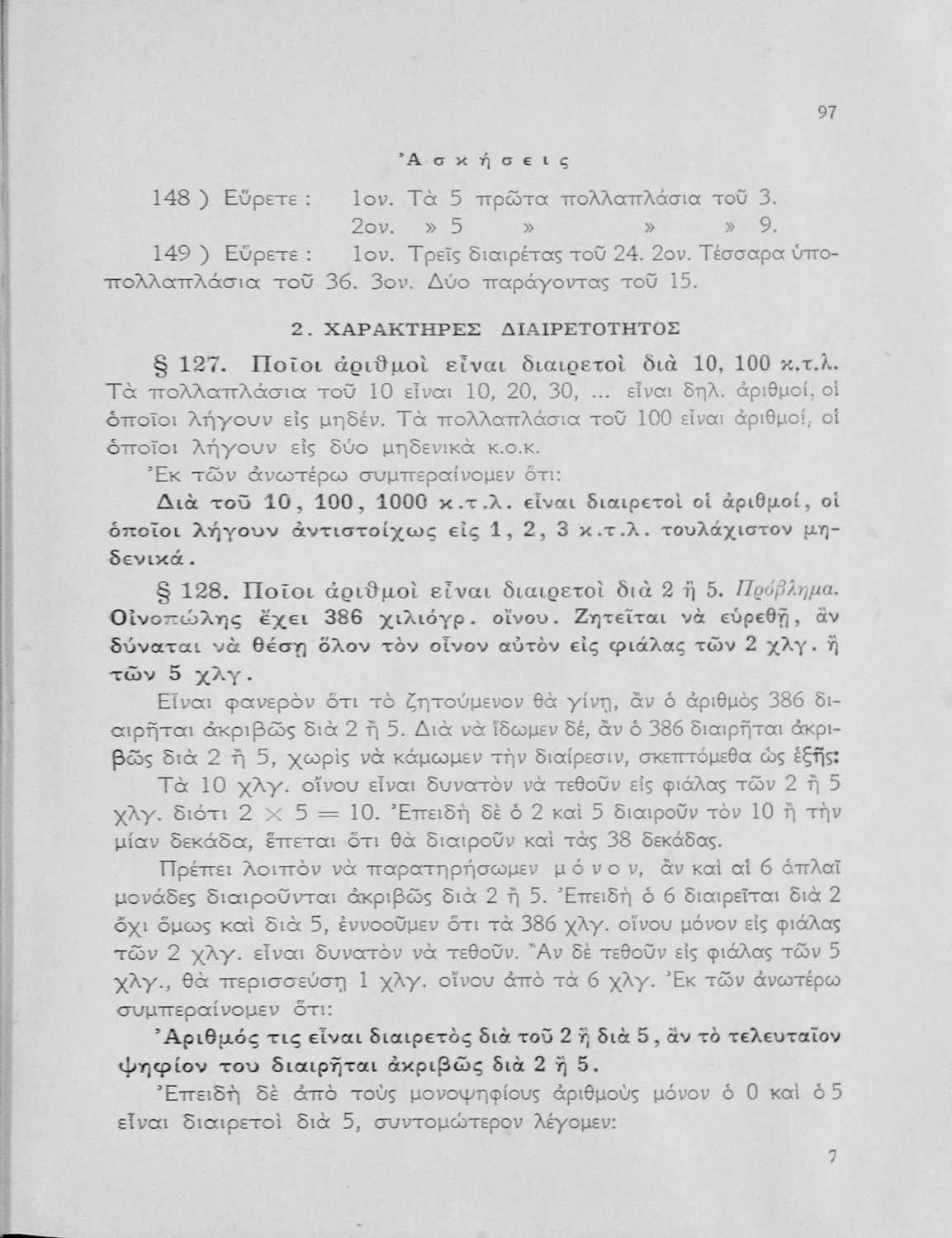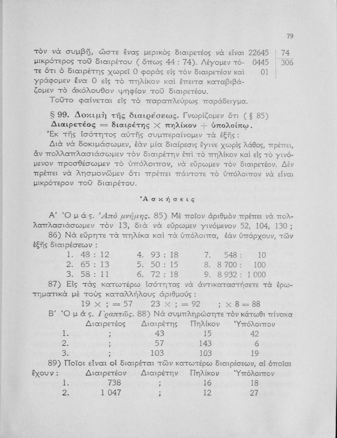 Σχολικό εγχειρίδιο Αριθμητικής Γυμνασίου που εστιάζει στις αριθμητικές πράξεις, τα κλάσματα και τις μεθόδους και είναι χωρισμένο σε θεωρία και ασκήσεις με έντονο επιχειρηματικό προσανατολισμό. Περιλαμβάνει στοιχεία Θεωρητικής Αριθμητικής.