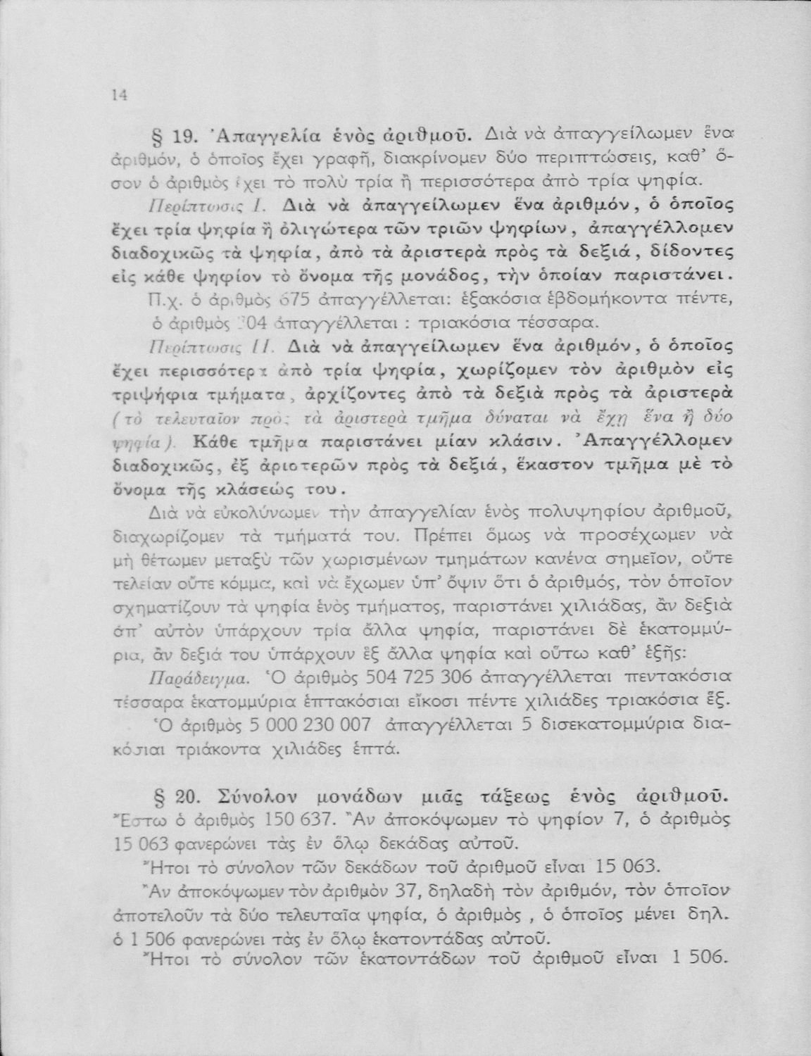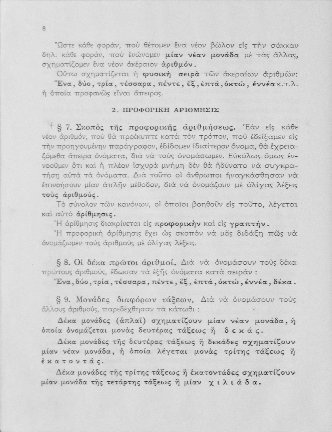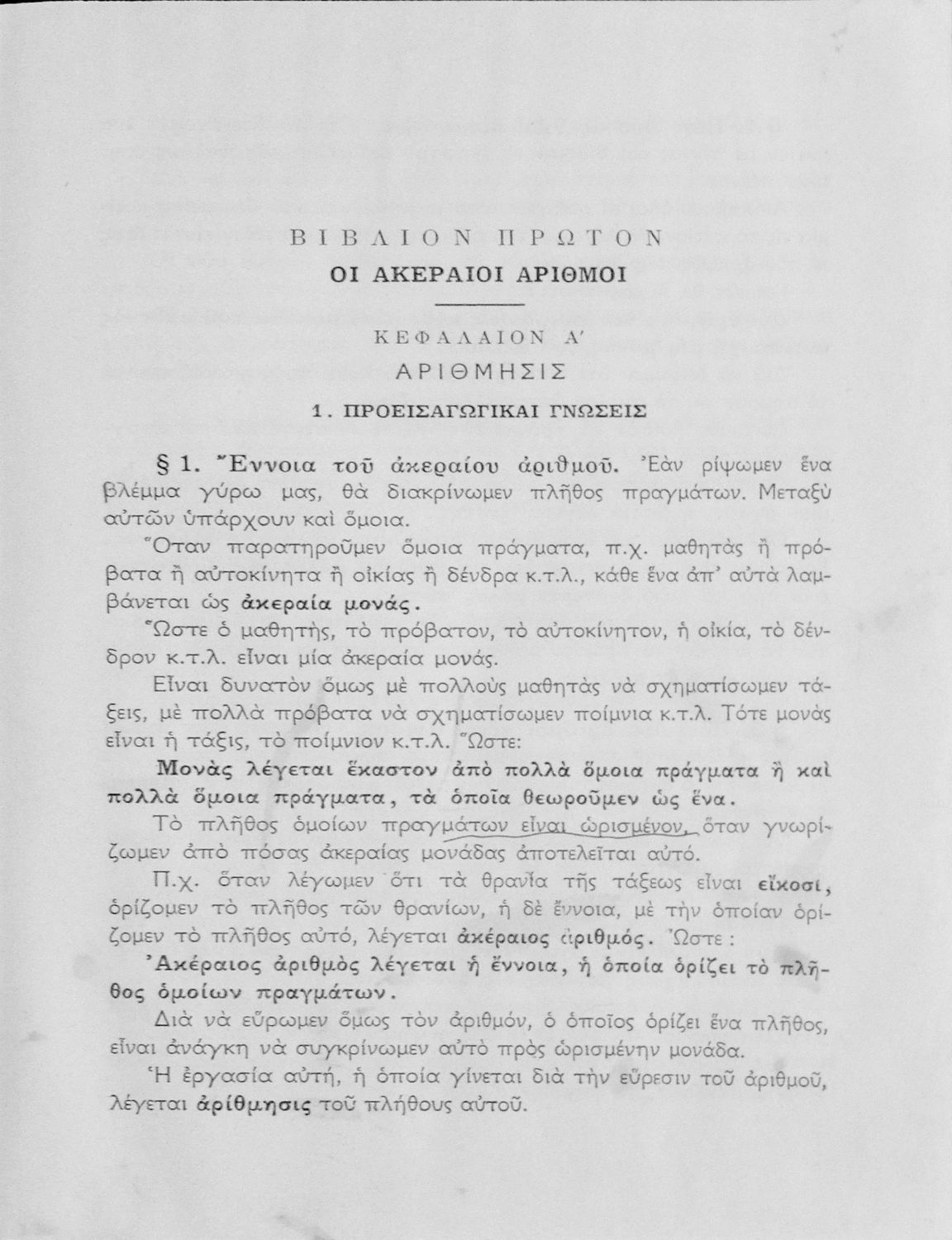 Σχολικό εγχειρίδιο Αριθμητικής Γυμνασίου που εστιάζει στις αριθμητικές πράξεις, τα κλάσματα και τις μεθόδους και είναι χωρισμένο σε θεωρία και ασκήσεις με έντονο επιχειρηματικό προσανατολισμό. Περιλαμβάνει στοιχεία Θεωρητικής Αριθμητικής.