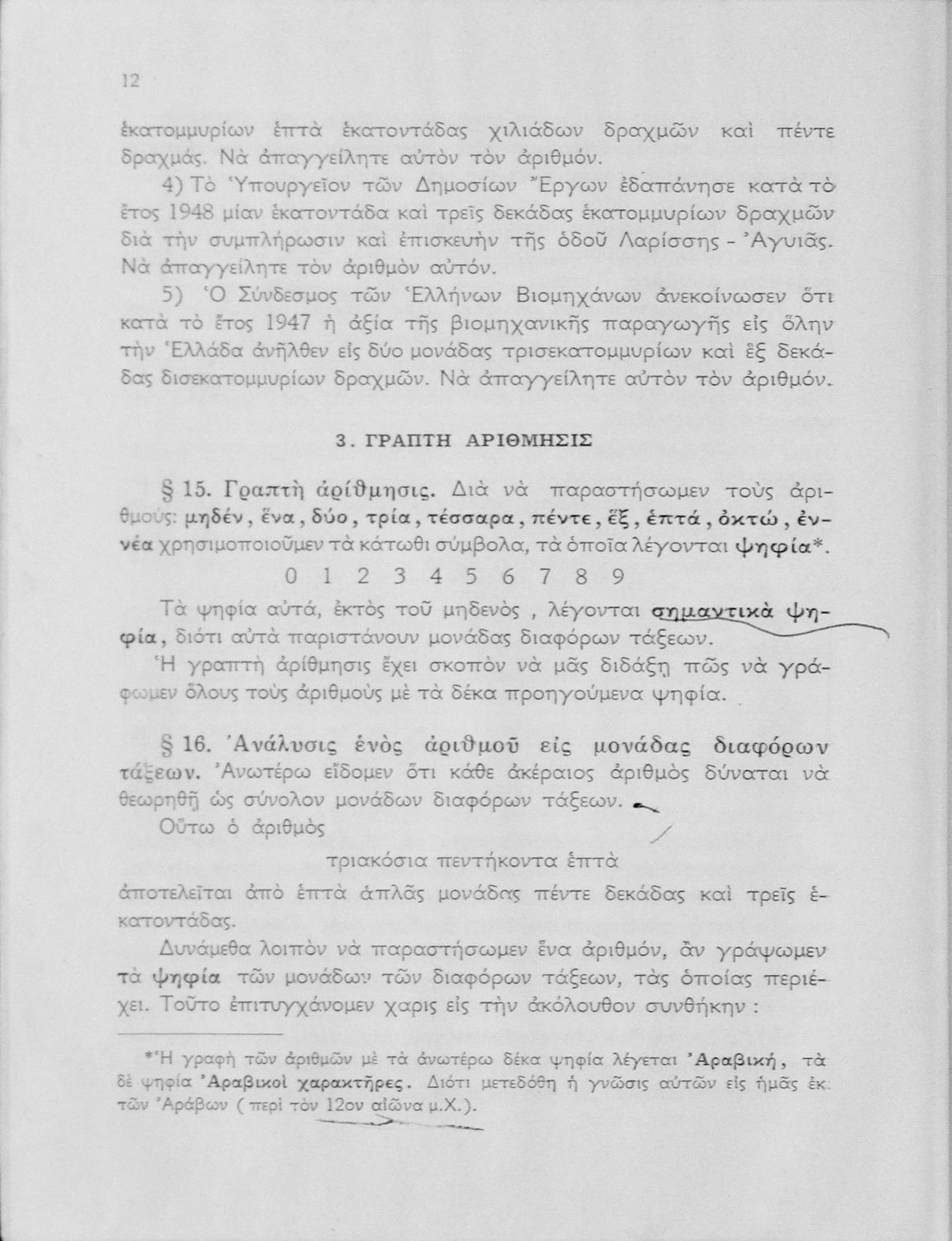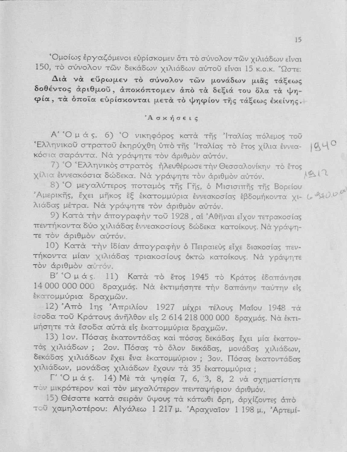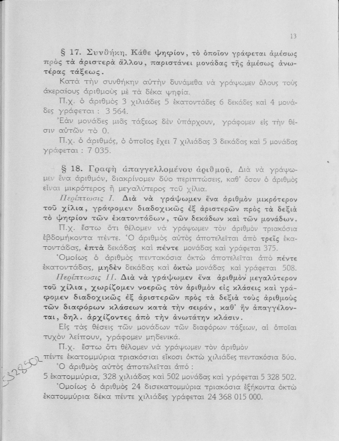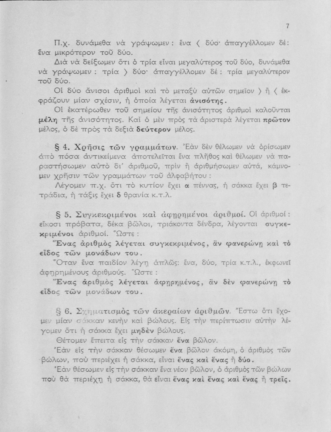 Σχολικό εγχειρίδιο Αριθμητικής Γυμνασίου που εστιάζει στις αριθμητικές πράξεις, τα κλάσματα και τις μεθόδους και είναι χωρισμένο σε θεωρία και ασκήσεις με έντονο επιχειρηματικό προσανατολισμό. Περιλαμβάνει στοιχεία Θεωρητικής Αριθμητικής.