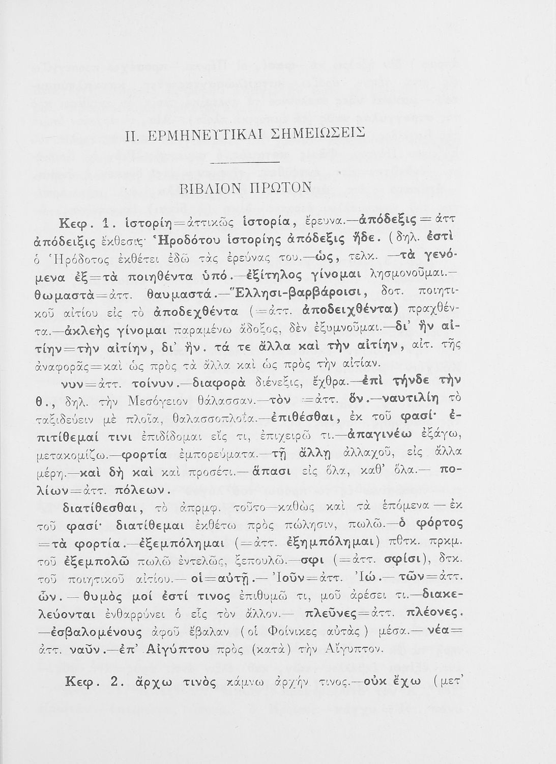 Σχολικό εγχειρίδιο Αρχαίων Ελληνικών Γ΄ Γυμνασίου που περιλαμβάνει εισαγωγή στη ζωή και το έργο του Ηρόδοτου, αποσπάσματα από την Ιστορία του, ερμηνευτικές σημειώσεις και τοπογραφικούς πίνακες με εικόνες και χάρτες. Φέρει το σύμβολο της δικτατορίας.
