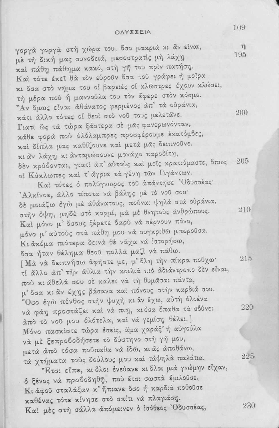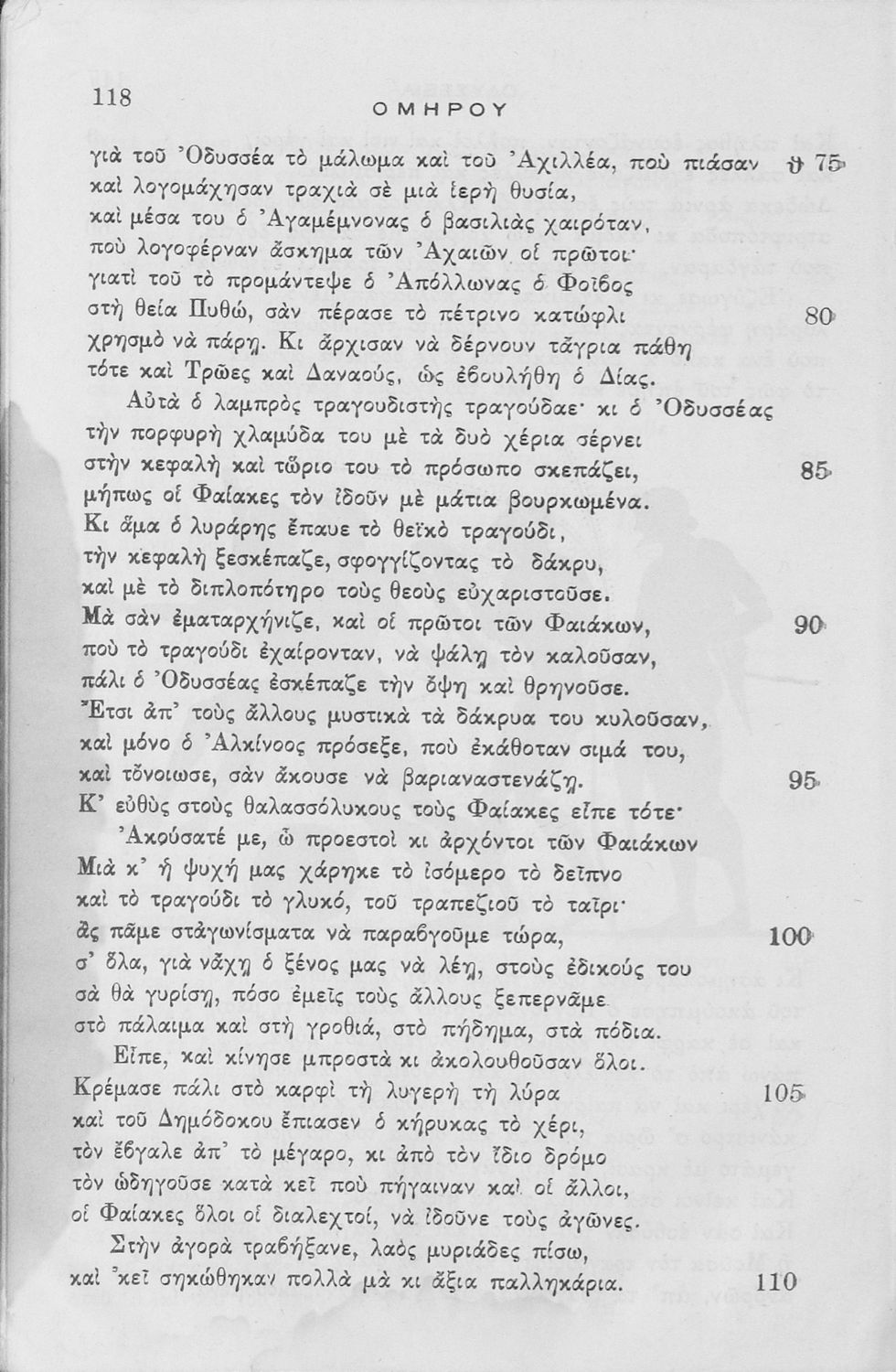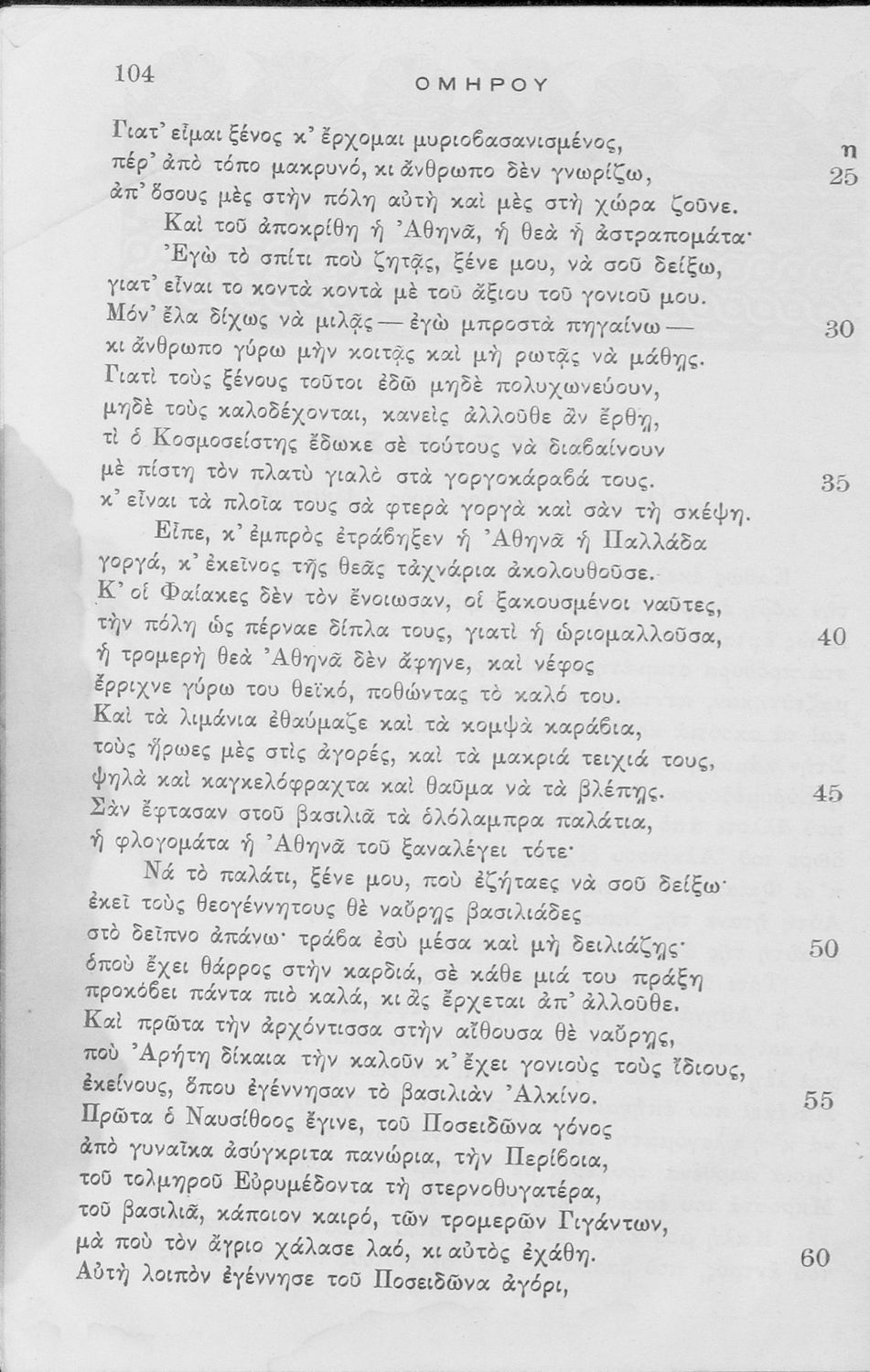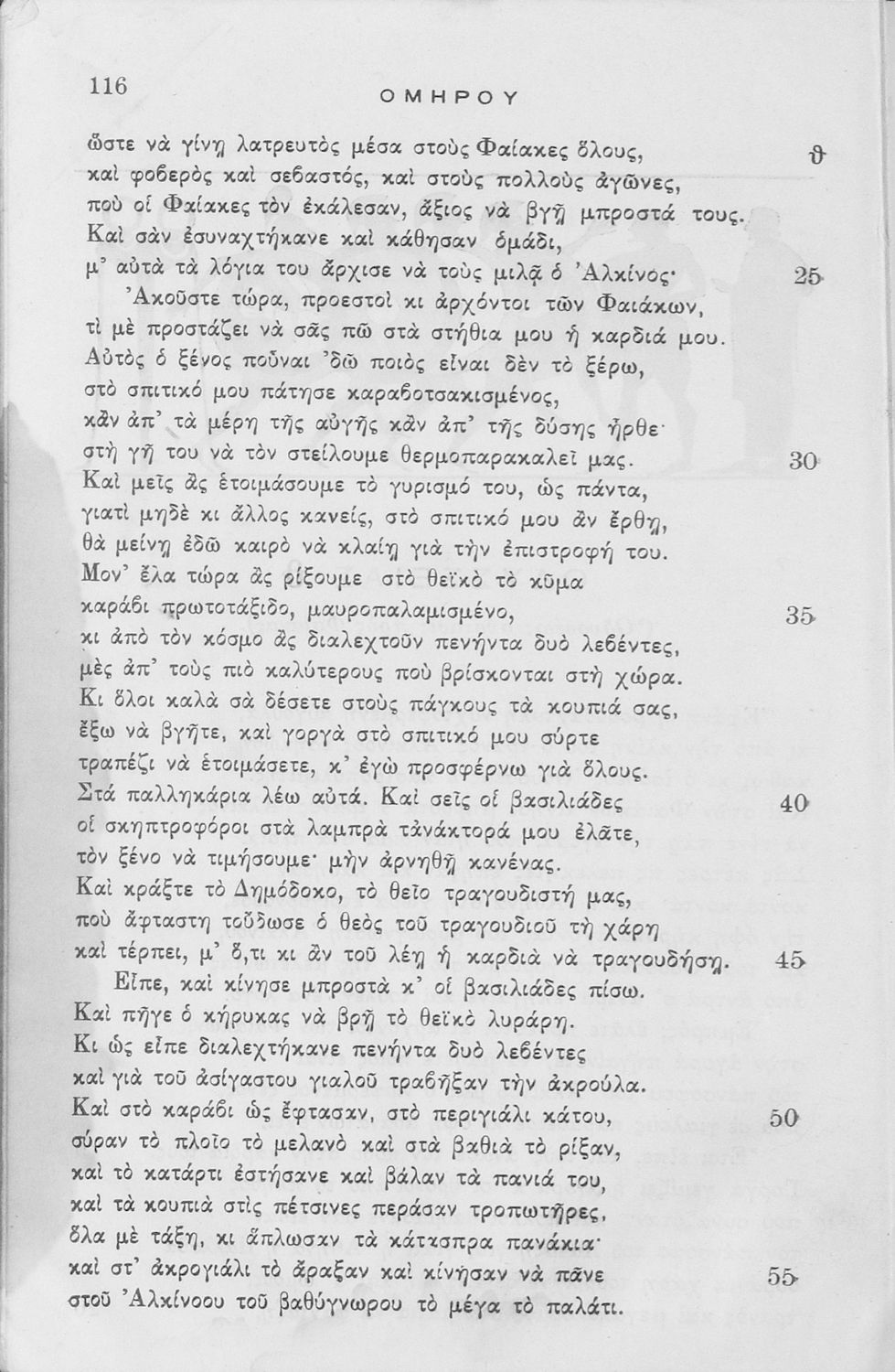 Σχολικό εγχειρίδιο για τις τρείς κατώτερες τάξεις Γυμνασίου και οι αντίστοιχες των λοιπών Σχολείων για το μάθημα των Αρχαίων Ελληνικών. Περιέχει τις ραψωδίες της Οδύσσειας και ερμηνευτικά, πραγματολογικά σχόλια, καθώς και γραμματικές παρατηρήσεις.